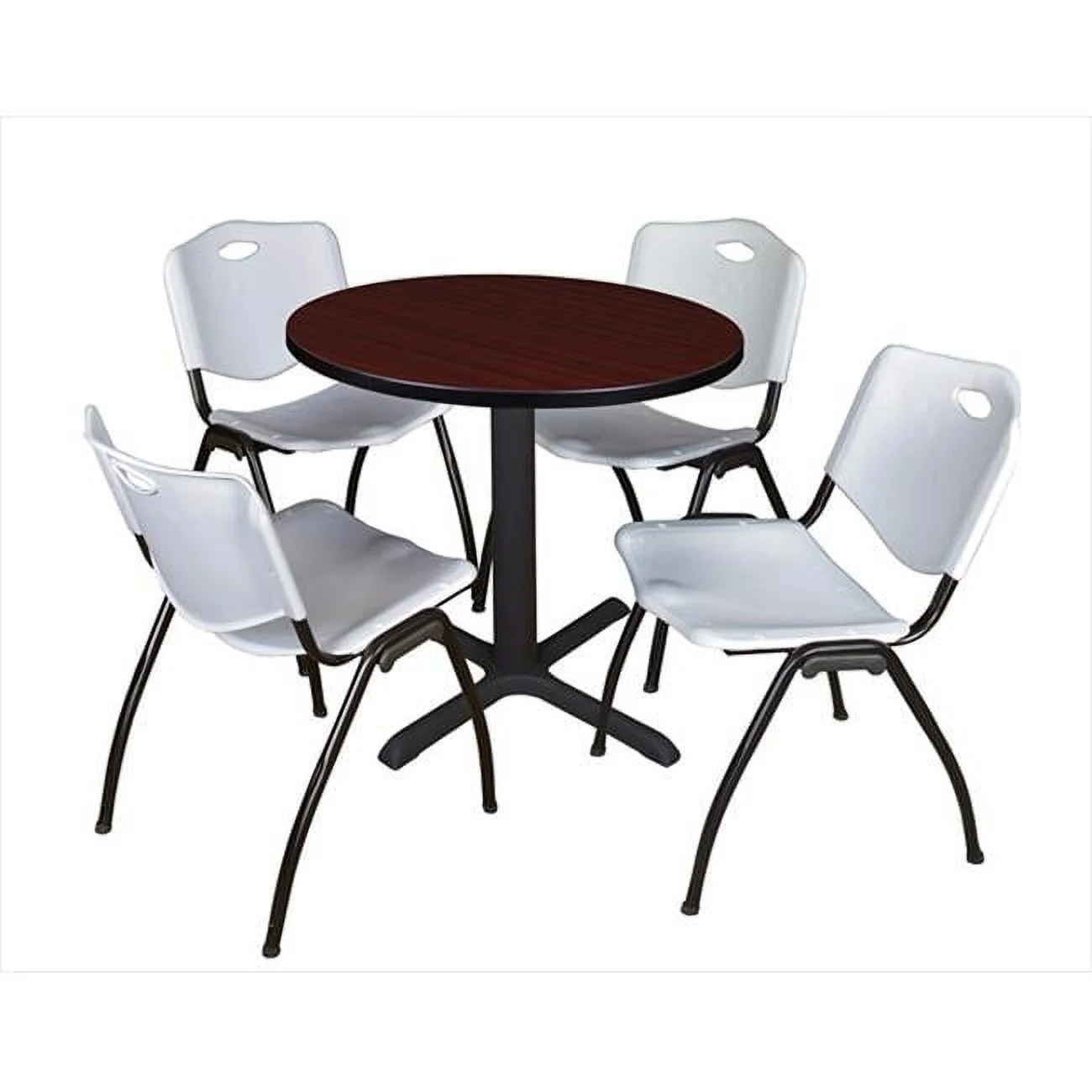 30 In. Round Laminate Table- Mahogany & Cain Base With 4 Grey M Stack Chairs - Curated Treasures Market