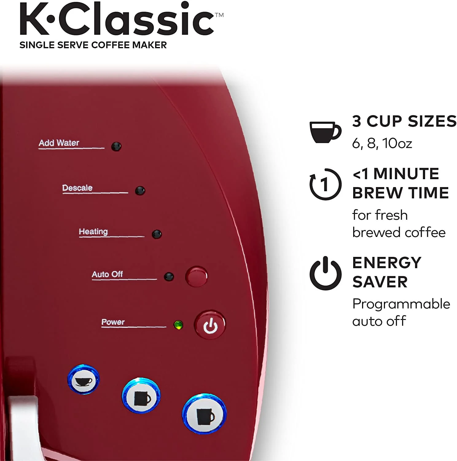 Keurig K-Classic Coffee Maker, Single Serve K-Cup Pod Coffee Brewer, 6 to 10 oz. Brew Sizes, Rhubarb