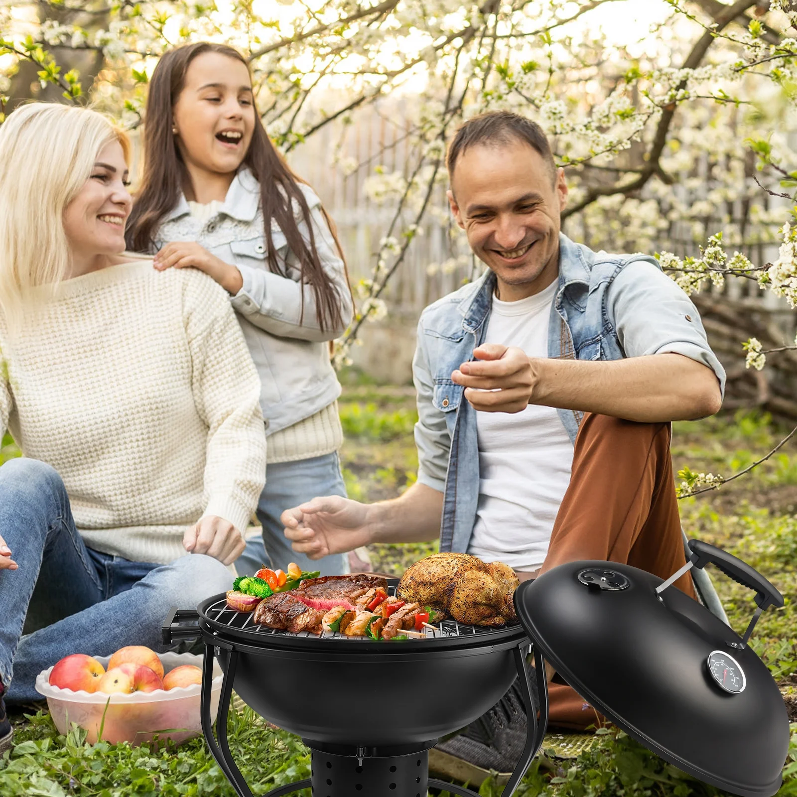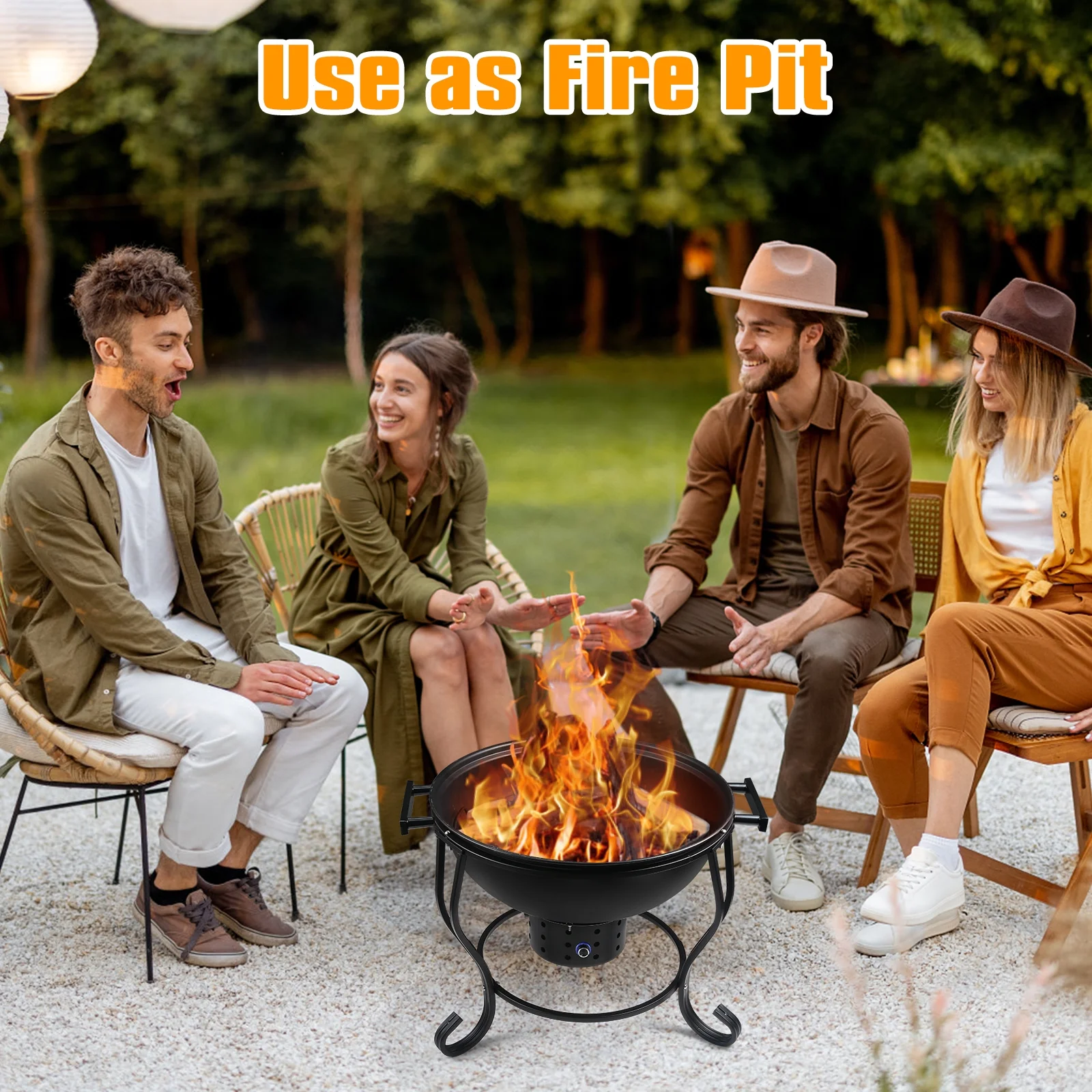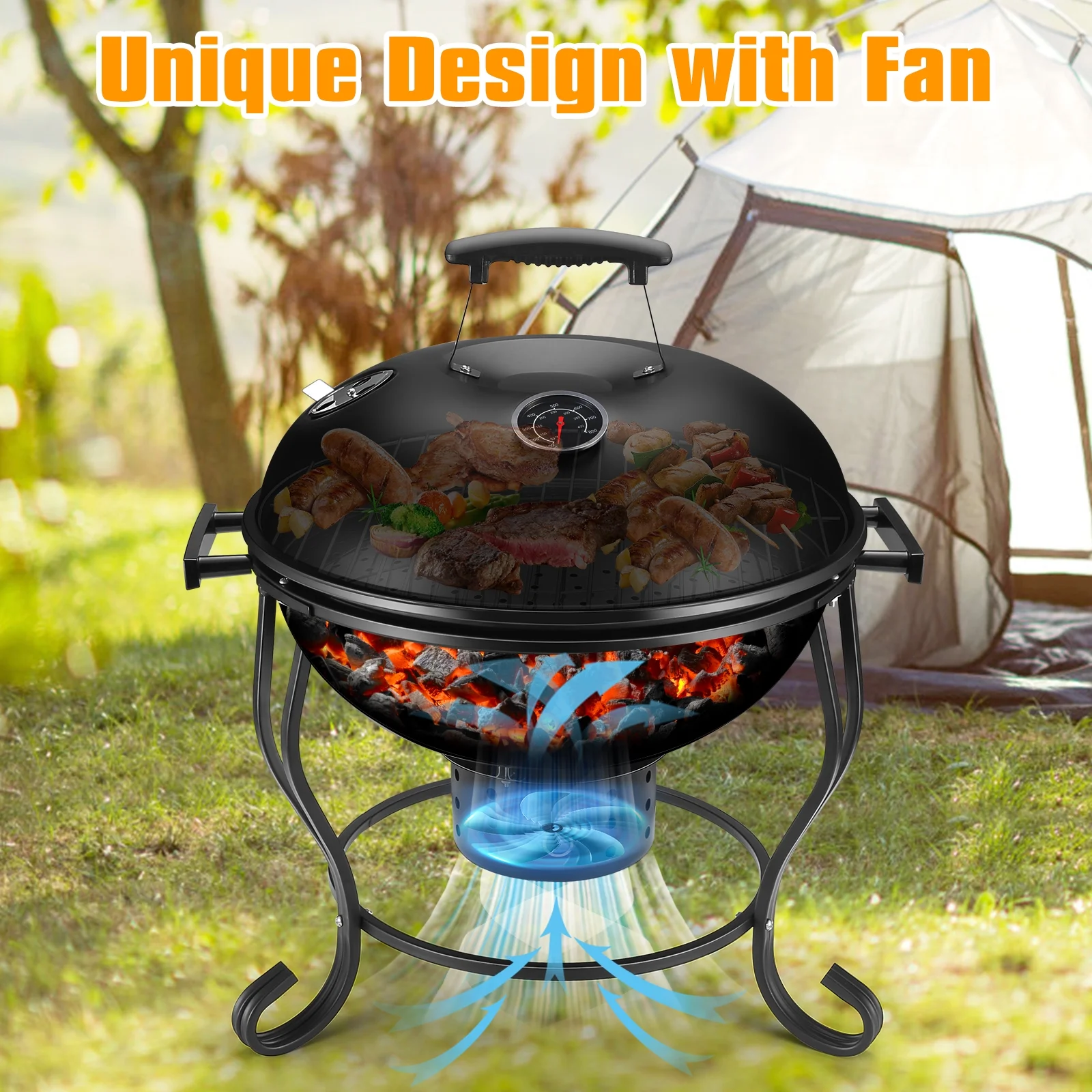 TOKTOO 17 inches Portable Charcoal Grill with Adjustable Fan, 2 in 1 Grill, Versatile Fire Pit for Camping & Outdoor Cooking
