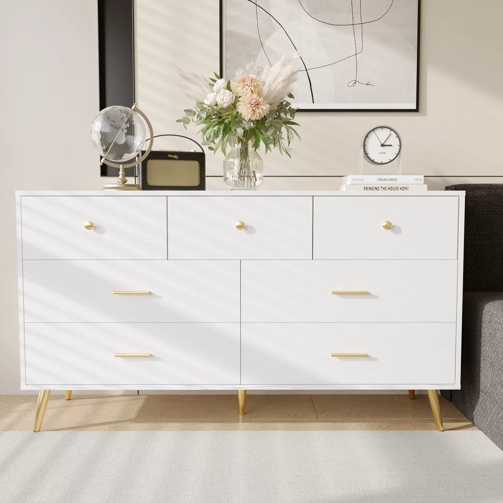 Yaoping 7 Drawer Dresser for Bedroom, Modern Wood Dresser with Wide Drawers and Metal Handles, Storage Chest of Drawers for Living Room Hallway Entryway(White-55.1)