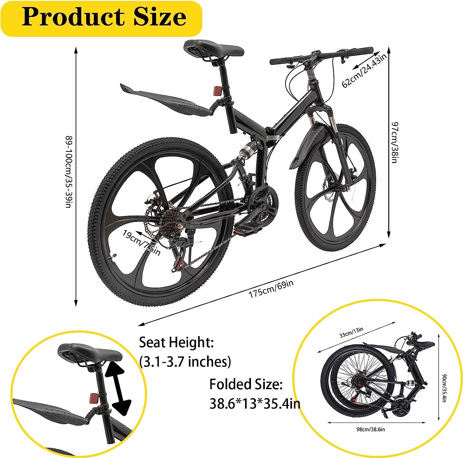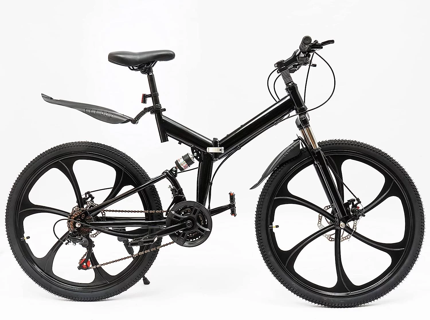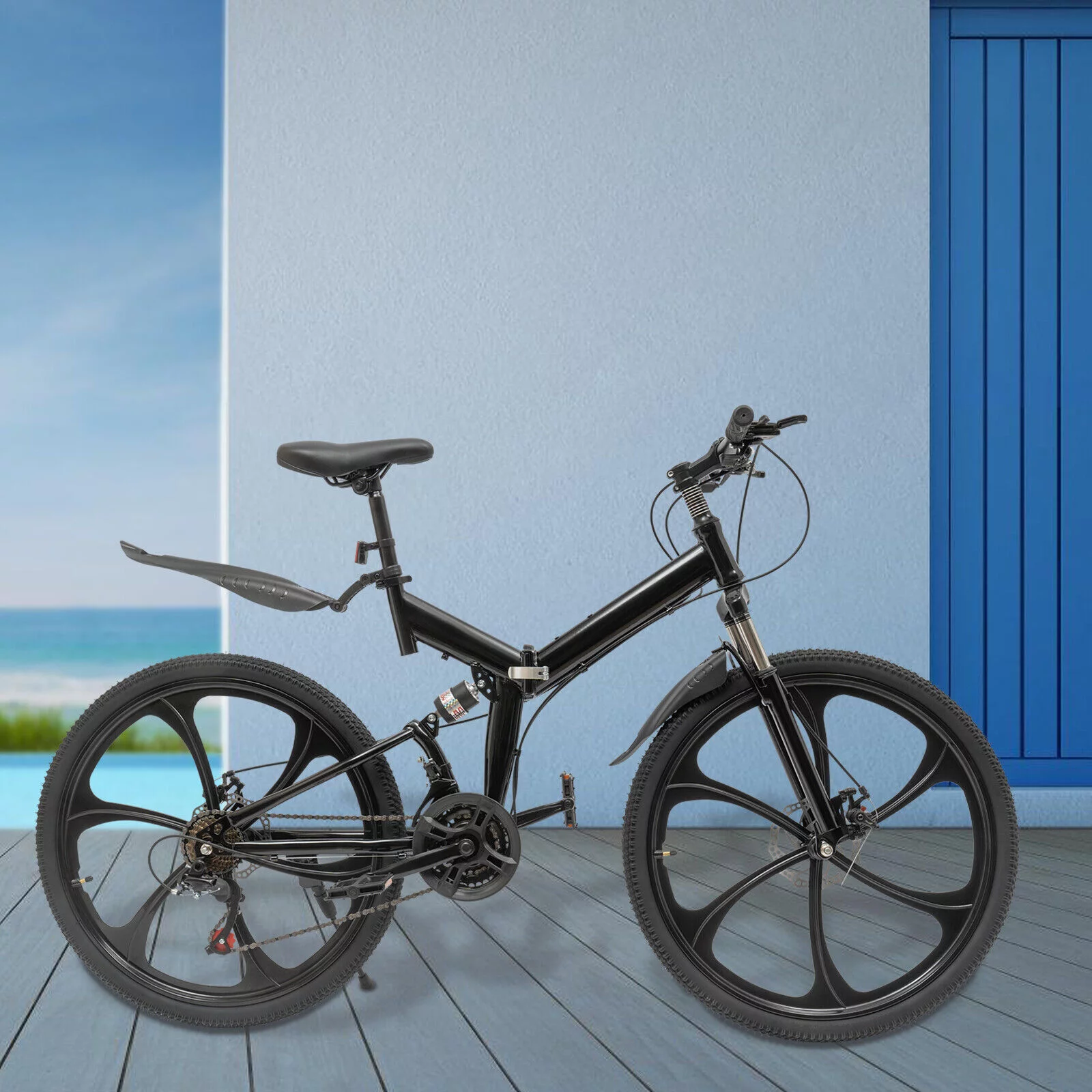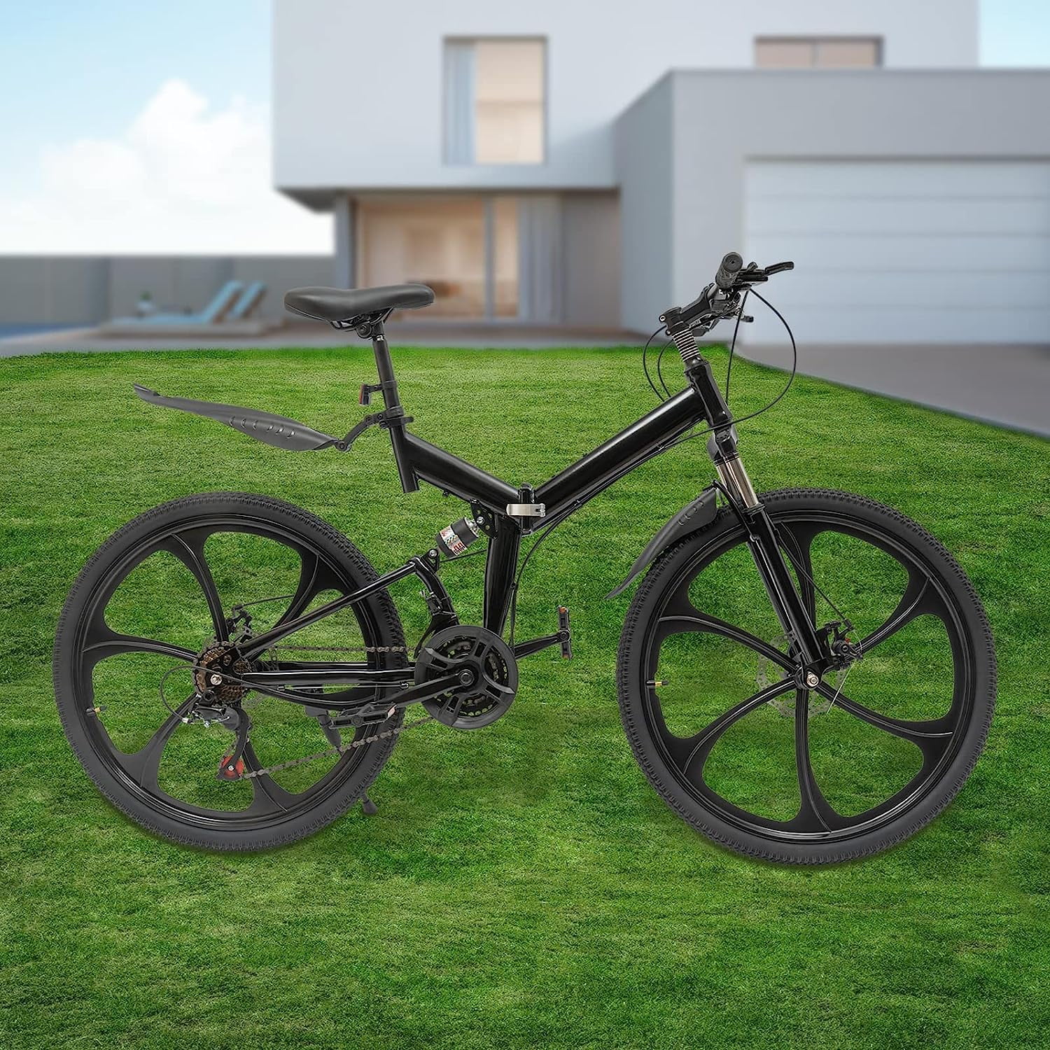 Oukaning 26 Folding Mountain Bike,Height Adjustable 21-Speed Shifter Folding City Bicycle,Double Disc Brake (Black)