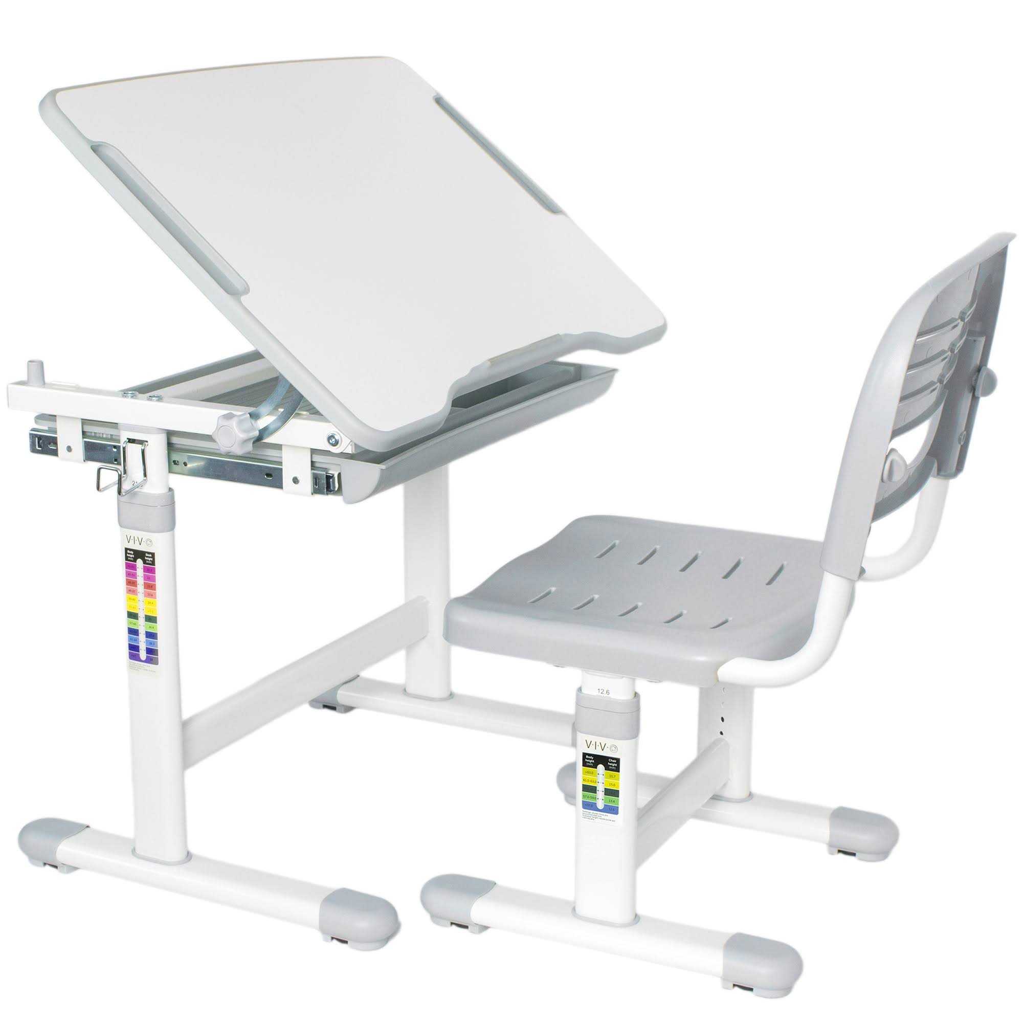 Vivo Height Adjustable Childrens Desk & Chair Kids Interactive Work Station Grey - Megean