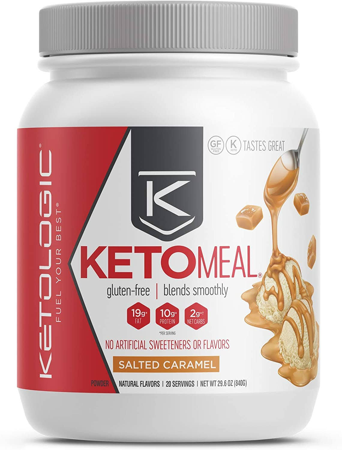 KetoLogic Keto Meal Replacement Shake Powder: Salted Caramel (20 Servings) Low - Megean