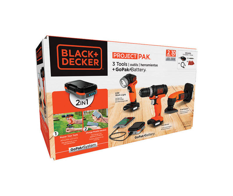 Black & Decker 2815371 Gopak Cordless 3 Tool Drill LED Light & Sander Kit 12 V - Megean