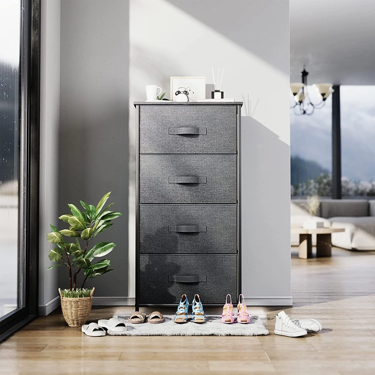 Dextrus Fabric Dresser with 4 Drawers, Furniture Storage Tower Cabinet, Organizer for Bedroom, Living Room, Hallway, Closet & Nursery