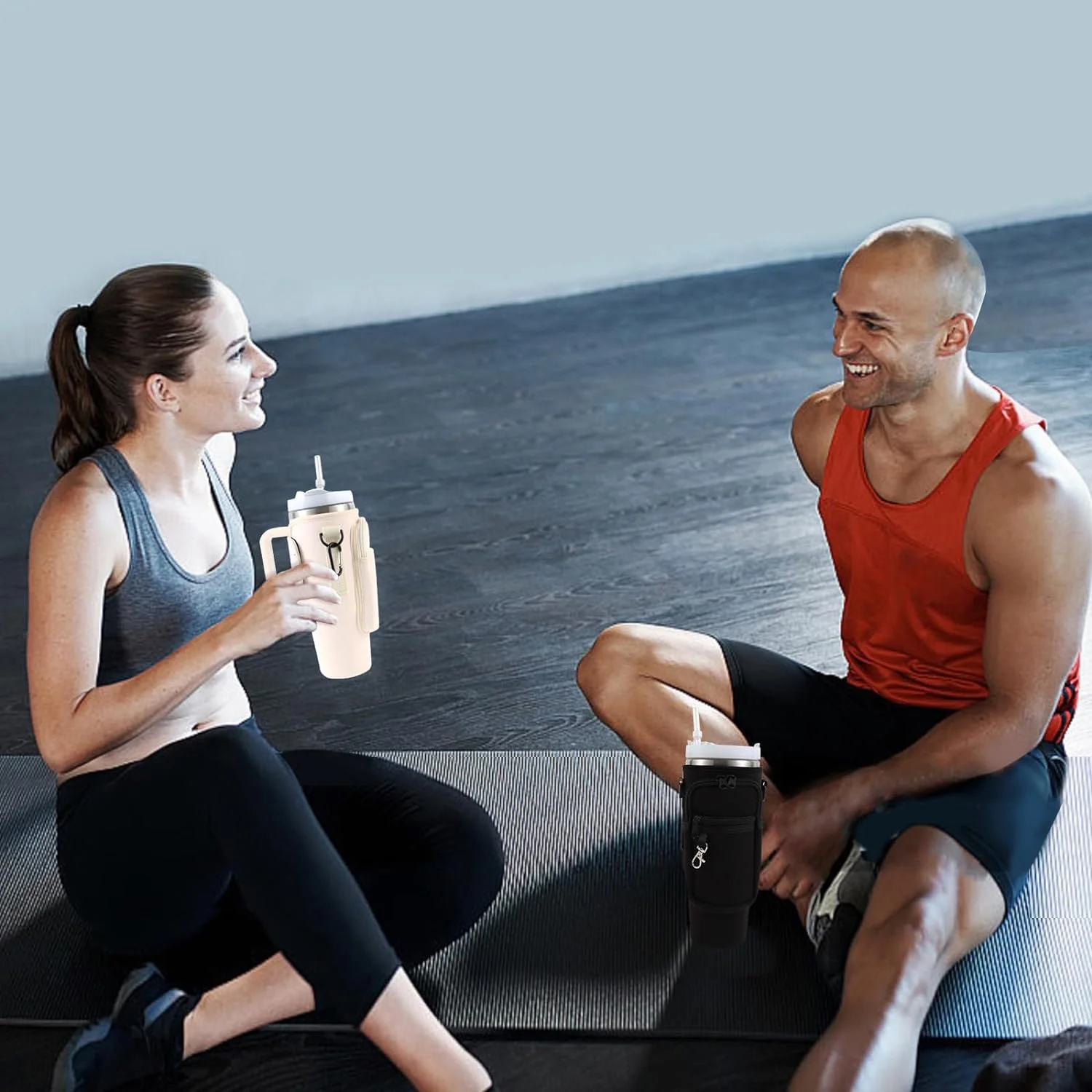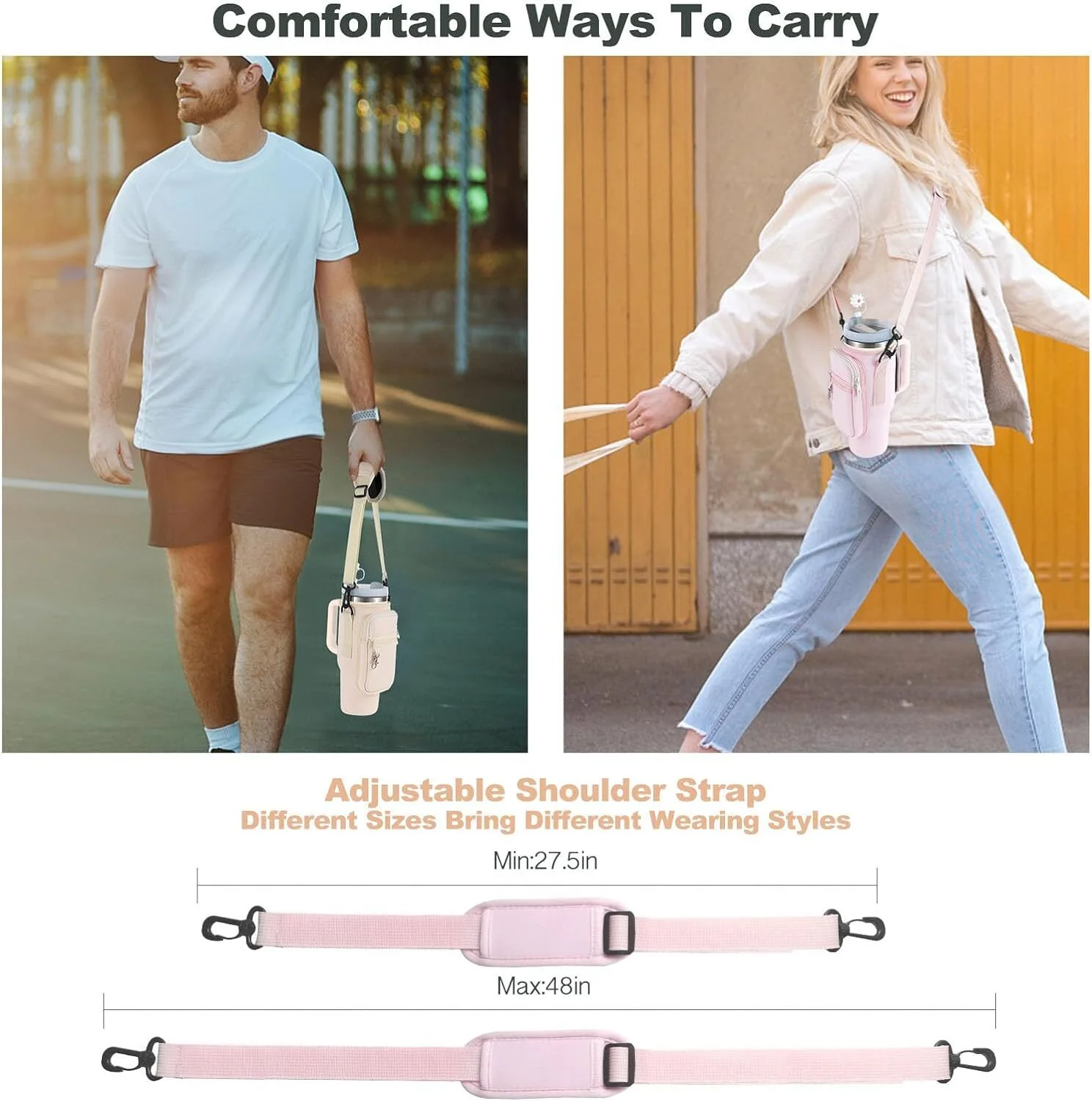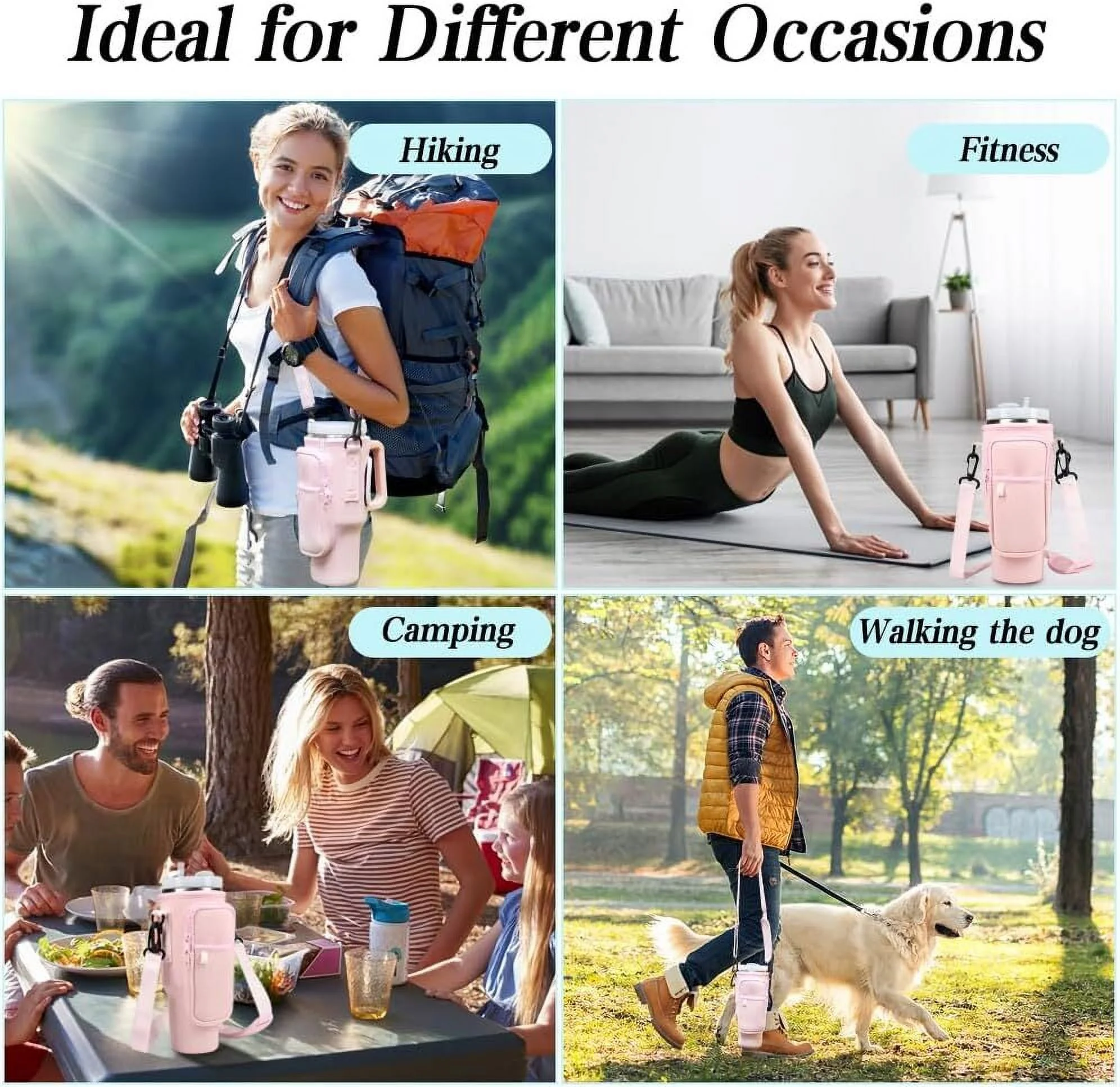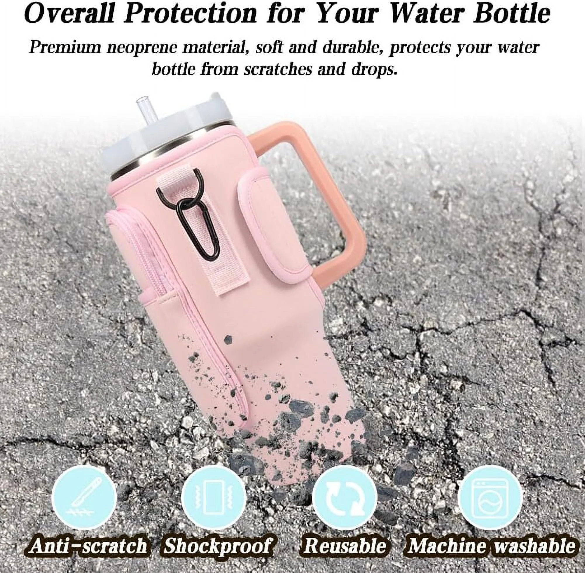 Water Bottle Carrier Bag with Phone Pocket Compatible with Stanley 40oz Tumbler, Water Bottle Holder Pouch with Adjustable Shoulder Strap for Stanley Cup Accessories (Black) - Curated Treasures Market