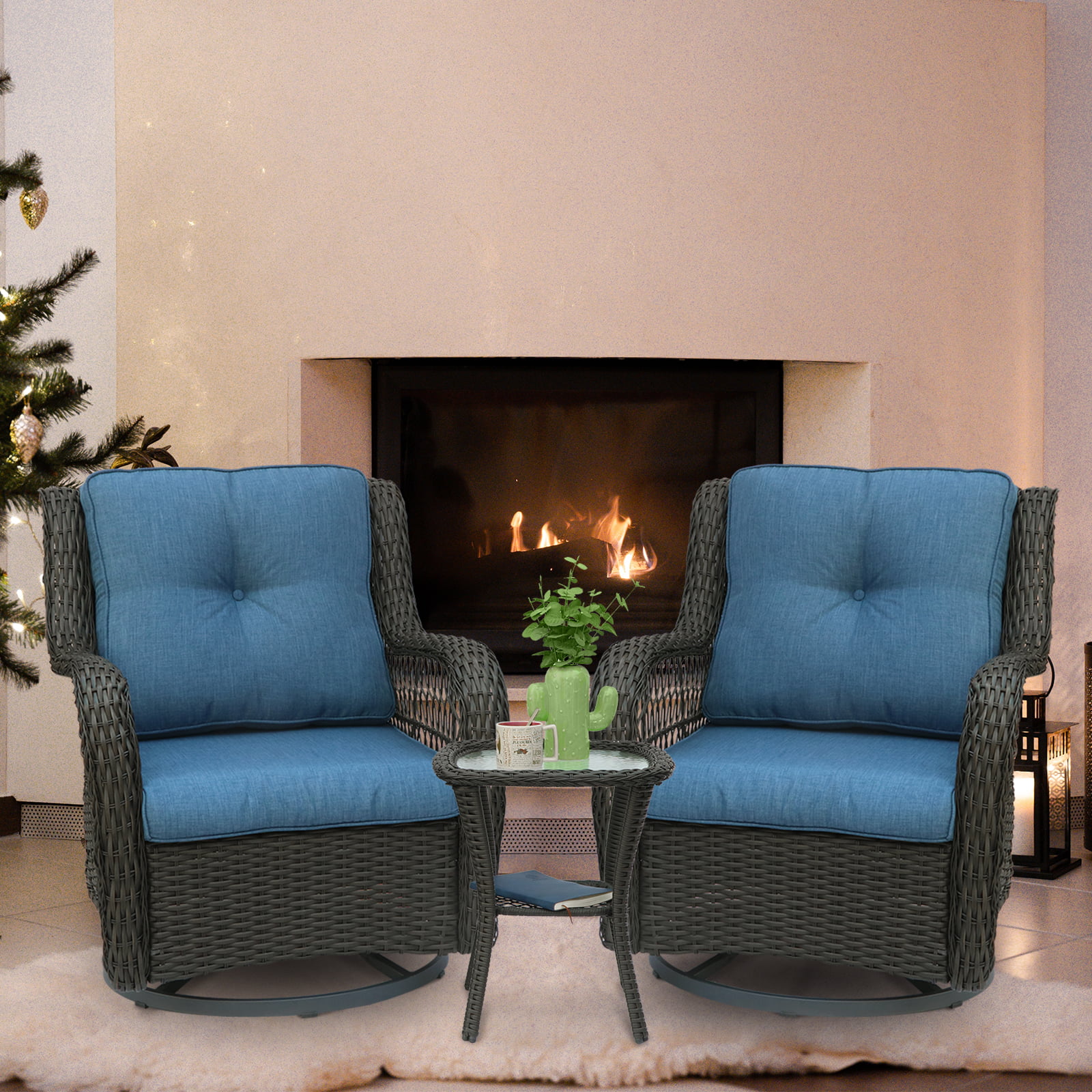 EURO SAKURA 3 PCS Outdoor Wicker Swivel Rocker Patio Set,360 Degree Swivel Rocking Rattan Chairs Patio Wicker Bistro Sets - Curated Treasures Market