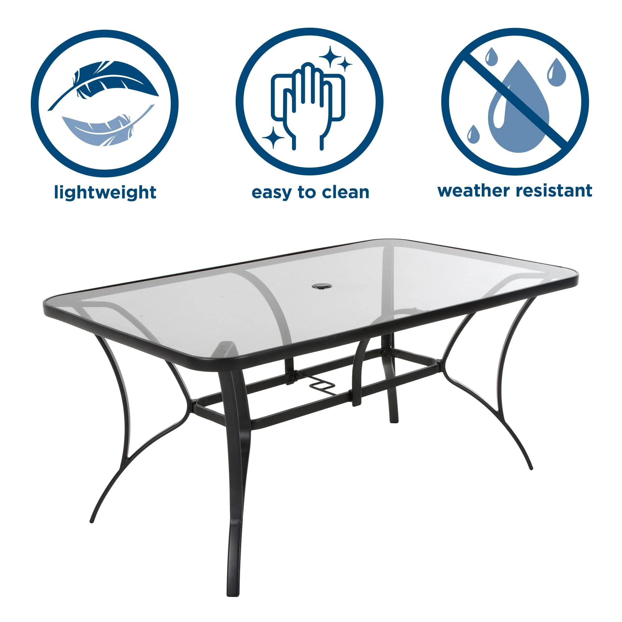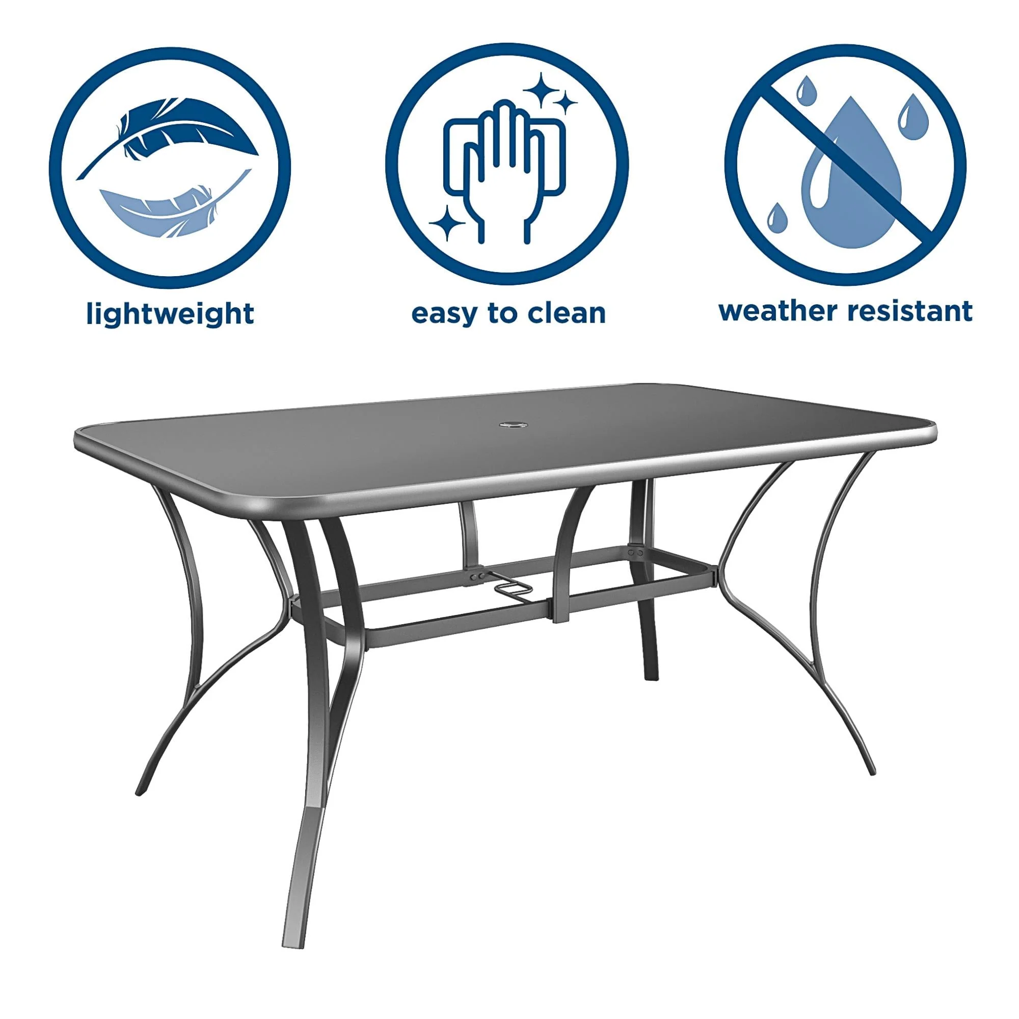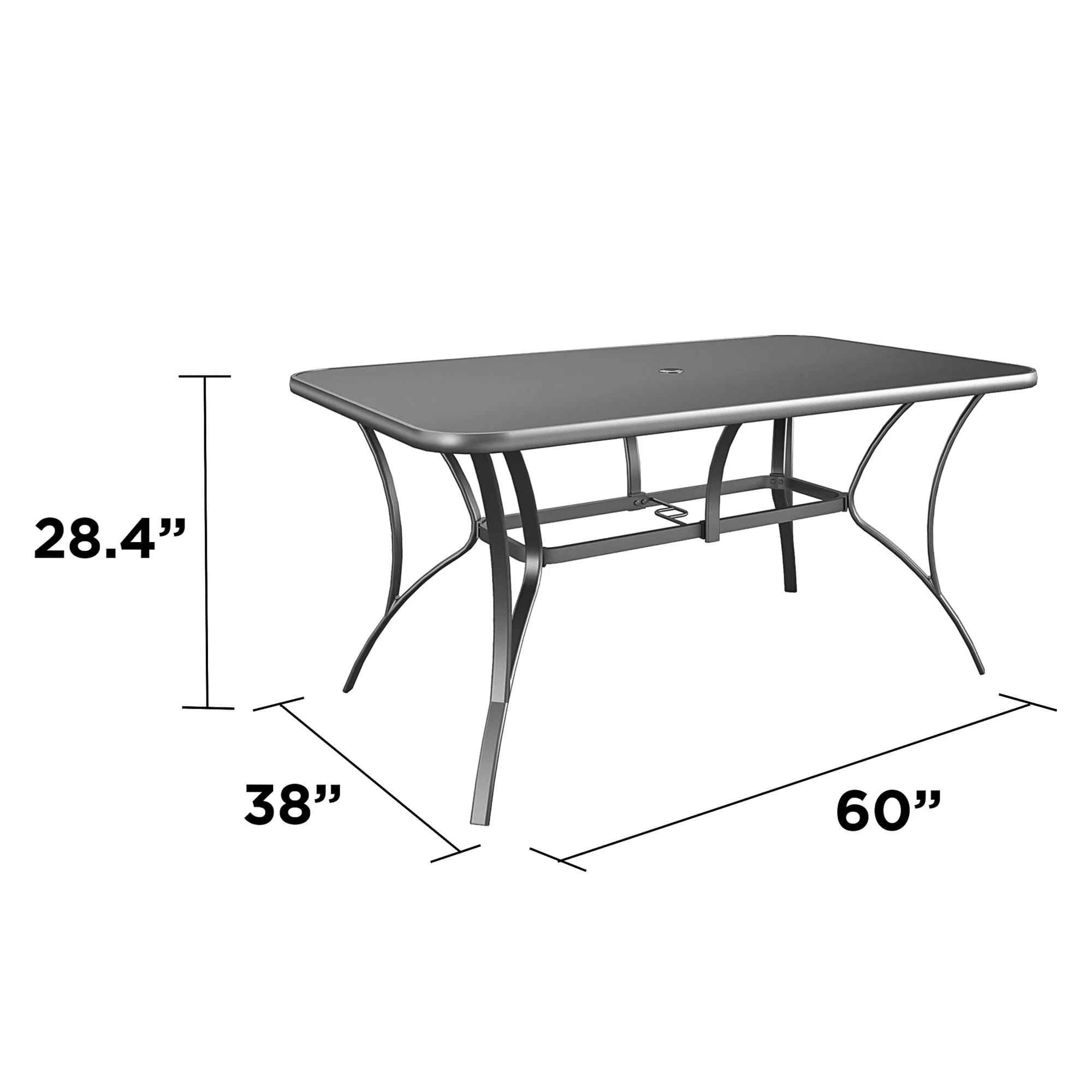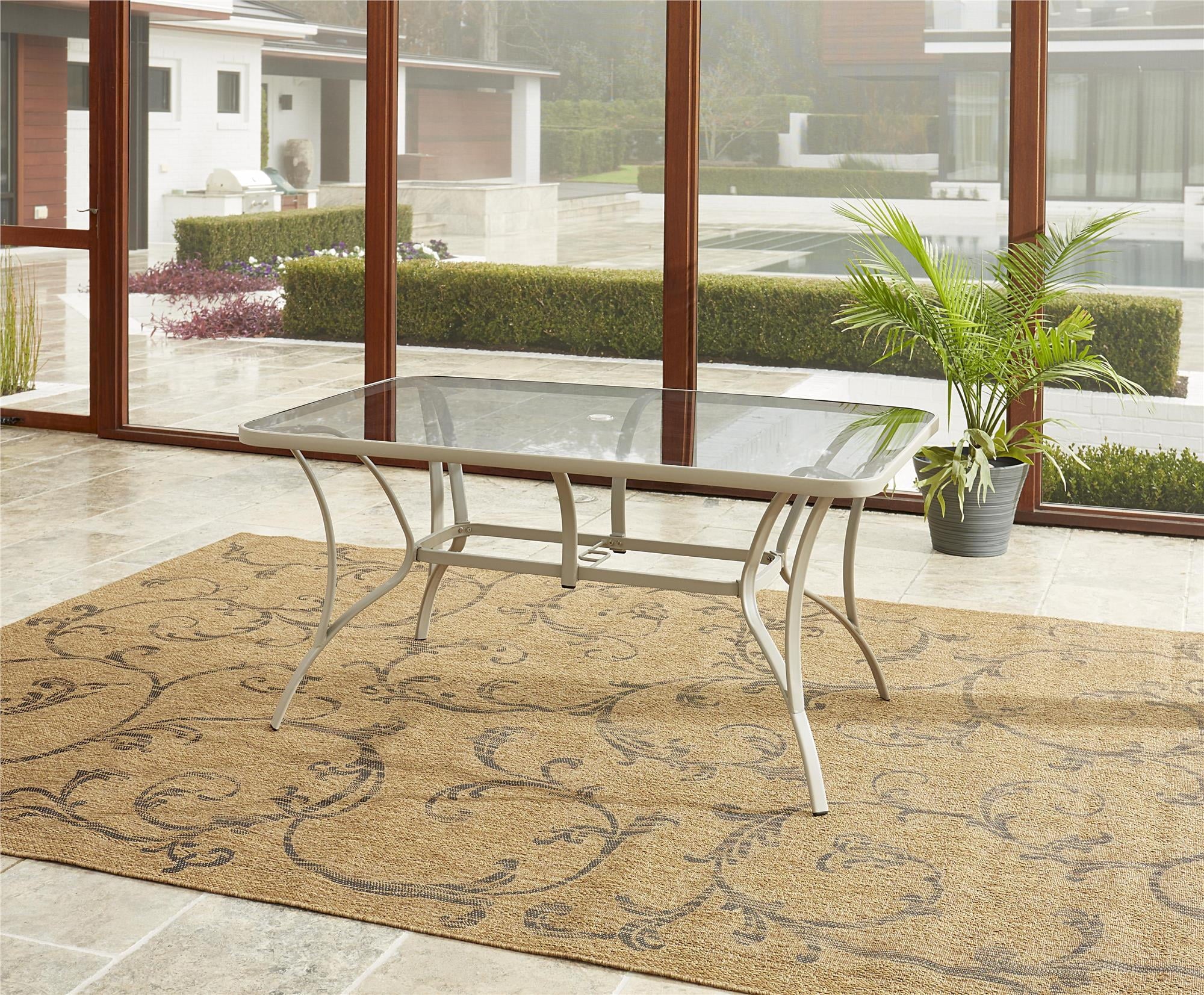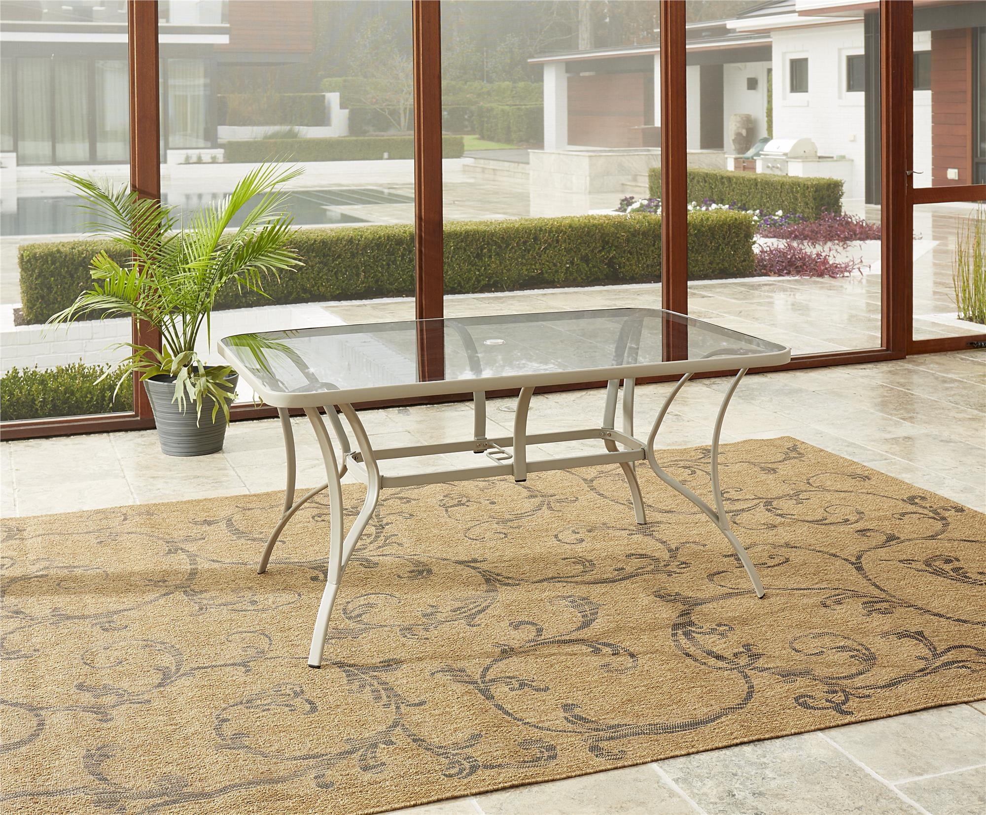 COSCO Outdoor Living Paloma Steel Patio Dining Table, Dark Gray Steel Frame, Tempered Glass Table Top