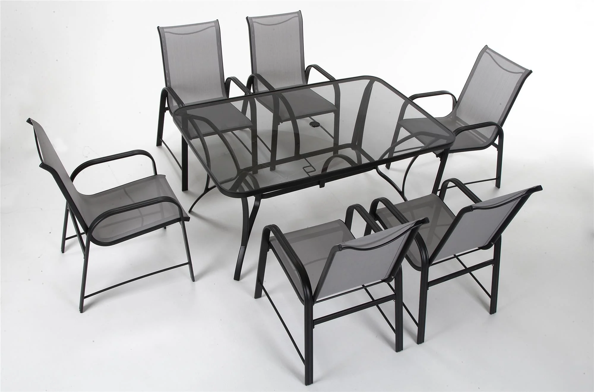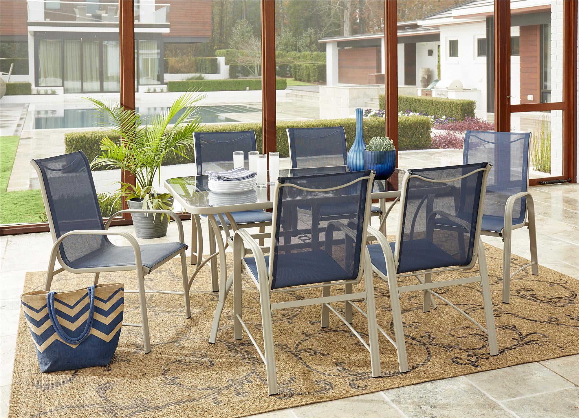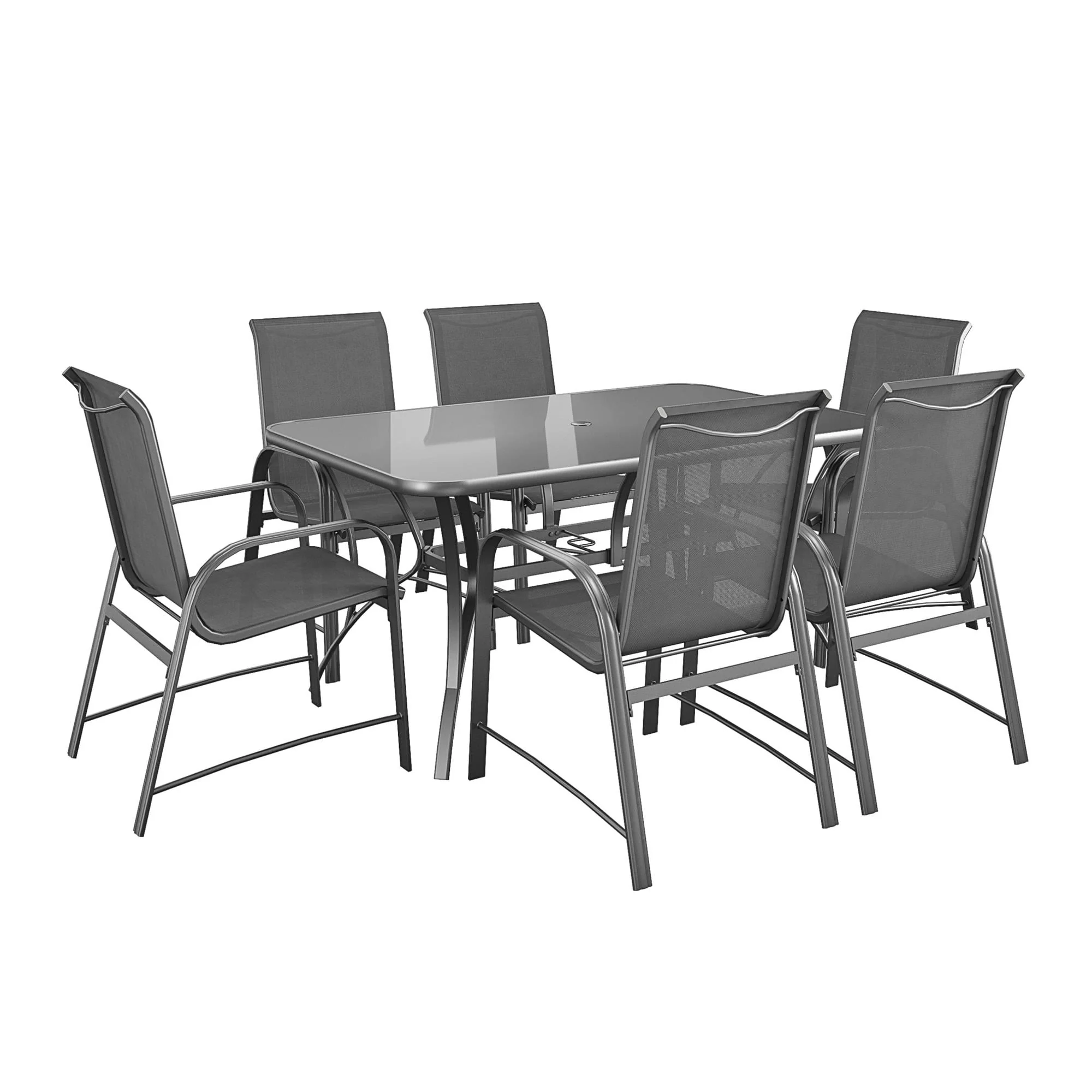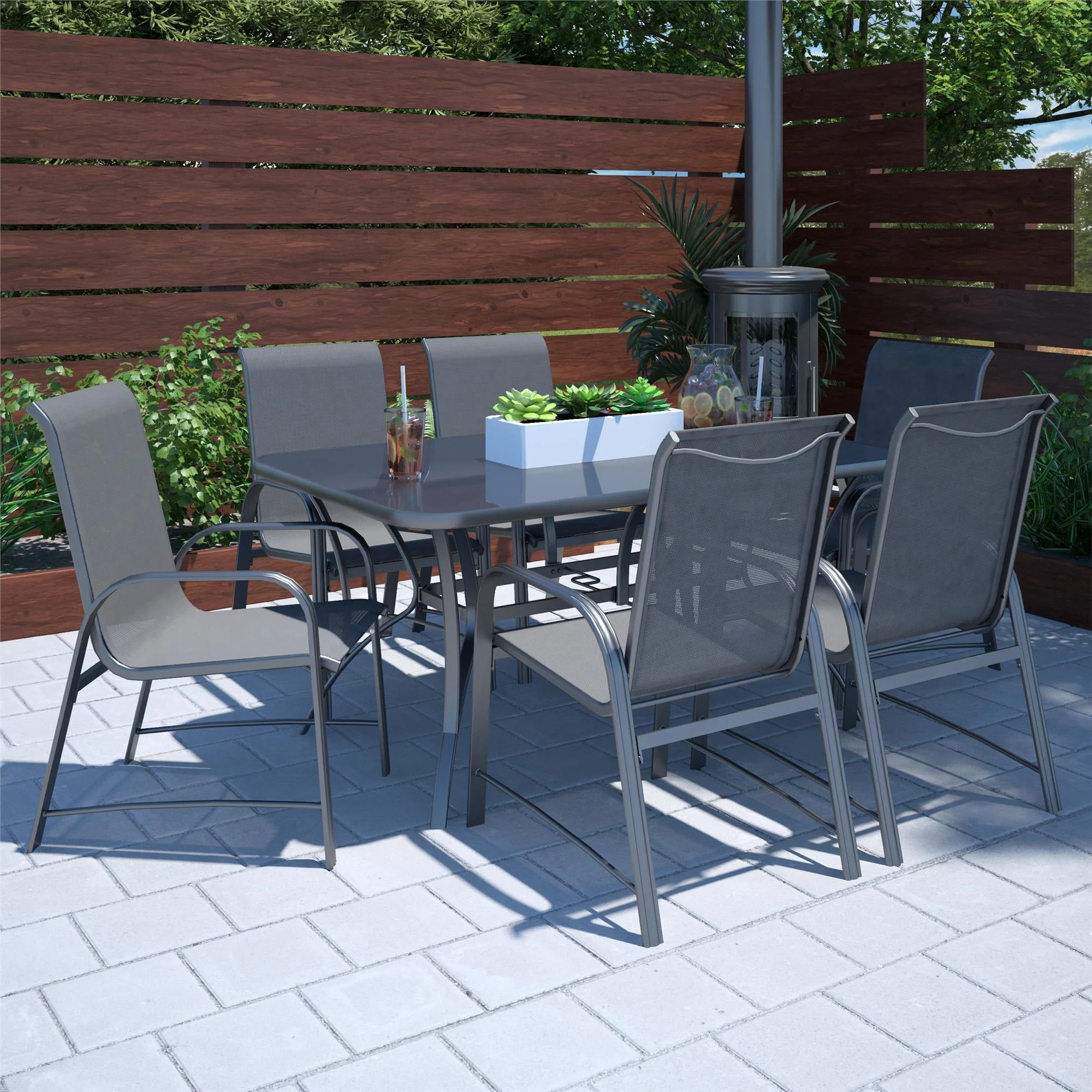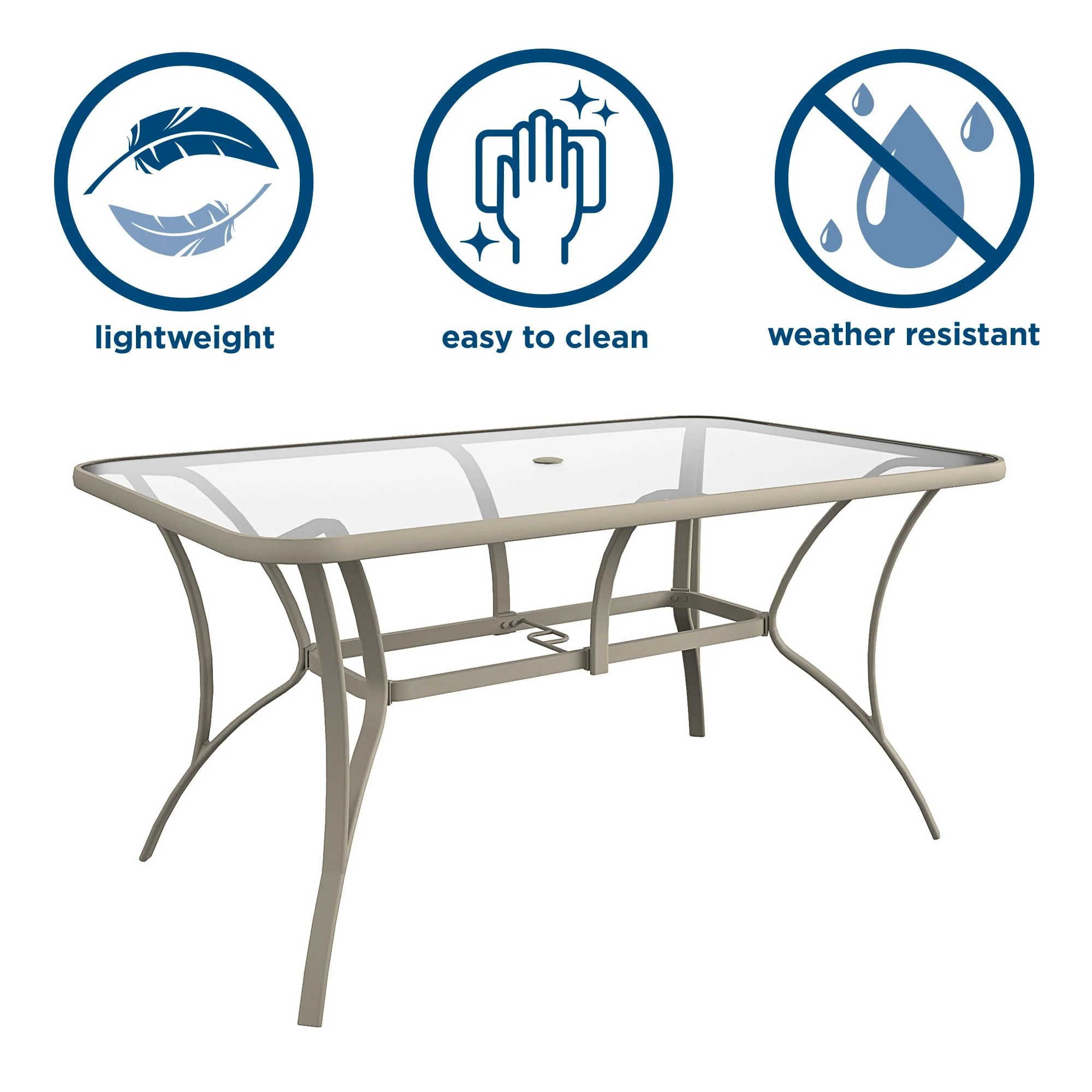COSCO Outdoor Living Paloma Steel Patio Dining Table, Dark Gray Steel Frame, Tempered Glass Table Top