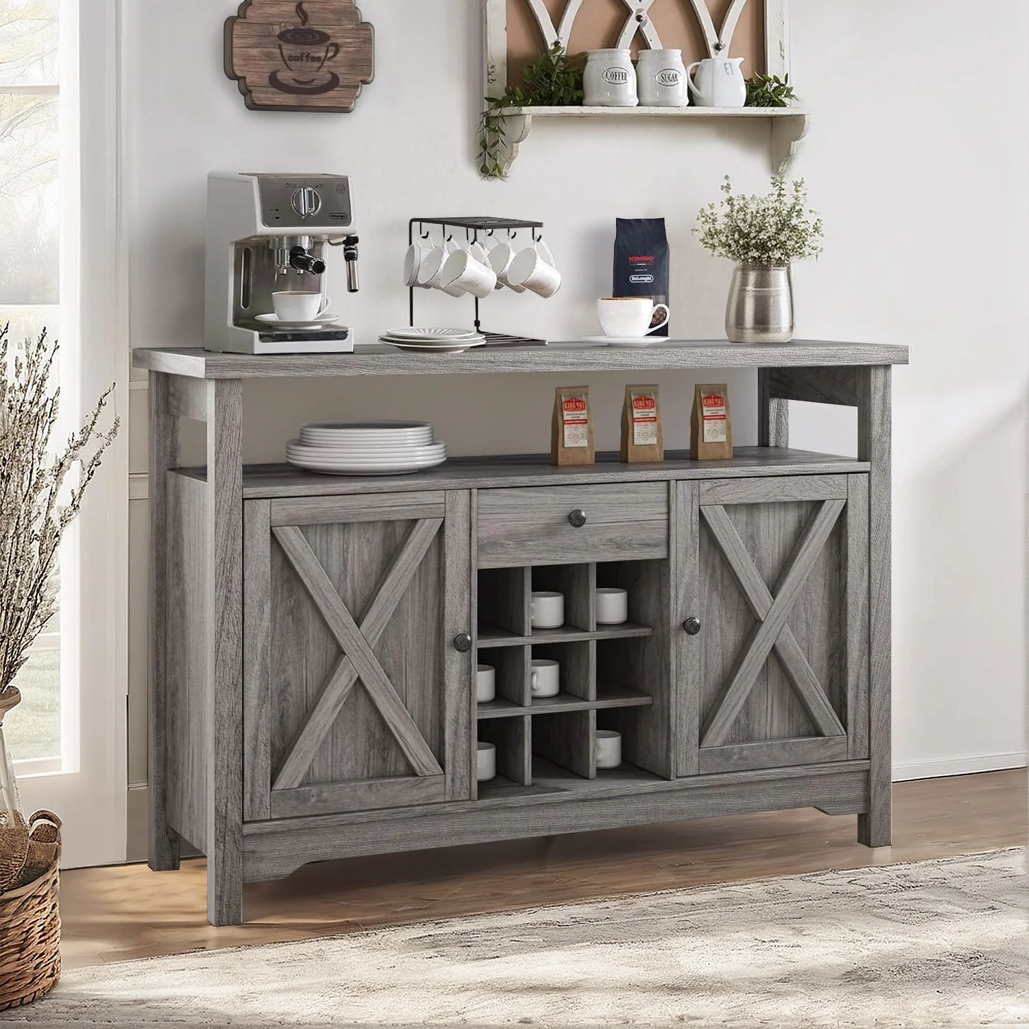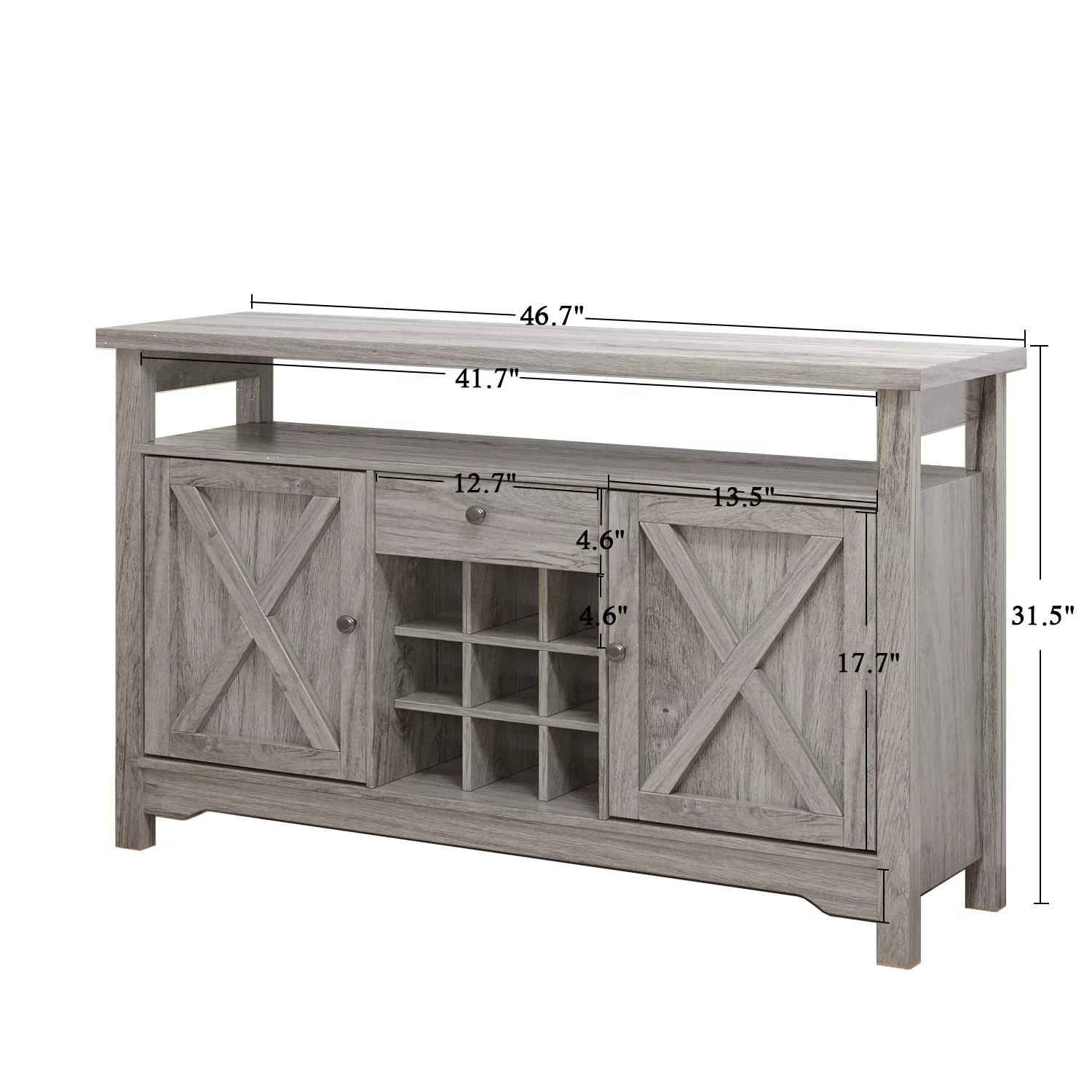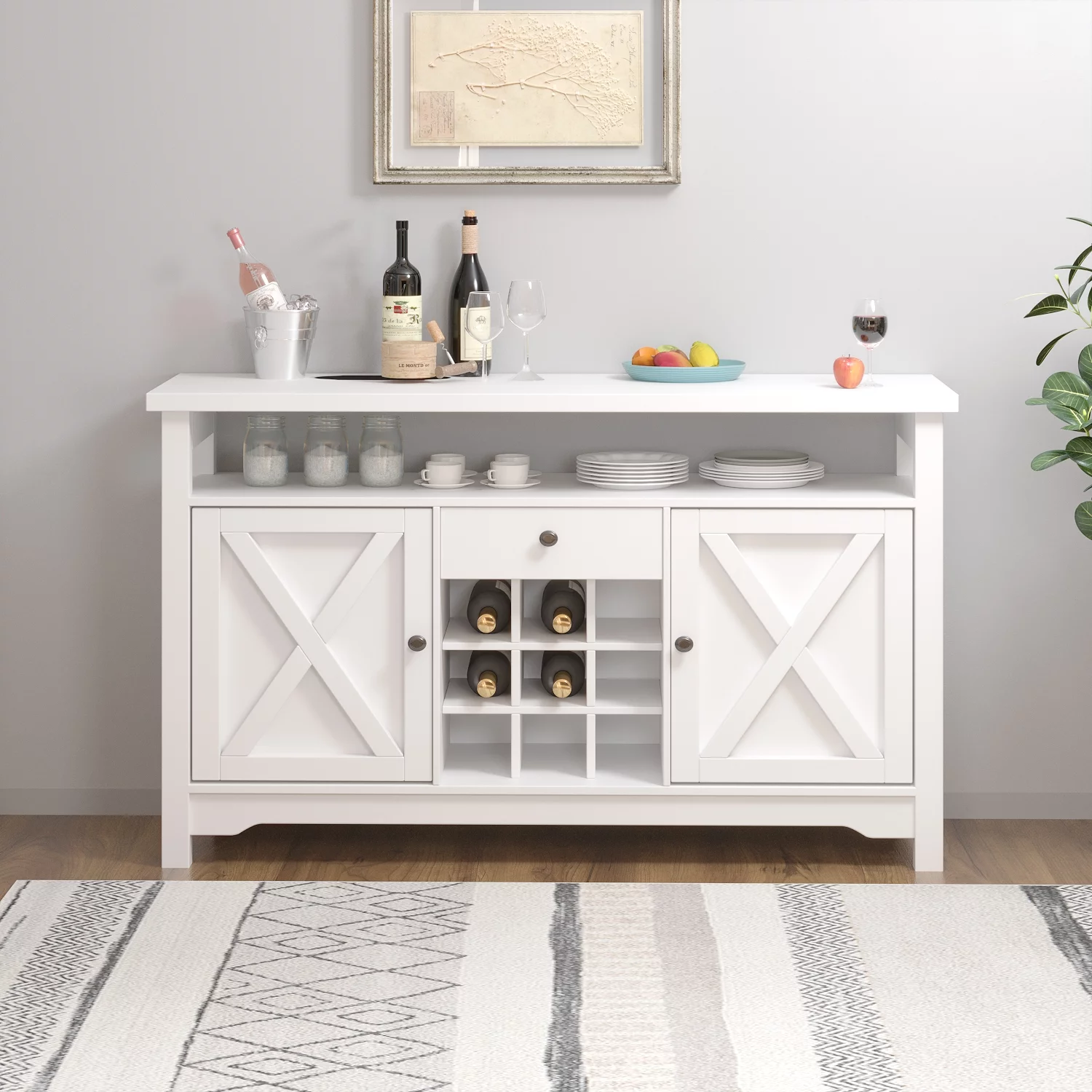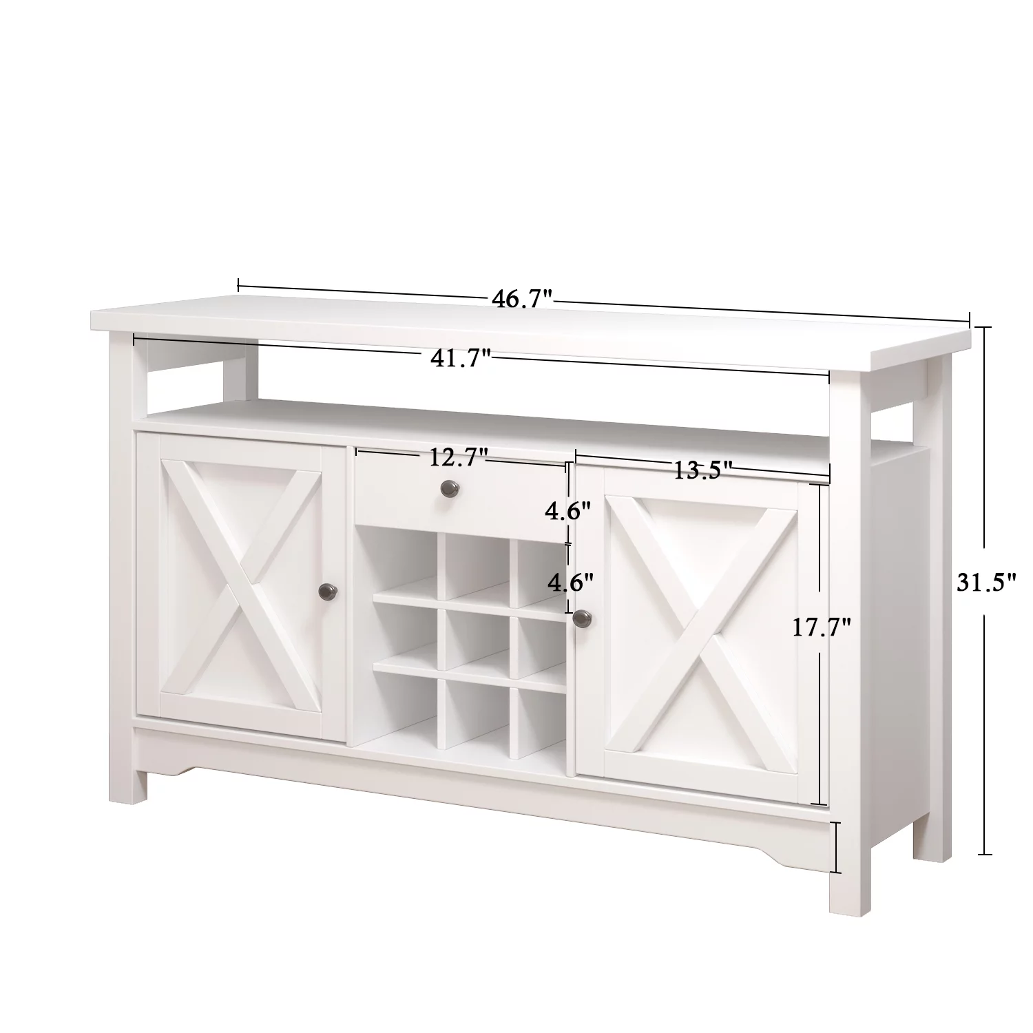 Catrimown Farmhouse Coffee Bar Cabinet, 47 Kitchen Buffet Storage Cabinet with Barn Door, Liquor Cabinet with Wine Rack, White