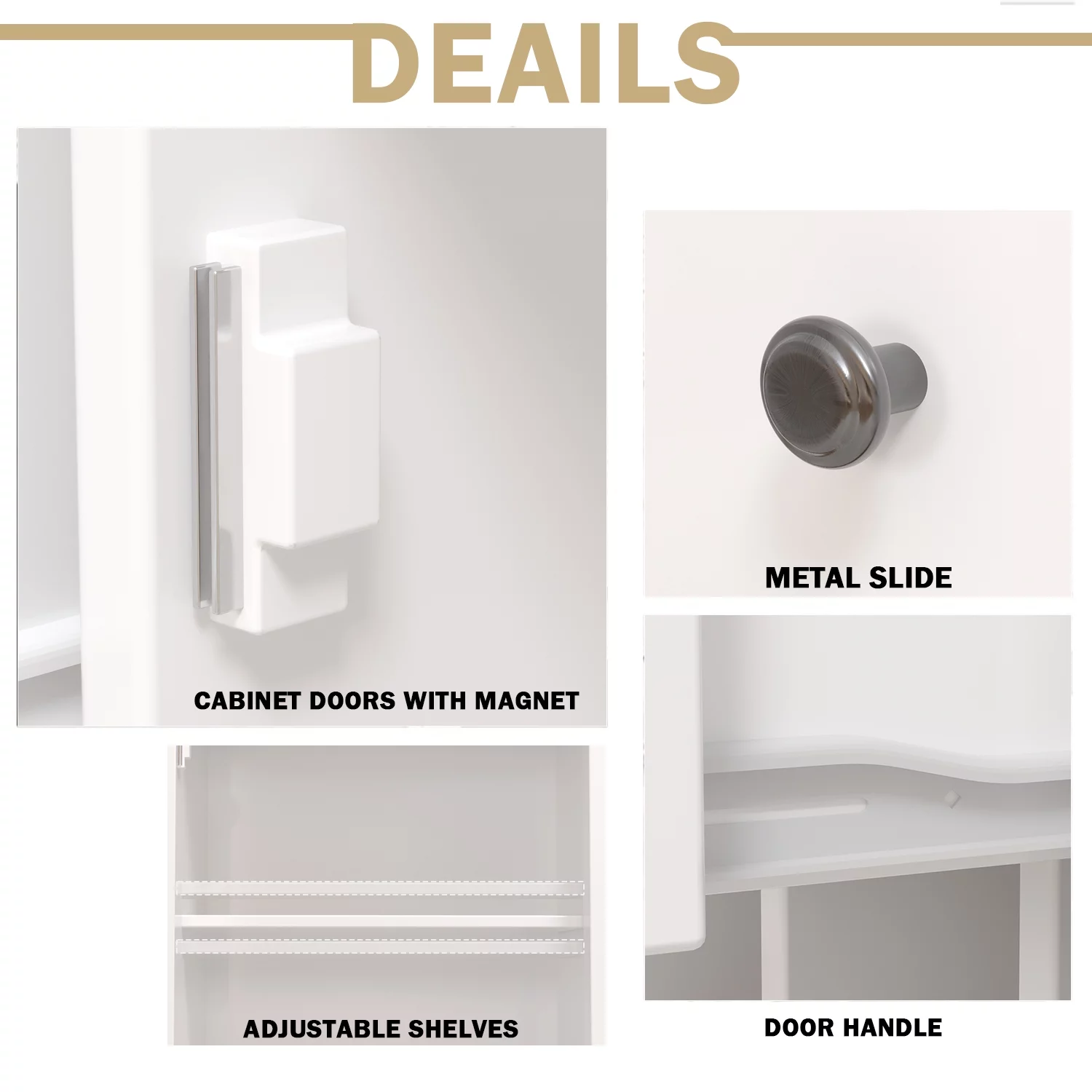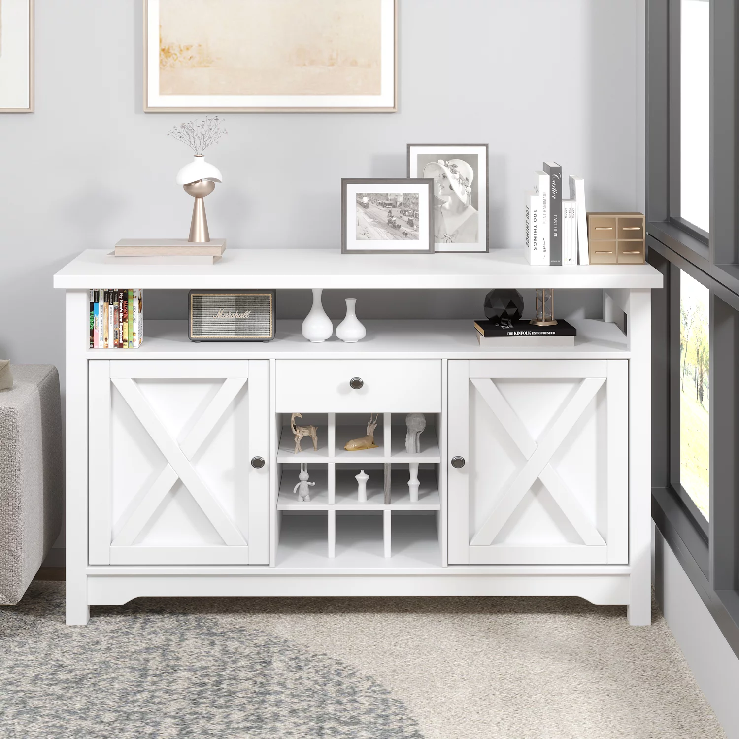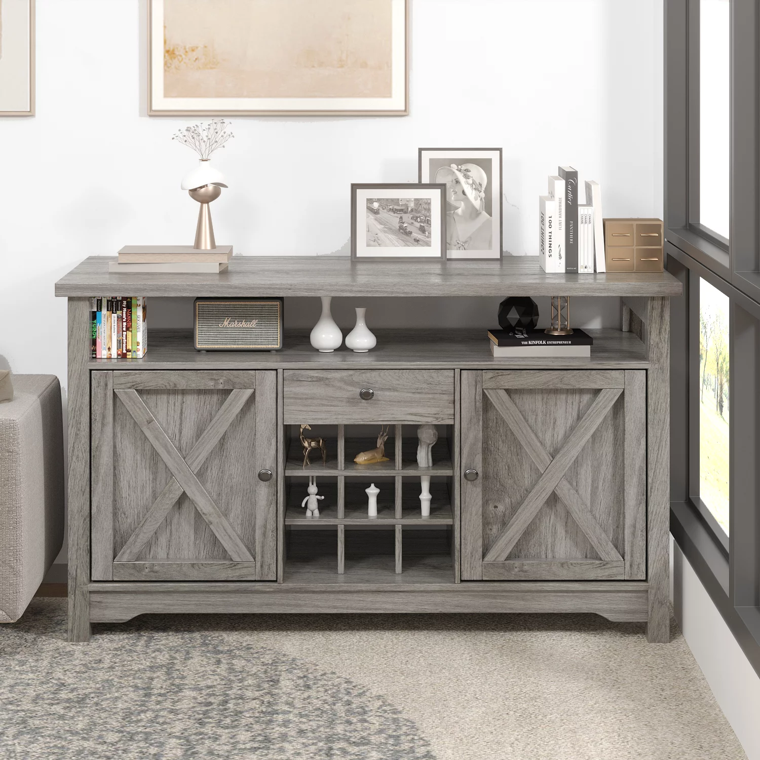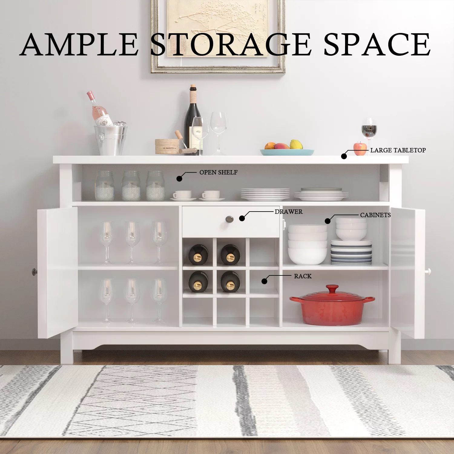 Catrimown Farmhouse Coffee Bar Cabinet, 47 Kitchen Buffet Storage Cabinet with Barn Door, Liquor Cabinet with Wine Rack, White