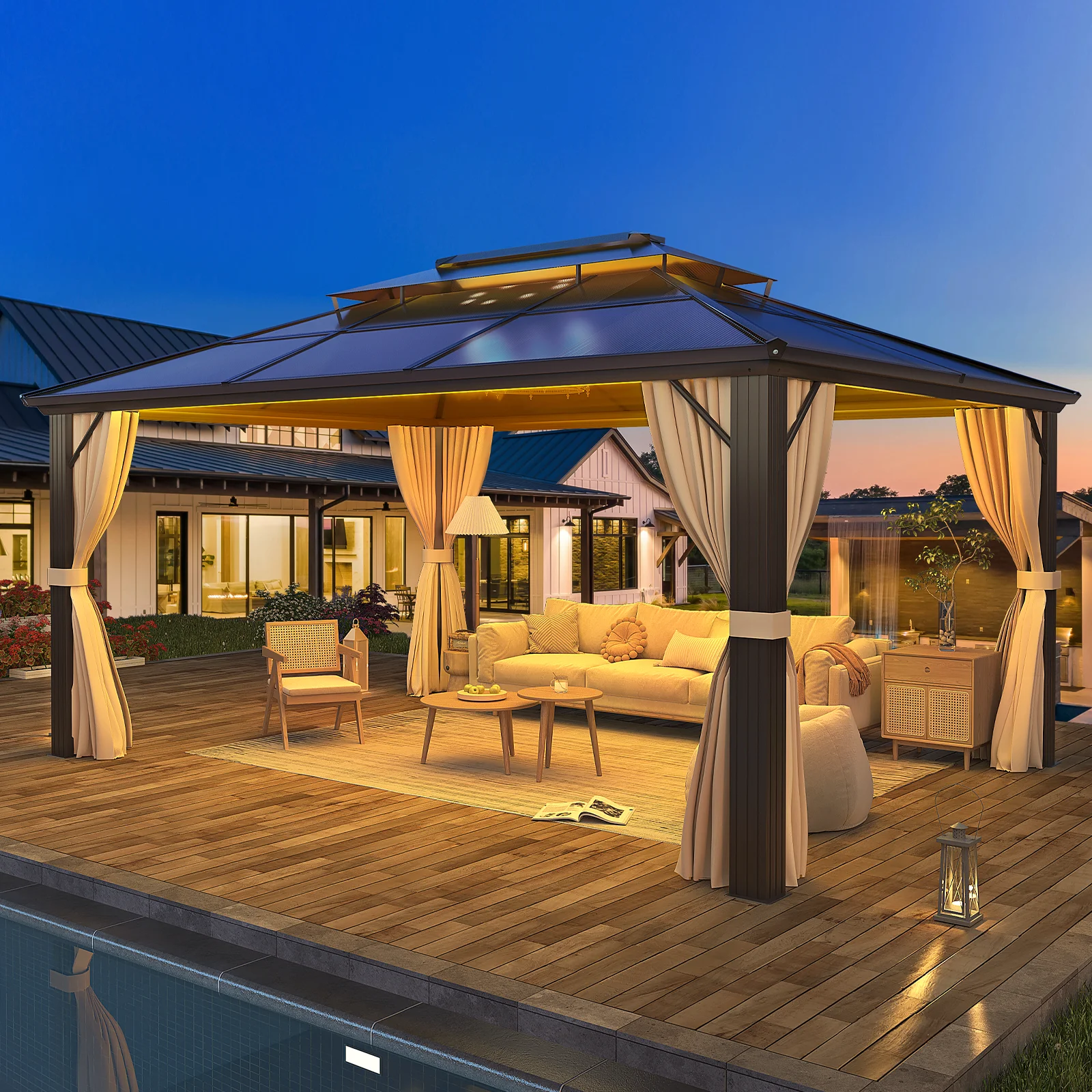 Erommy 10'x13' Hardtop Gazebo with Polycarbonate Double Roof and Aluminum Frame for Garden, Patio, Lawns