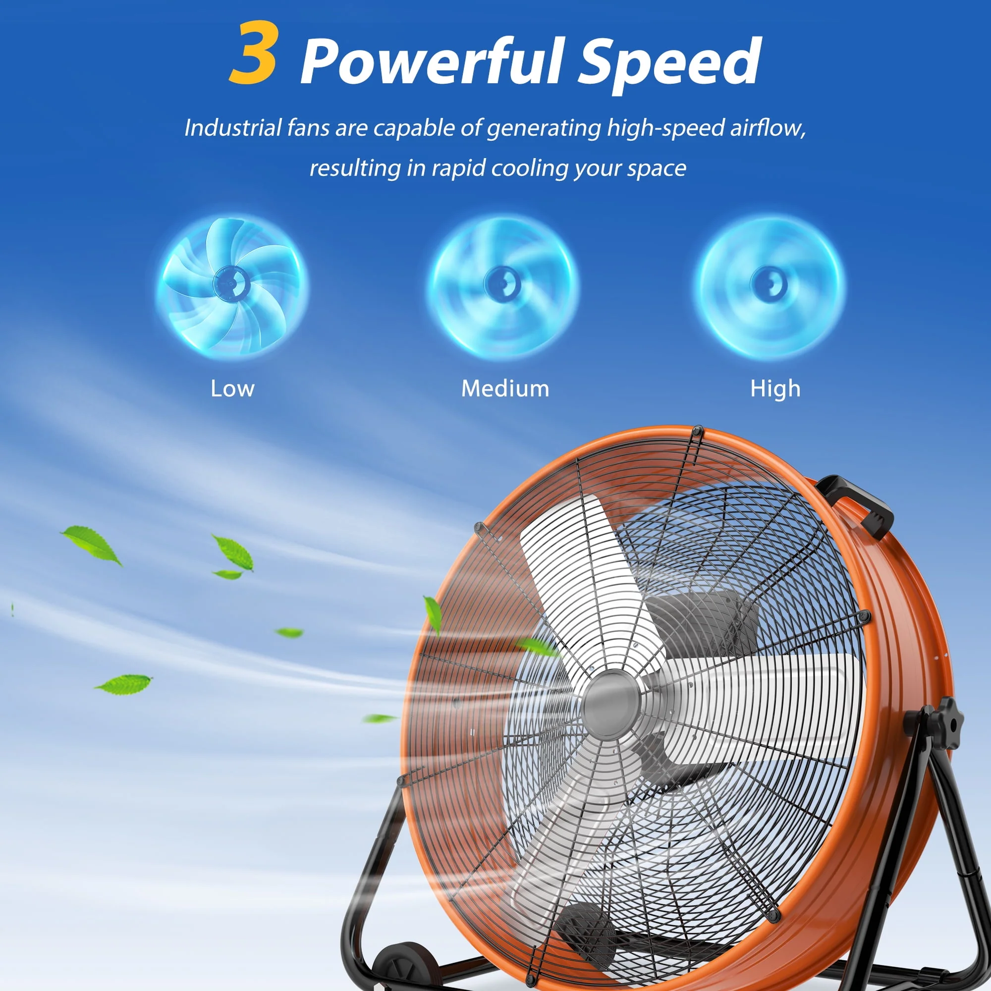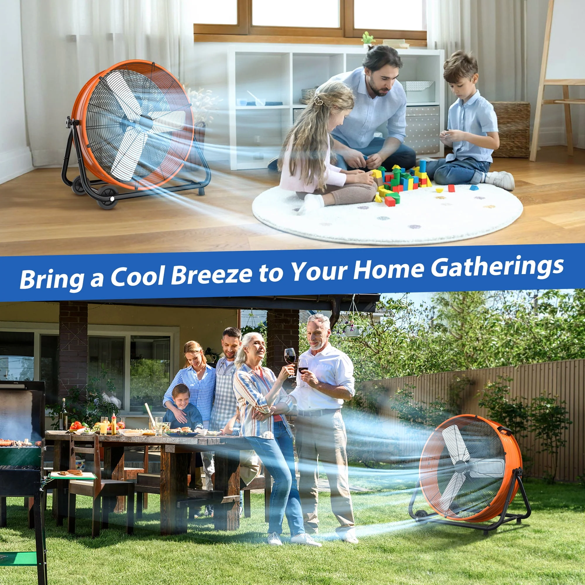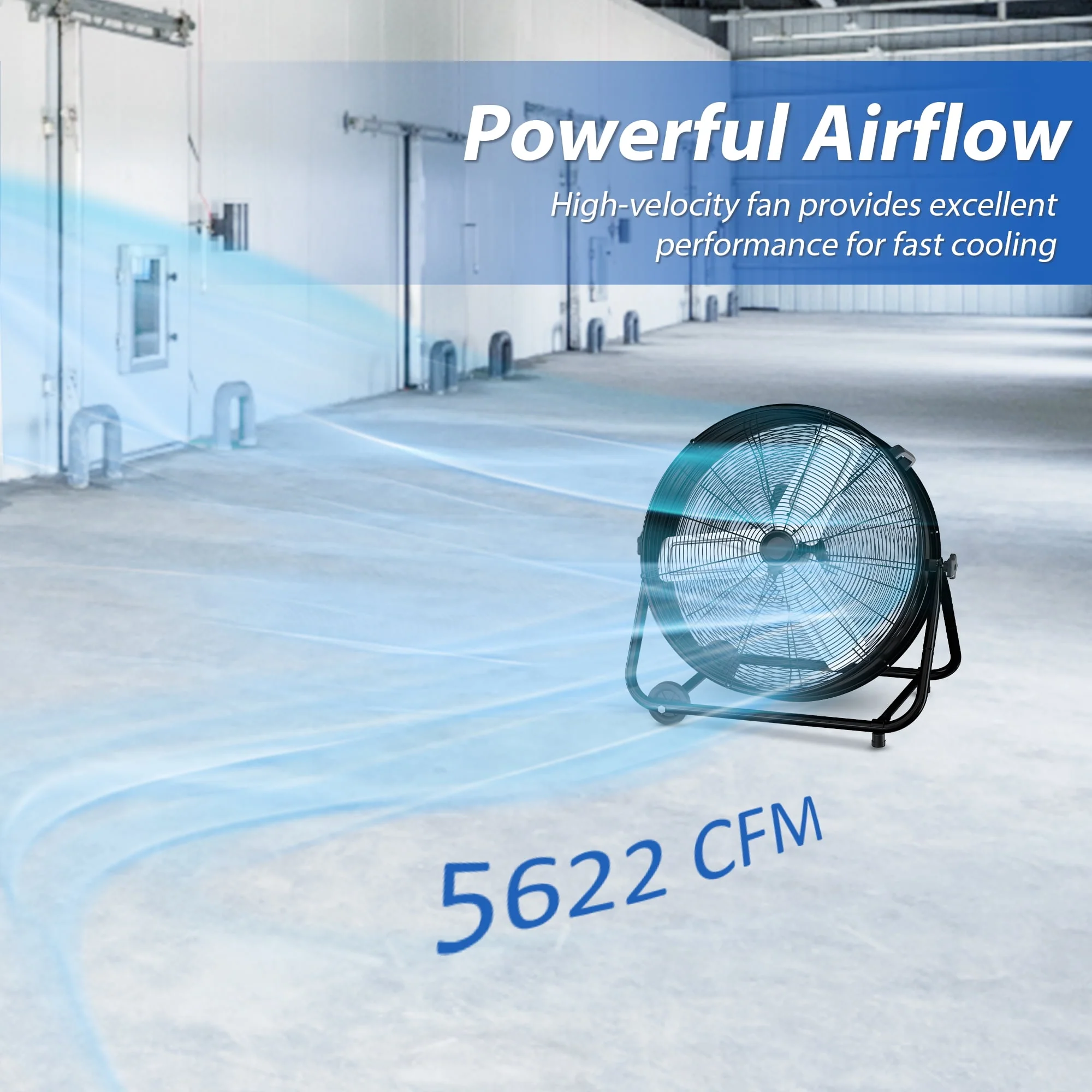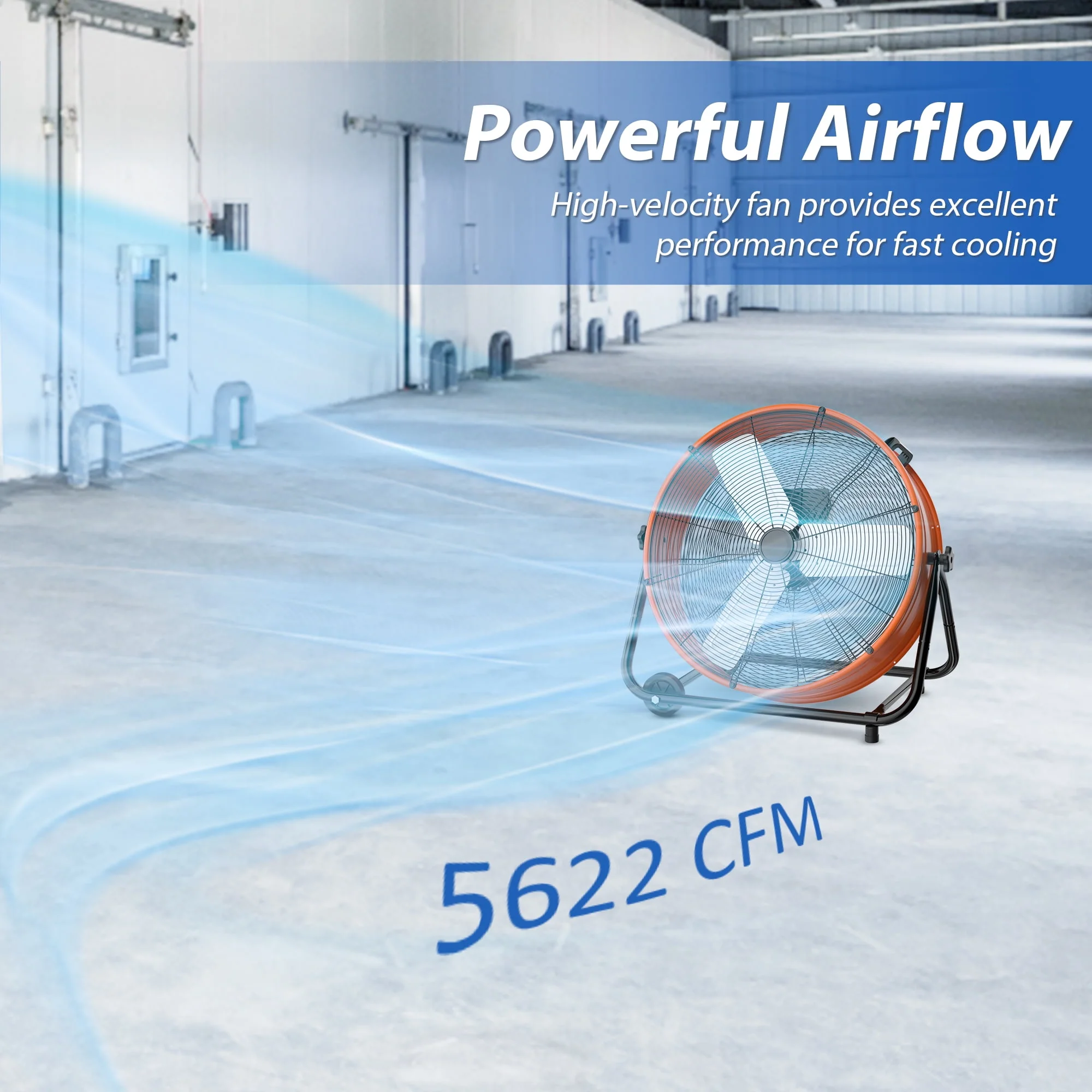 LifePlus Industrial Drum Fan, 5620cfm High Velocity Floor Fan 3 Speed Air Circulation, 24 Inch