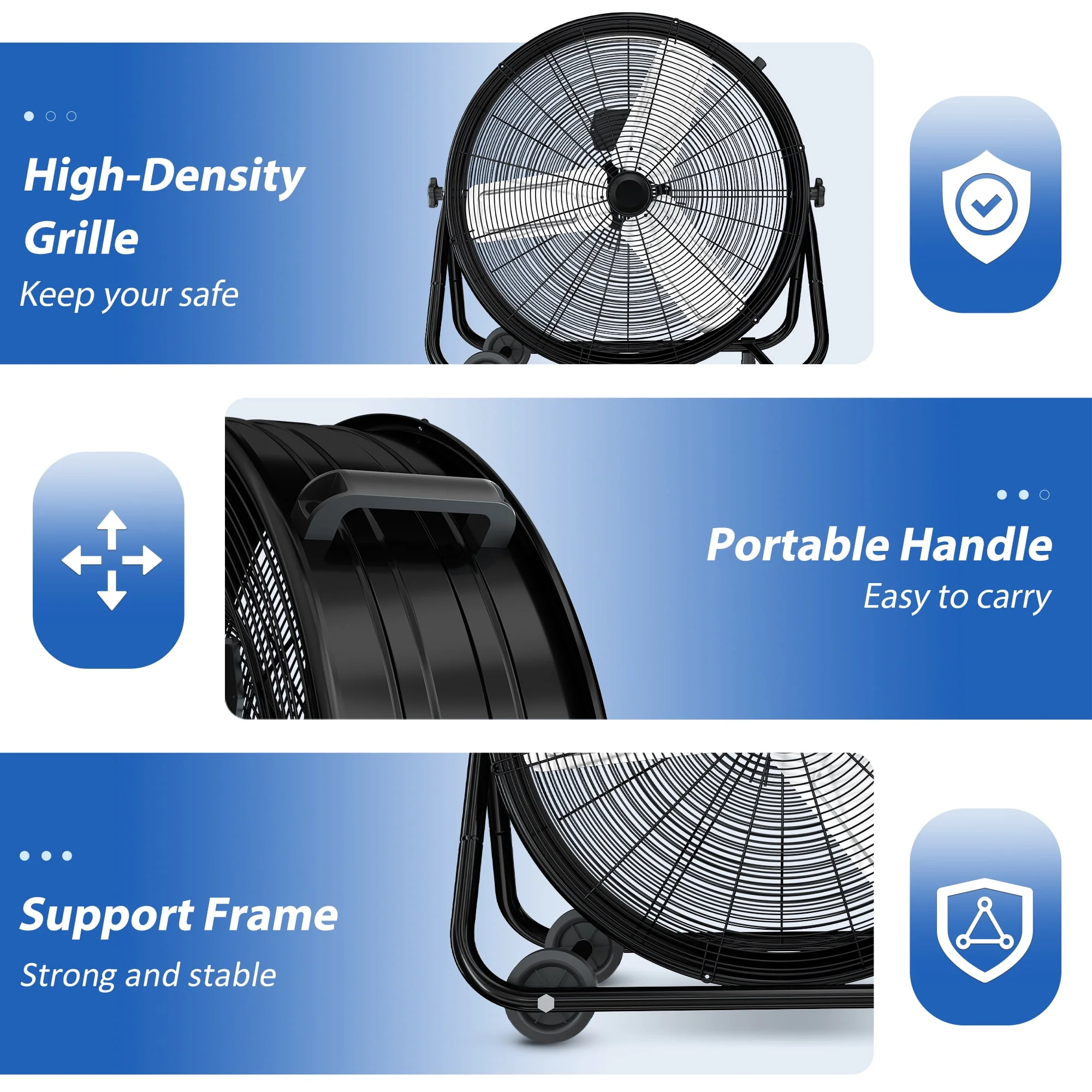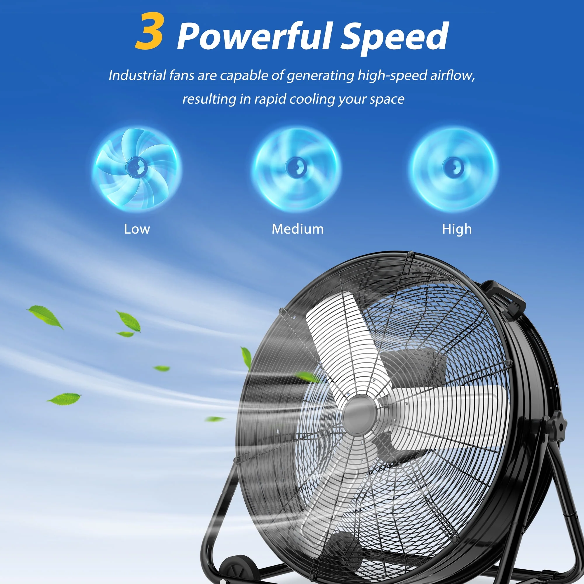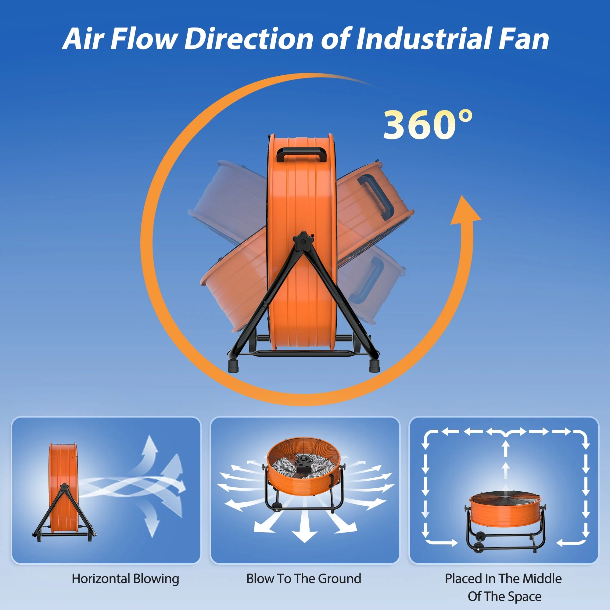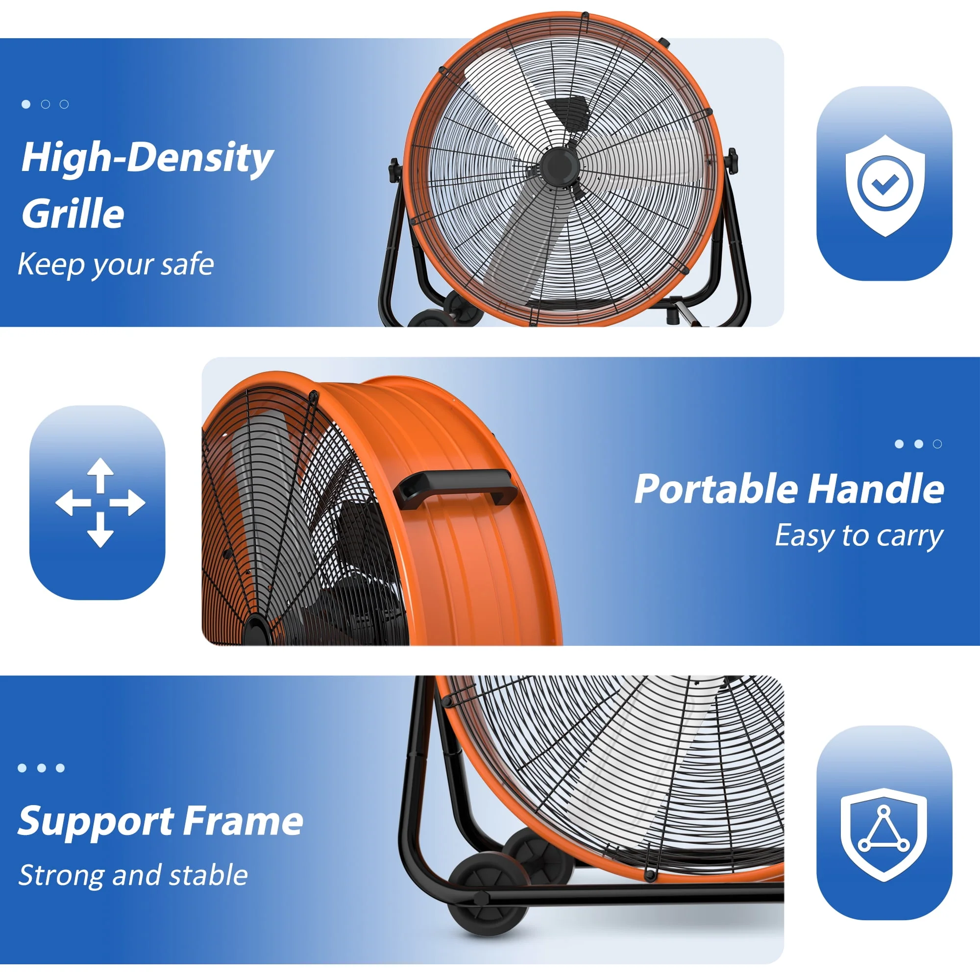 LifePlus Industrial Drum Fan, 5620cfm High Velocity Floor Fan 3 Speed Air Circulation, 24 Inch