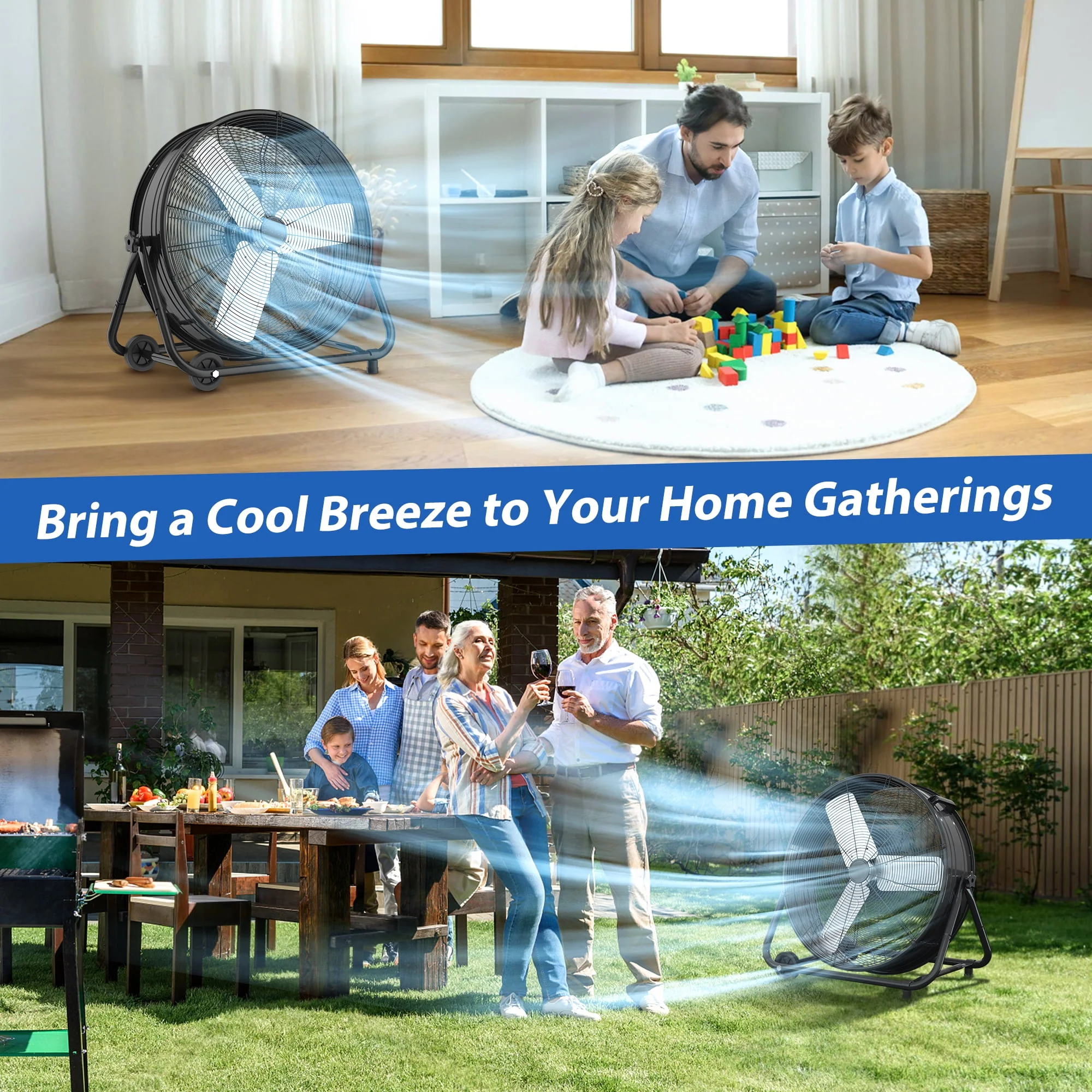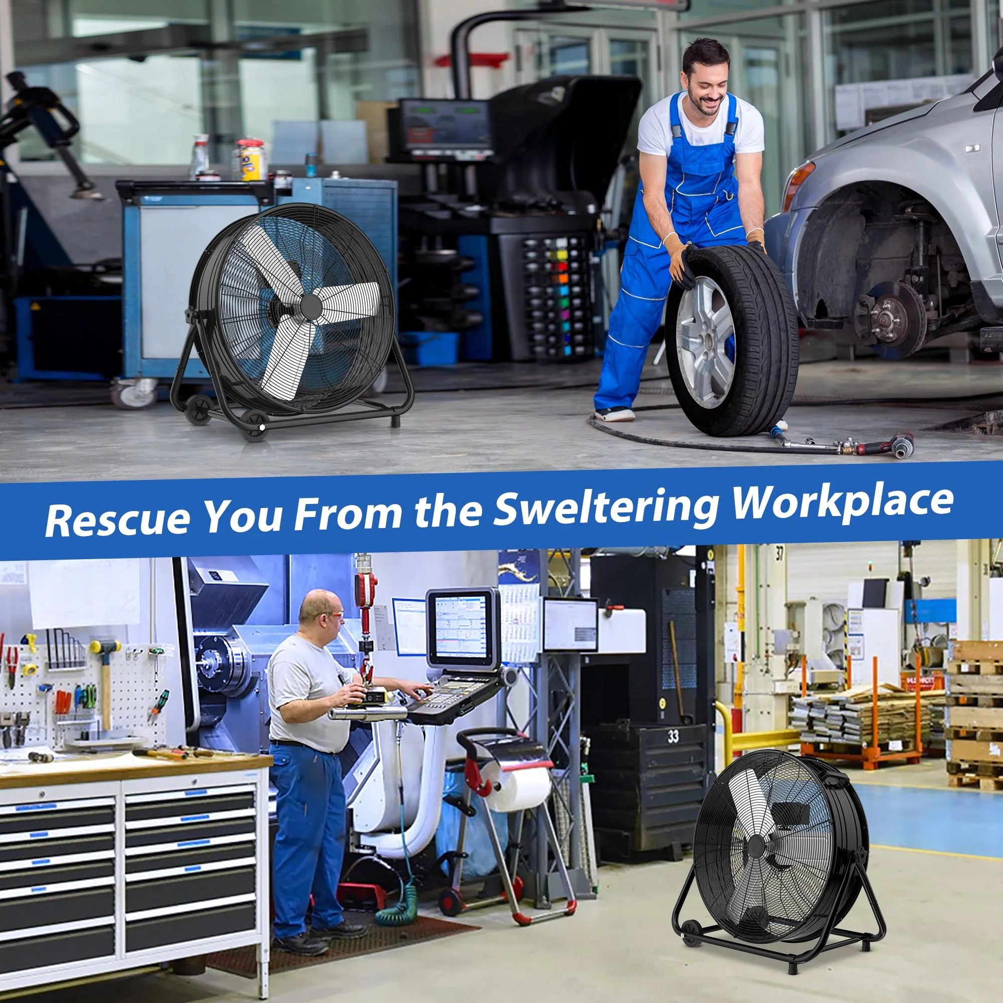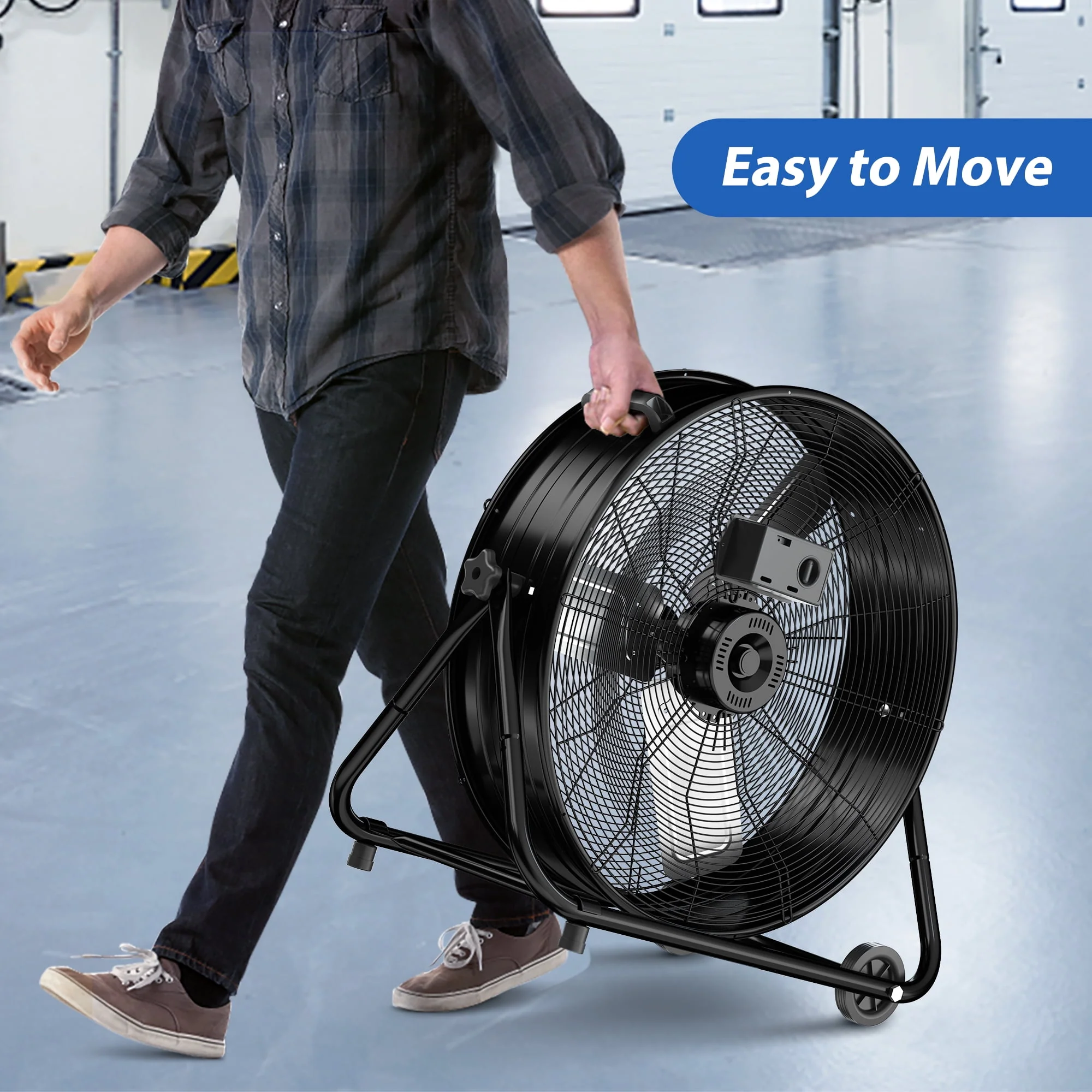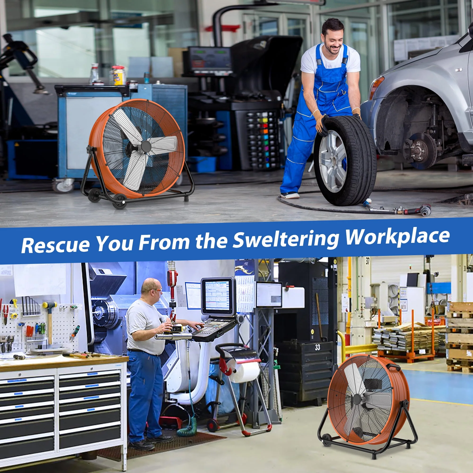 LifePlus Industrial Drum Fan, 5620cfm High Velocity Floor Fan 3 Speed Air Circulation, 24 Inch