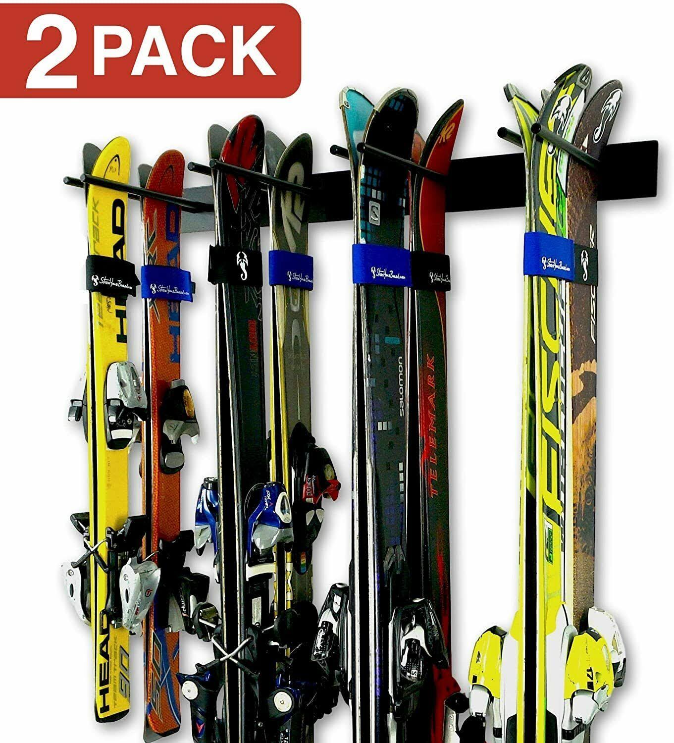 StoreYourBoard Ski Wall Storage Rack, 2 Pack Holds 16 Pairs, Steel Home and Garage Skis Mount - Megean