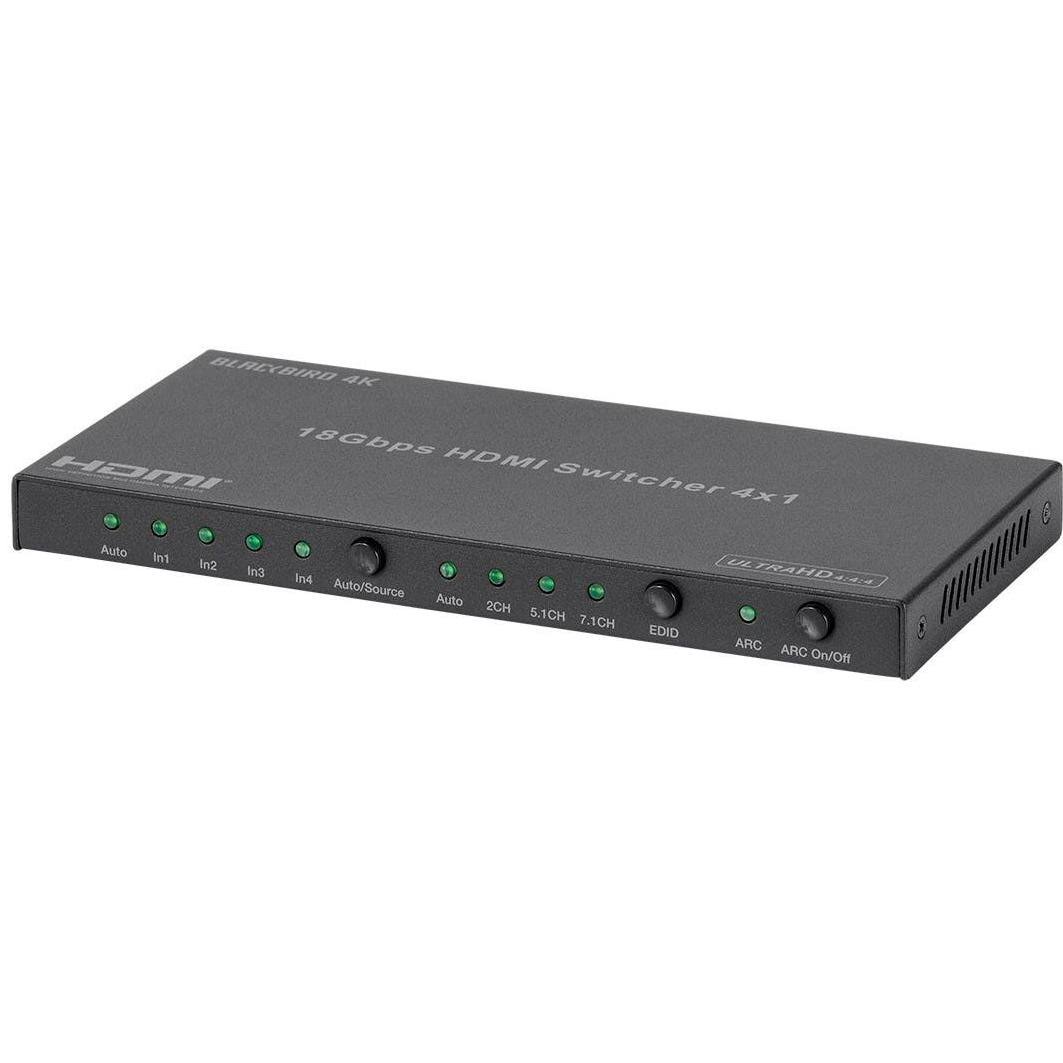 Monoprice Blackbird 4K HDMI Switch, 4X1, HDR, 18g, 4K@60Hz, 1080p@60Hz, YCbCr 4:4:4, HDCP 2.2, Toslink and Analog Audio Extractor - Megean