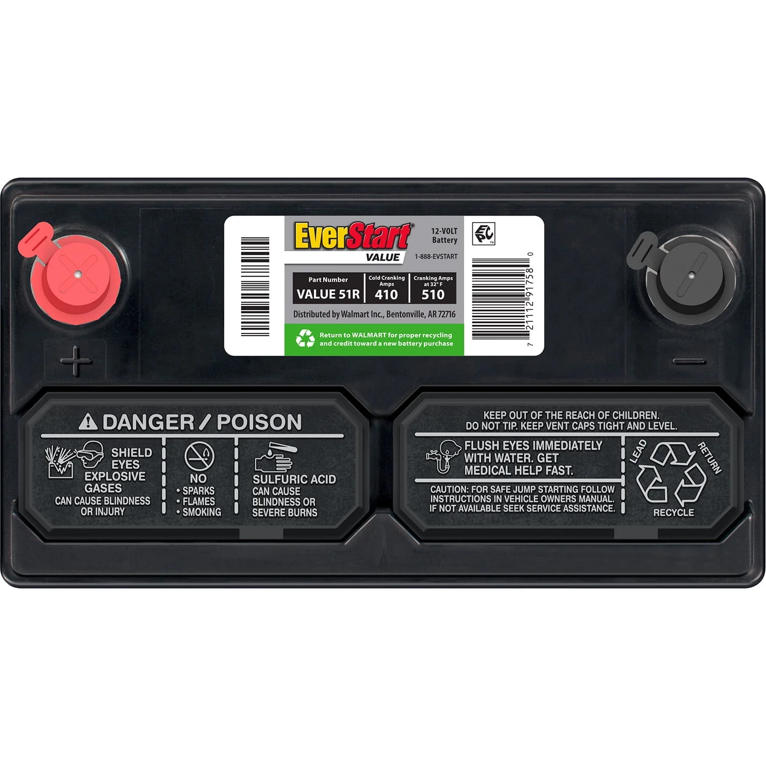 EverStart Value Lead Acid Automotive Battery, Group Size 51R 12 Volt, 410 CCA