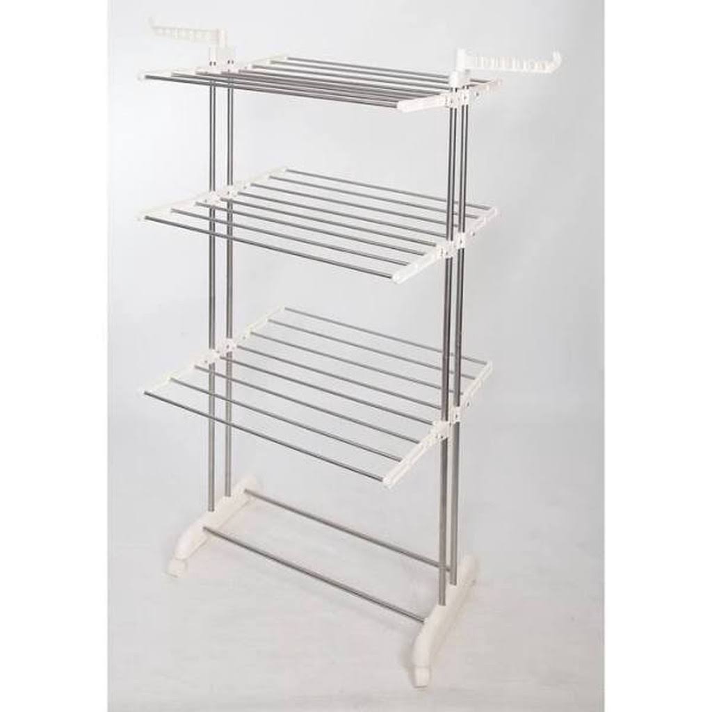 Idee Freestanding Collapsible Height-Adjustable-Rack Rolling 3-Tier Clothes (Laundry) Drying Rack with Durable Stainless-Steel Hanging Rods for - Megean