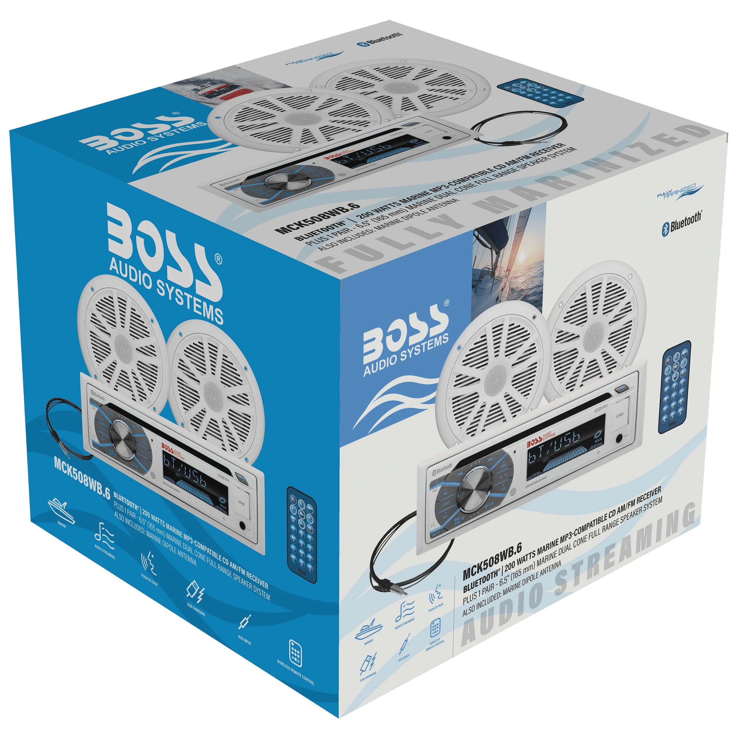 BOSS Audio MCK508WB.6 Marine Receiver and 1 Pair of 6.5 Inch Full Range Speakers