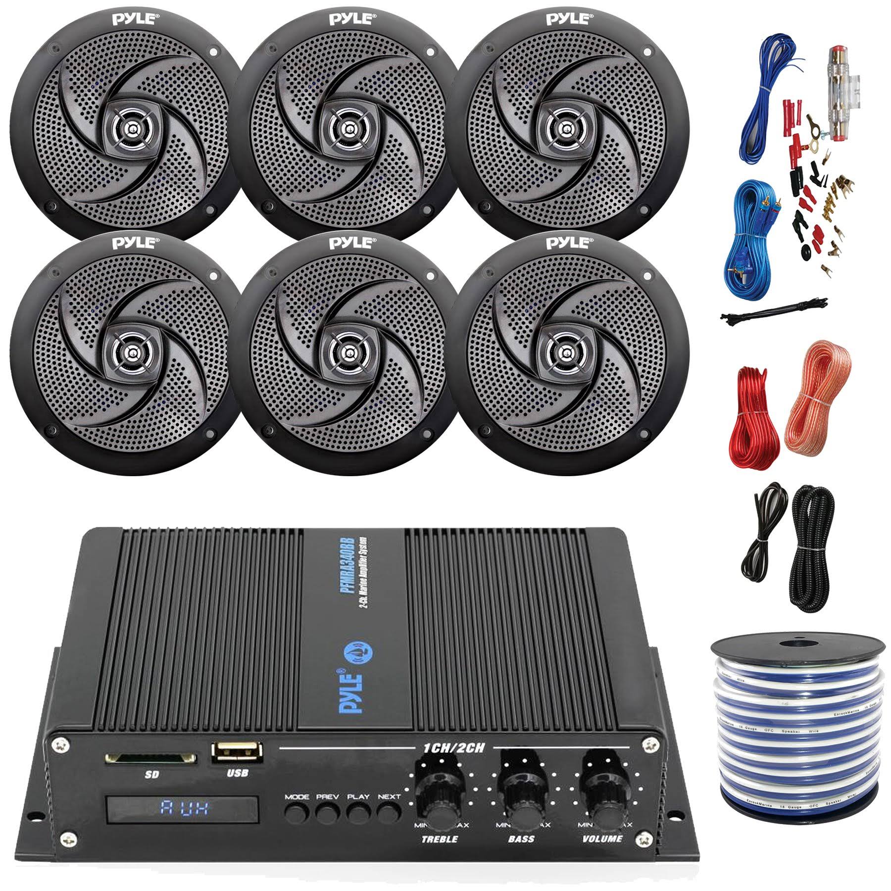 Pyle Marine Pfmra640bb 6-Channel Bluetooth Black Amplifier, 6x Pyle 6.5x22 Waterproof Weather Resistant Black Speakers, Amp Inst - Avayadevconnect