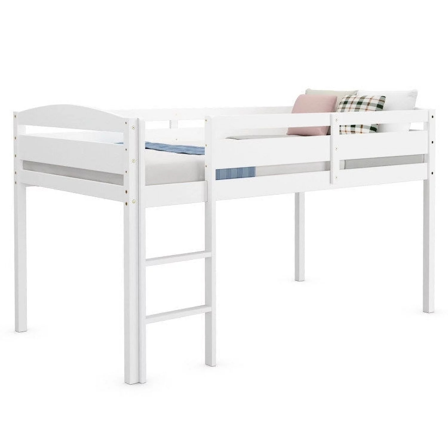 Wooden Twin Low Loft Bunk Bed with Guard Rail and Ladder