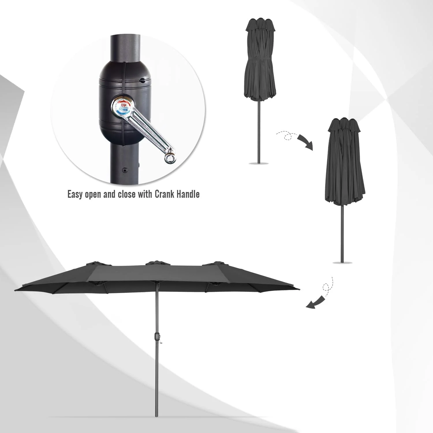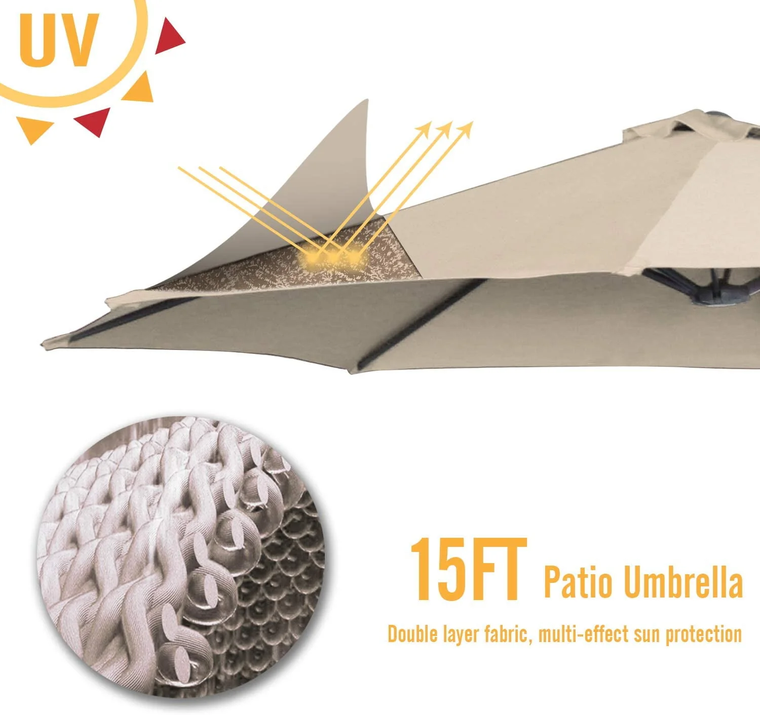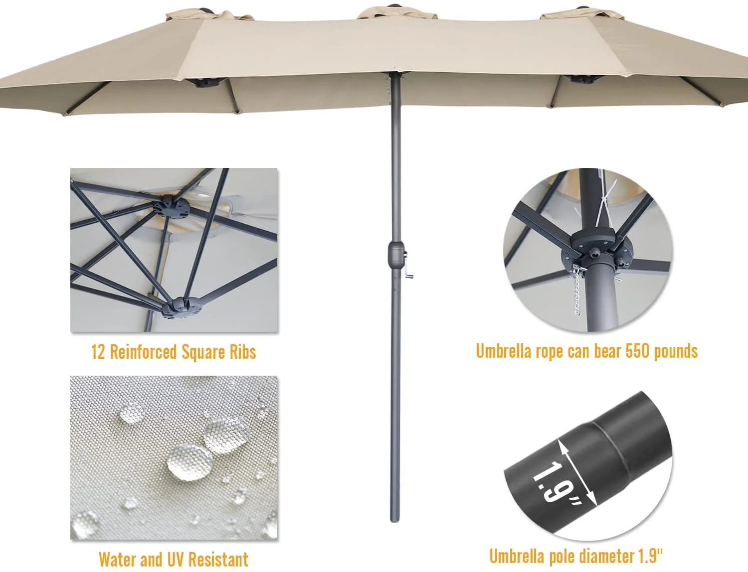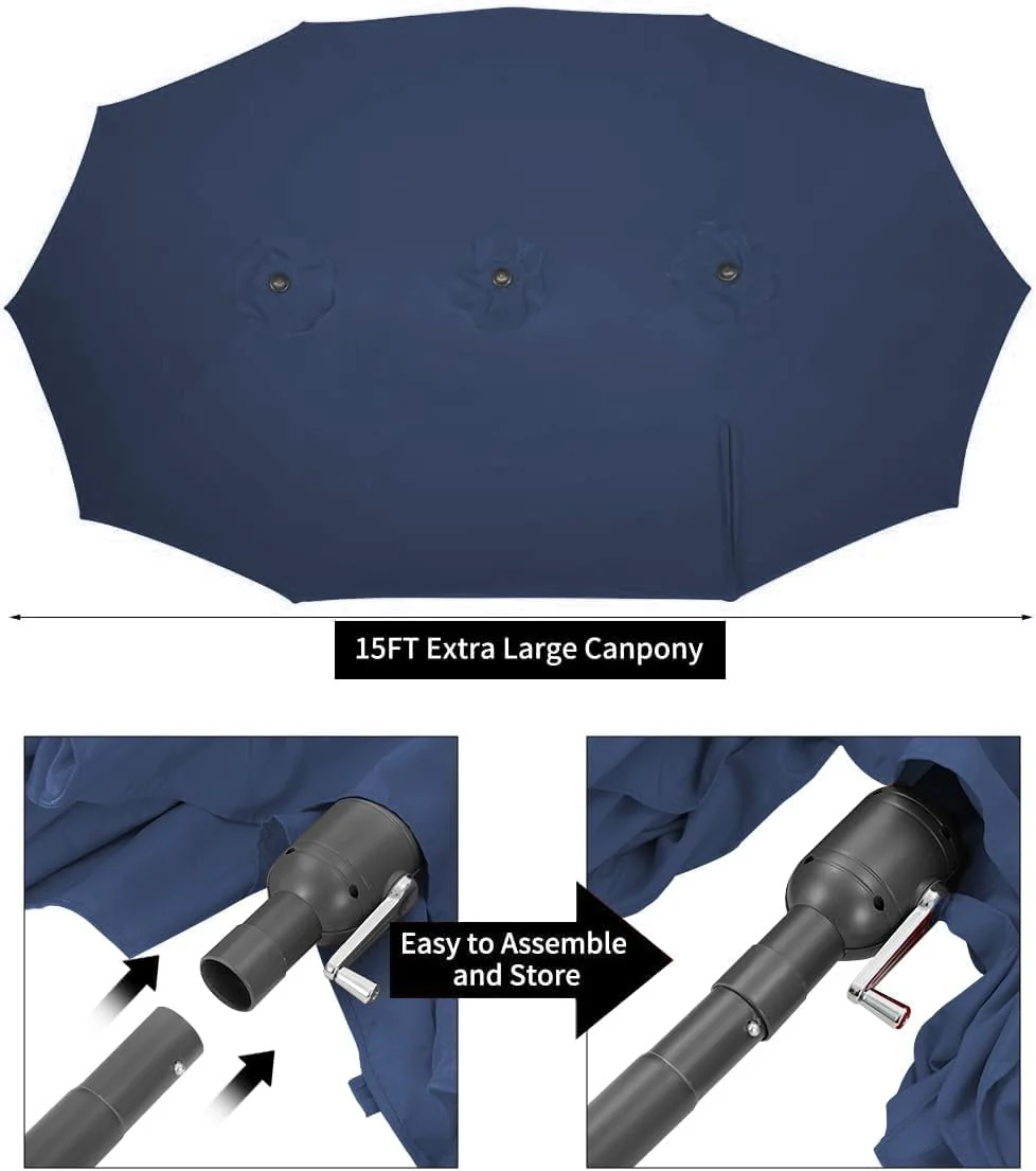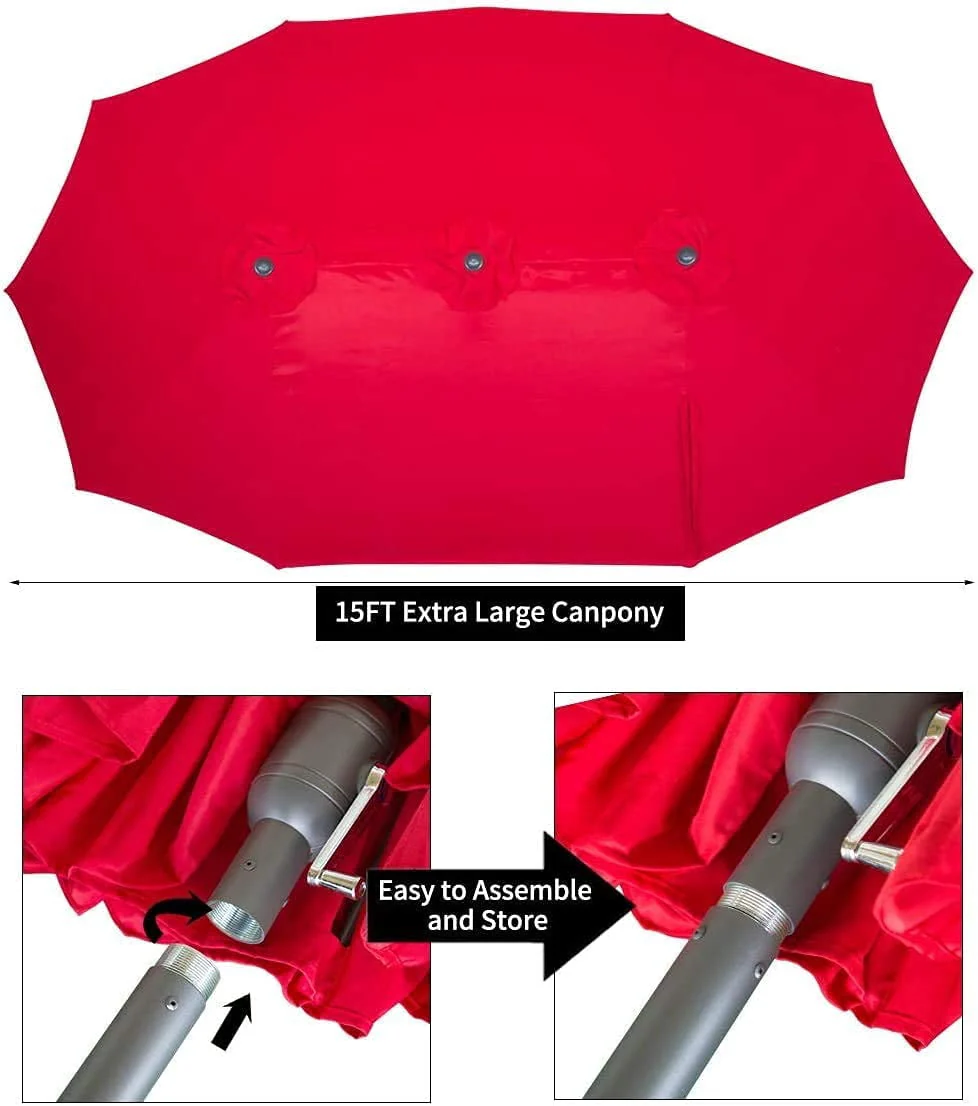 AECOJOY 15 Ft Patio Double Sided Umbrella Large Outdoor Umbrella - Beige