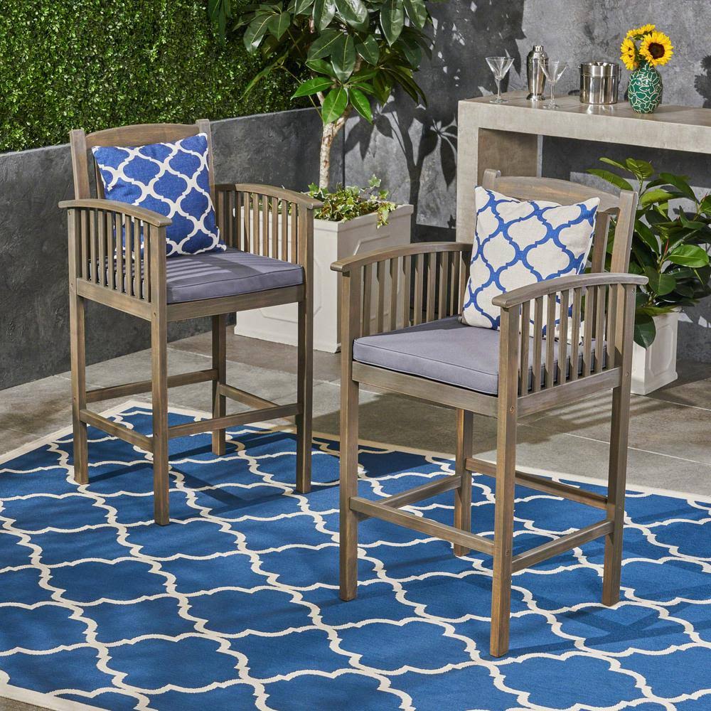 Noble House Casa Outdoor Acacia Barstools Gray and Dark (Set of 2) - Megean