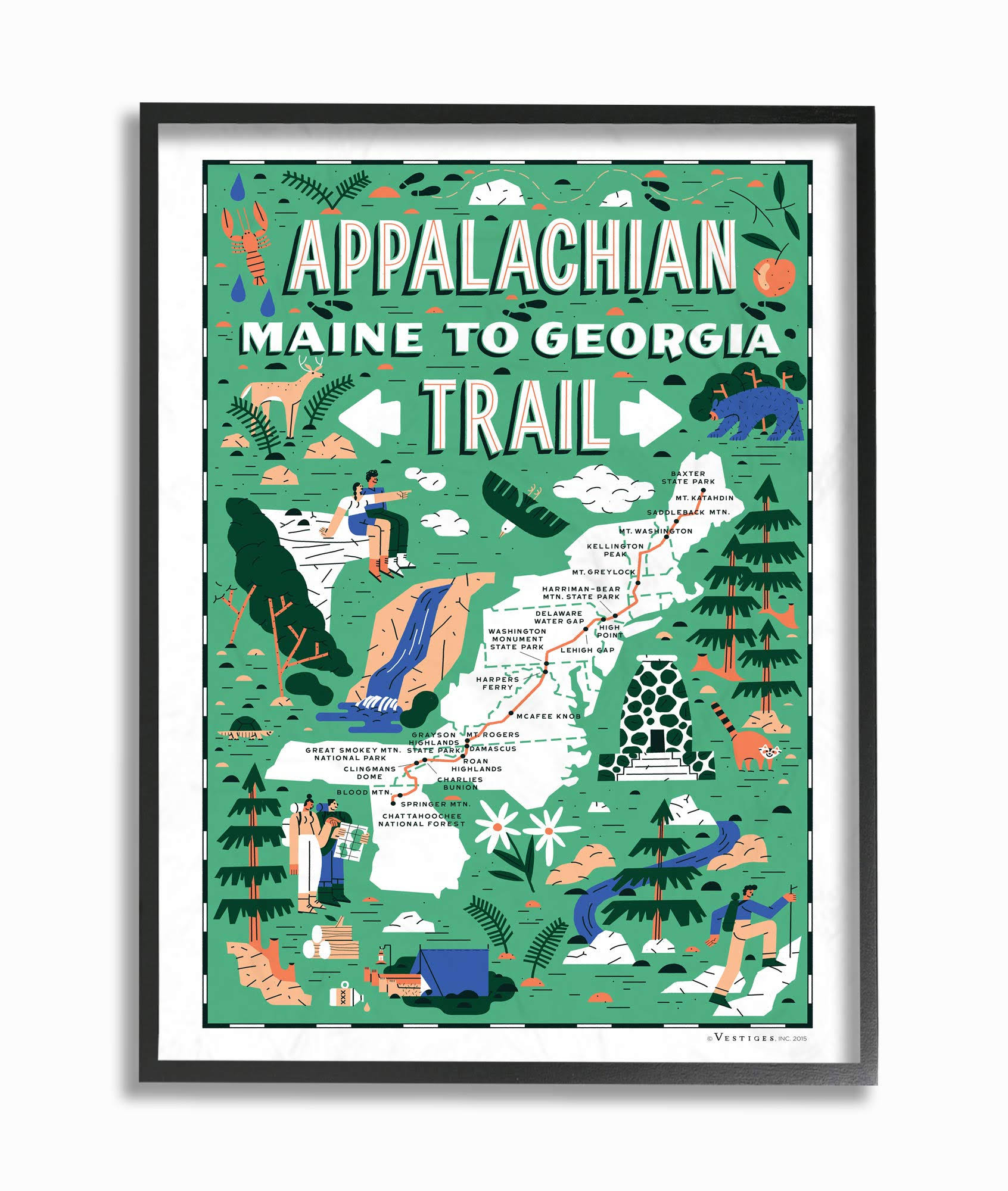The Stupell Home Decor Collection Appalachian Trail Maine to Georgia Green Illustrated Scenic Map Poster Framed Giclee Texturized Art, Size: 24 inch x - Megean