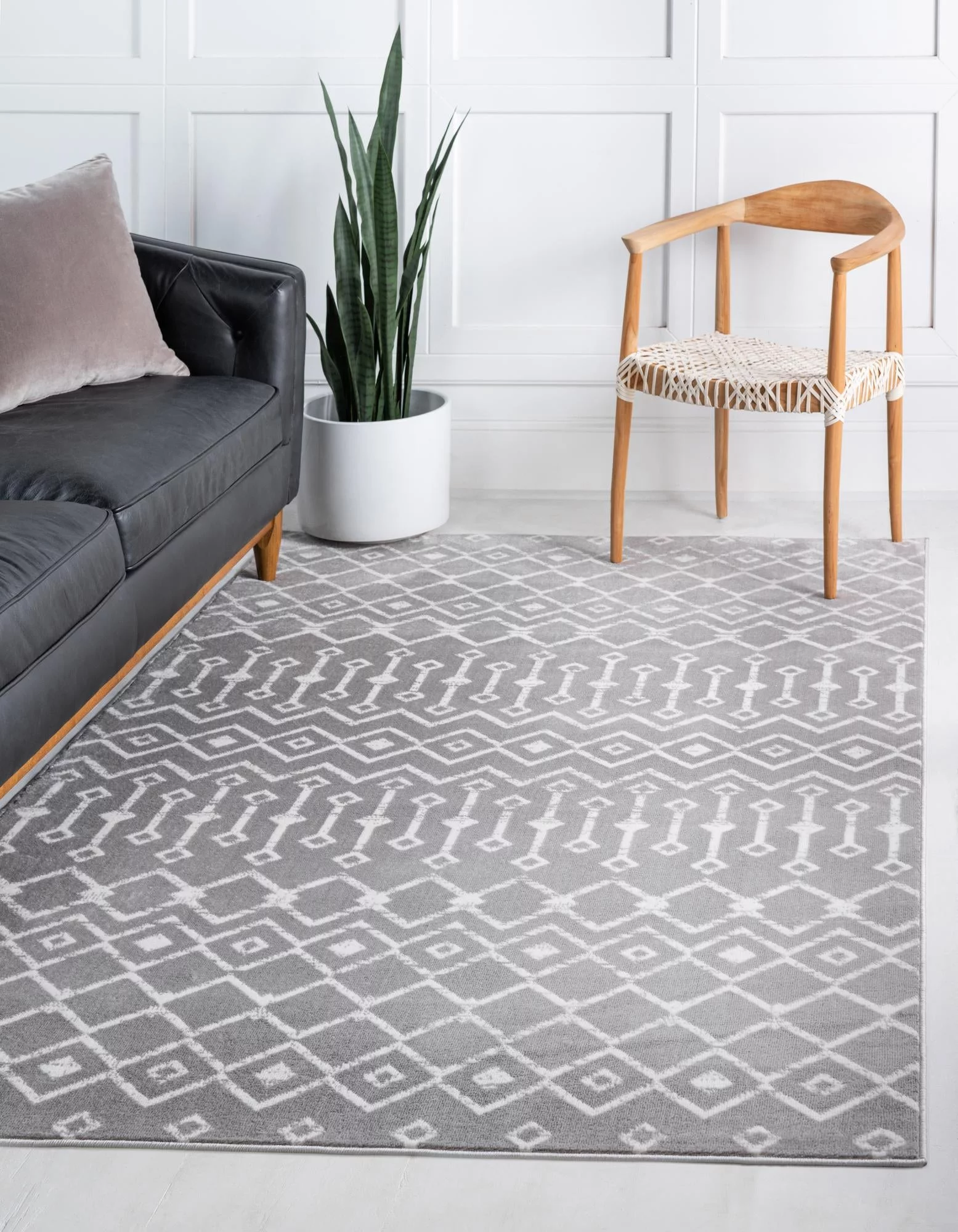 Unique Loom Mamounia Moroccan Trellis Rug Light Gray/Ivory 10' 8 x 16' 5 Rectangle Geometric Tribal Perfect For Living Room Bed Room Dining Room Office