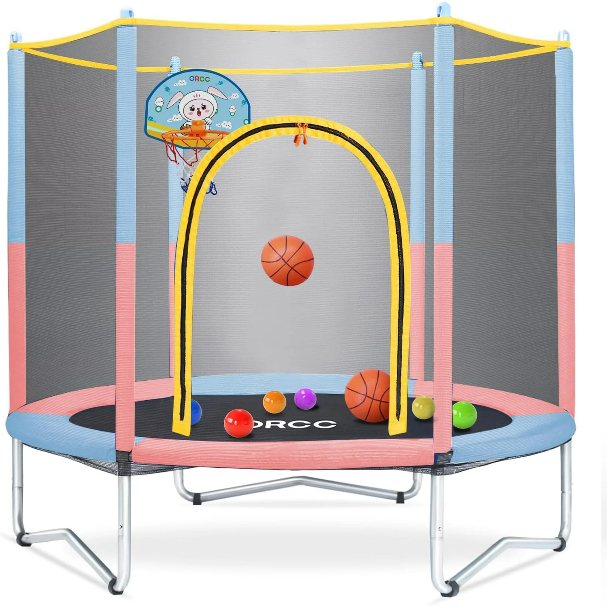 ORCC Kids Trampoline for Indoor and Outdoor,55/60 Toddler Trampoline with Safety Enclosure and Heavy-duty Steel Frame,Supports up to 220 Pounds