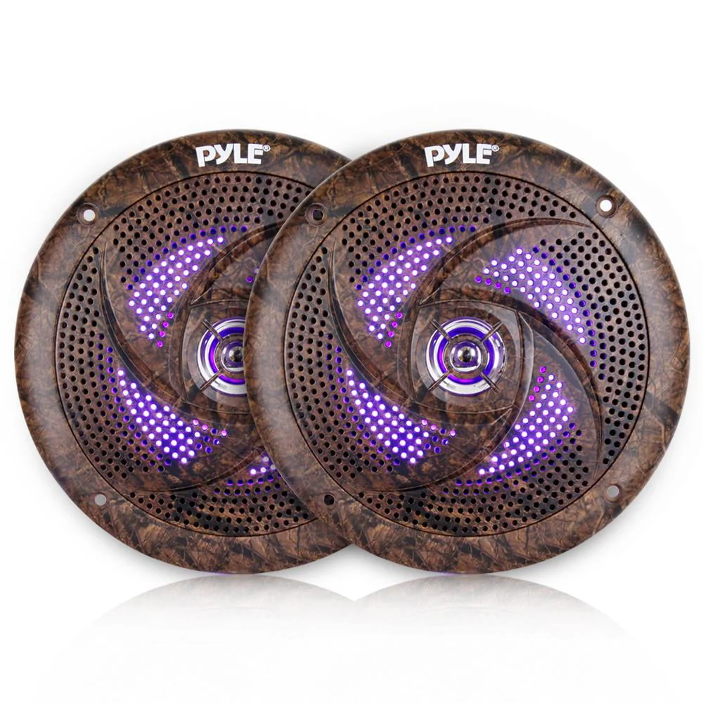 Pyle PLMRB39W Single DIN AM/FM Radio USB/AUX Bluetooth Marine Stereo White Receiver with 2 Pairs of 6.5'' 240W Camouflage Waterproof Marine LED Speakers, Rubber Mast Antenna, 18 Gauge Speaker Wire