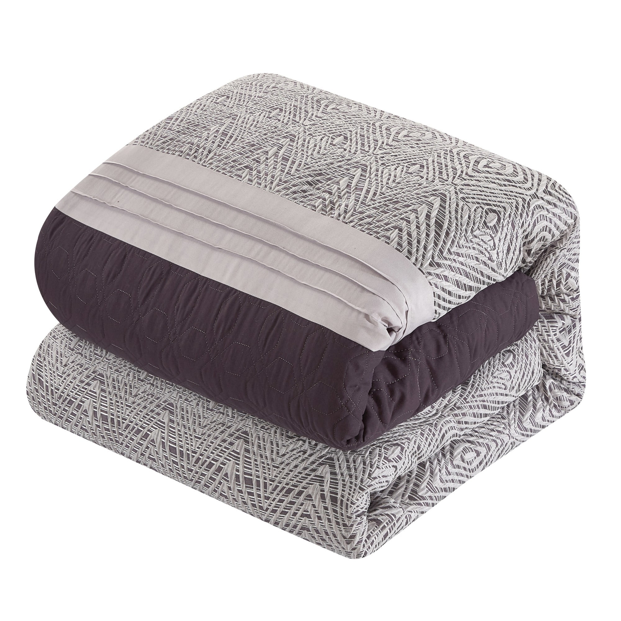 Chic Home Imani Comforter Set Jacquard Geometric Diamond Pattern Color Block Design Bed In A Bag - Sheet Set Decorative Pillows Shams Included - 10-Piece - Queen 90x92", Plum - Curated Treasures Market