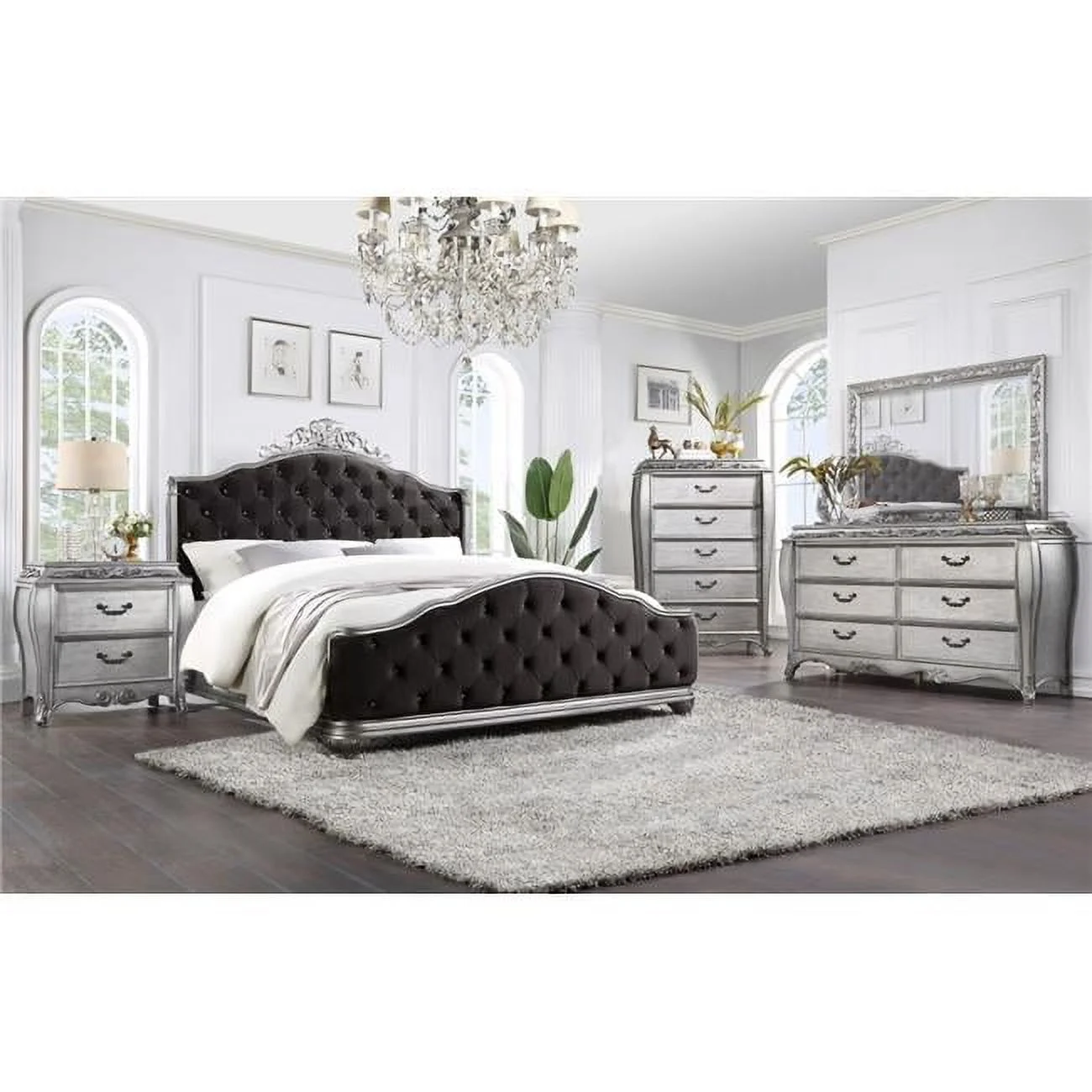 Acme Furniture 22140Q 69 x 67 x 90 in. Leonora Queen Size Bed. Fabric & Vintage Platinum