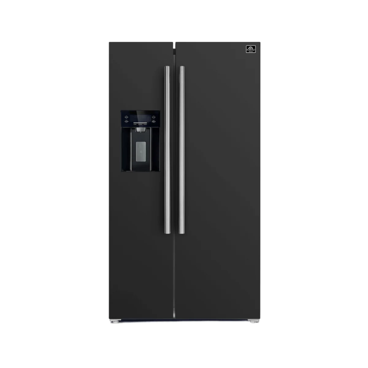 Forno Espresso 36 20 Cu. Ft. Side-By-Side Refrigerator with Water and Ice Dispenser in Black with Silver Handles