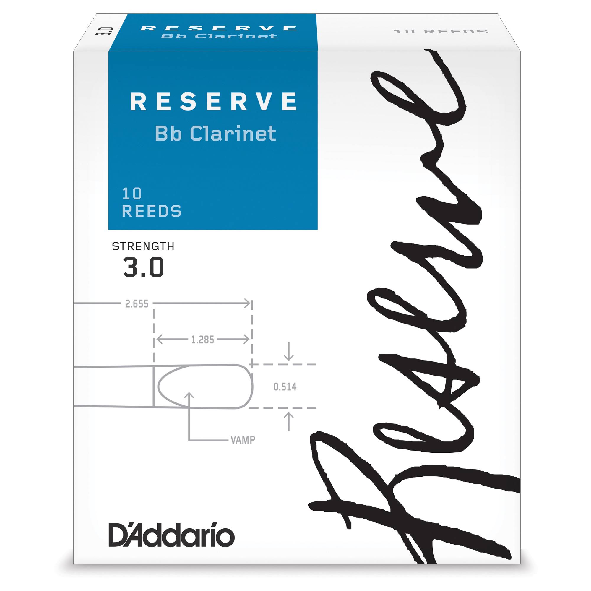 D'Addario DCR1030 Strength 3.0 Reserve Bb Clarinet Reeds (Pack of 10) - Megean