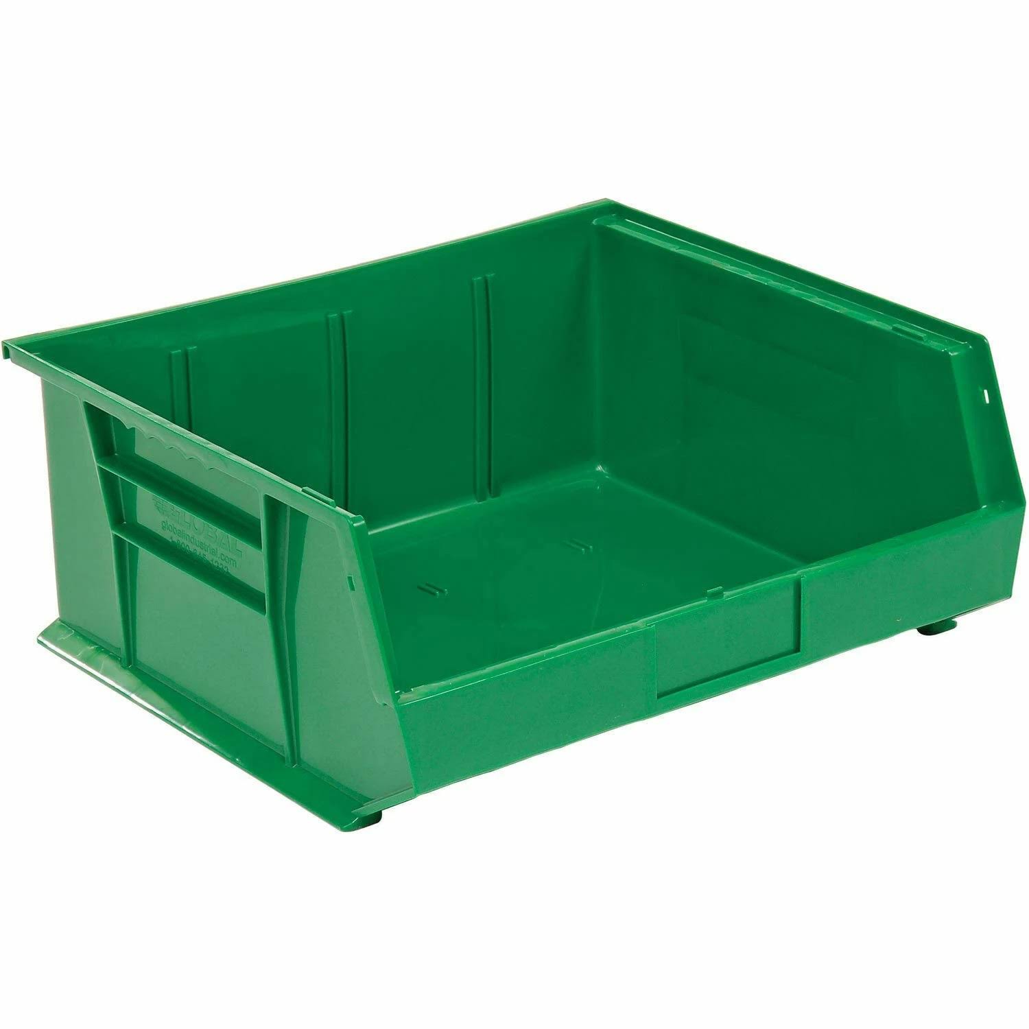 Green Plastic Stacking Bin 16-1/2 x 14-3/4 x 7, Lot of 6 - Megean
