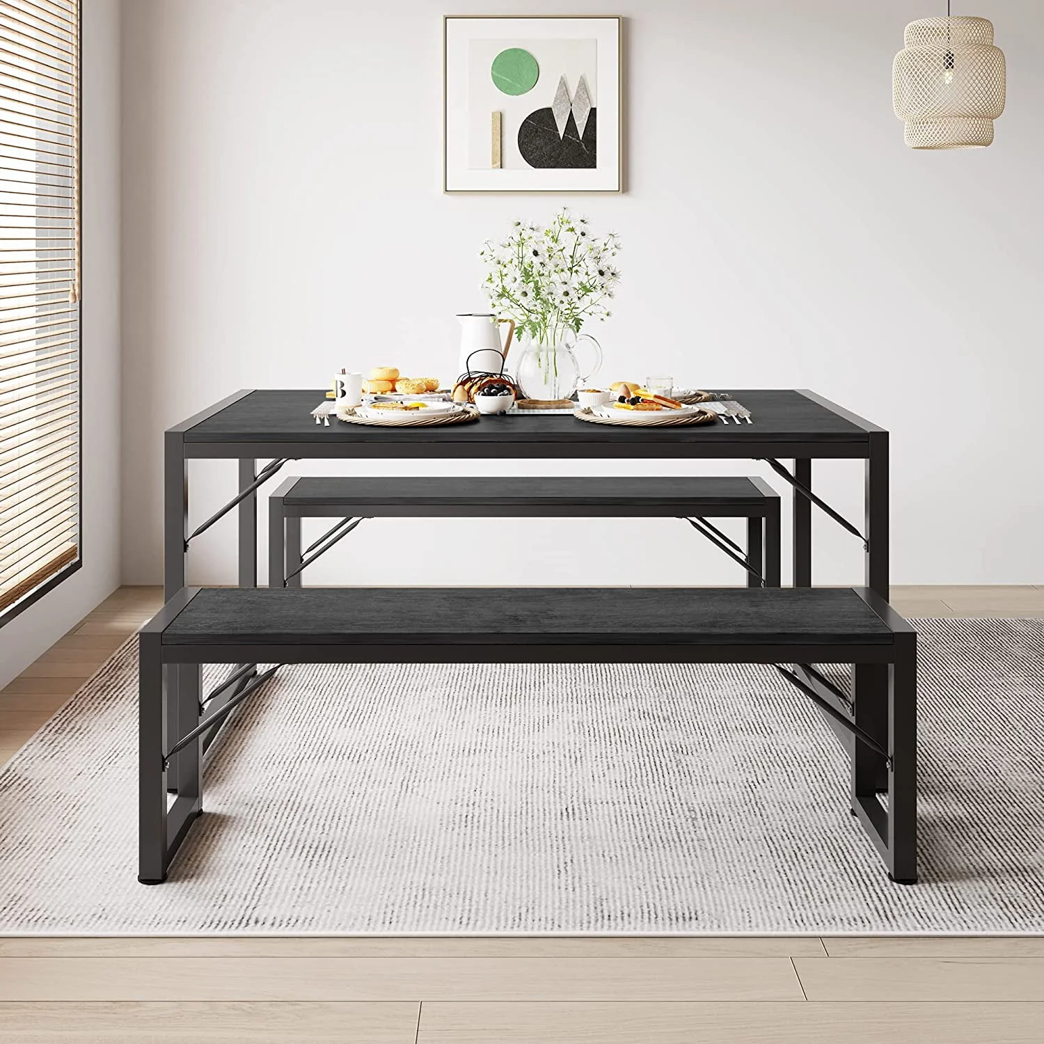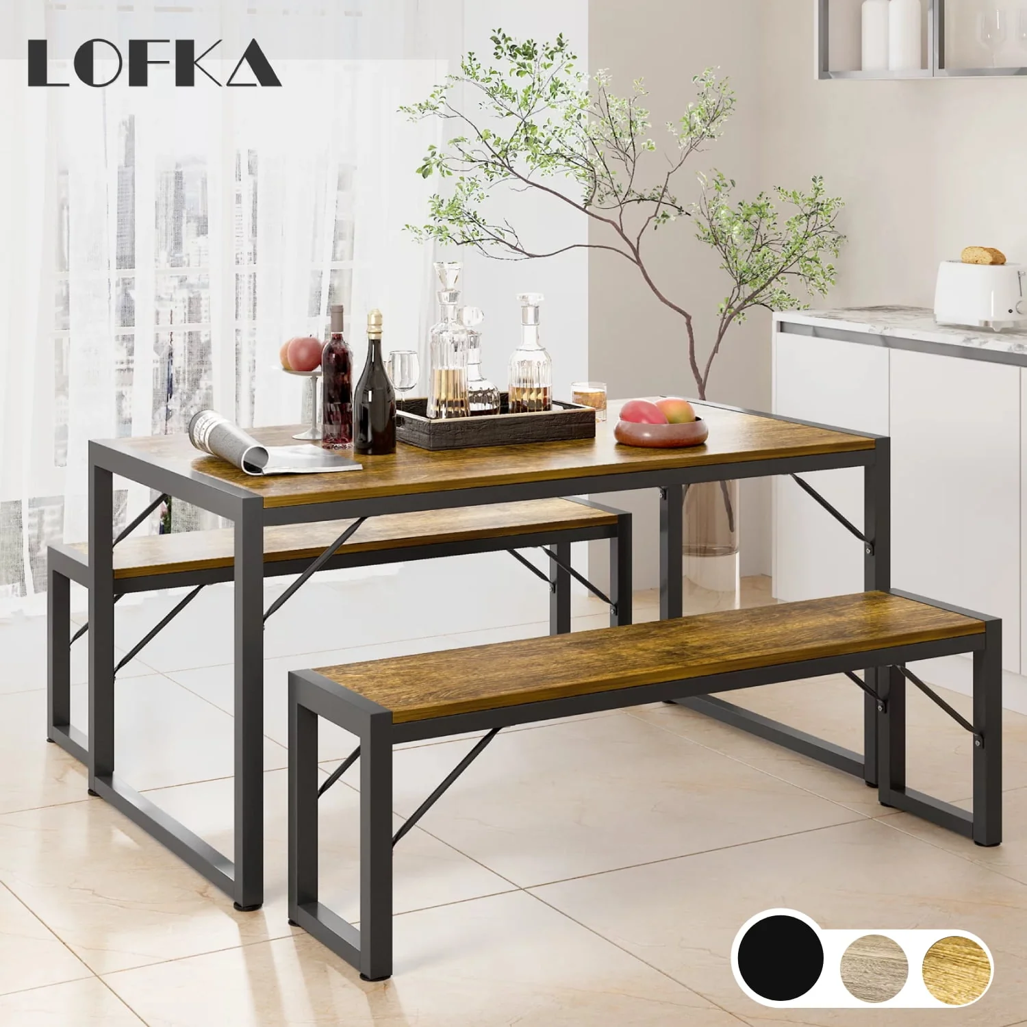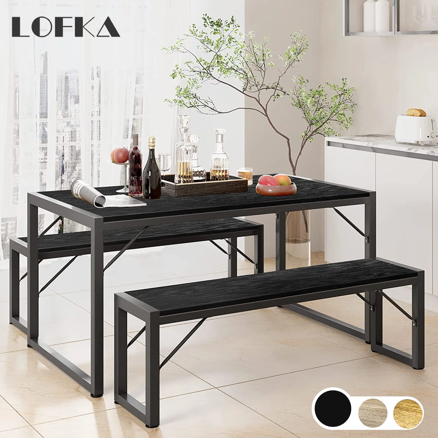 Lofka Kitchen Table and Chairs for 4 with 45.5 Modern Dining Table Set for 4, Dinette Set Black