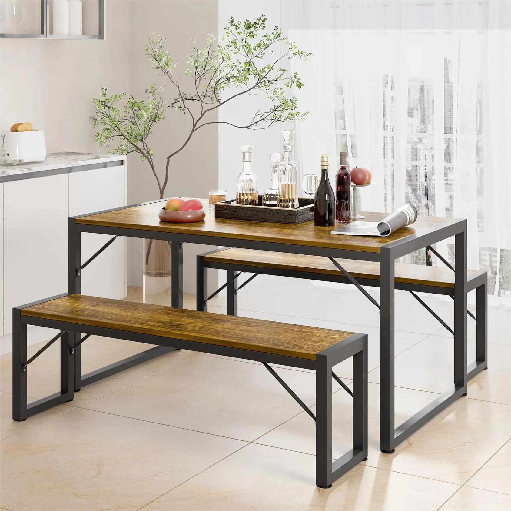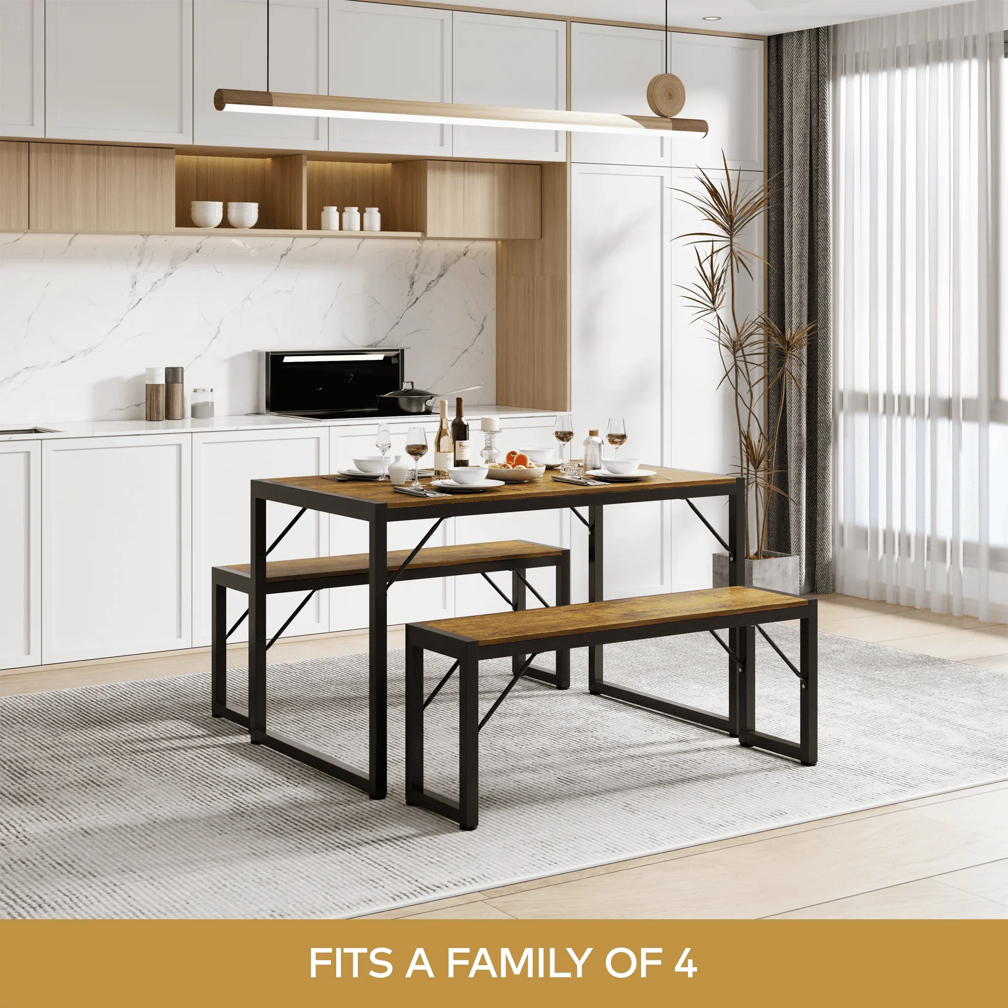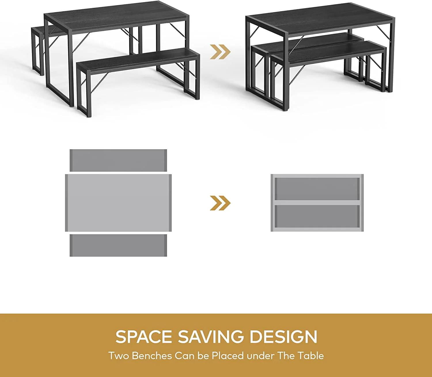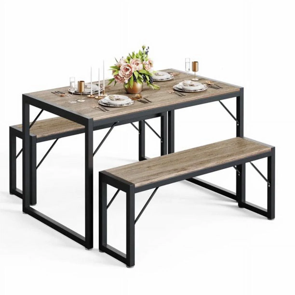 Lofka Kitchen Table and Chairs for 4 with 45.5 Modern Dining Table Set for 4, Dinette Set Black