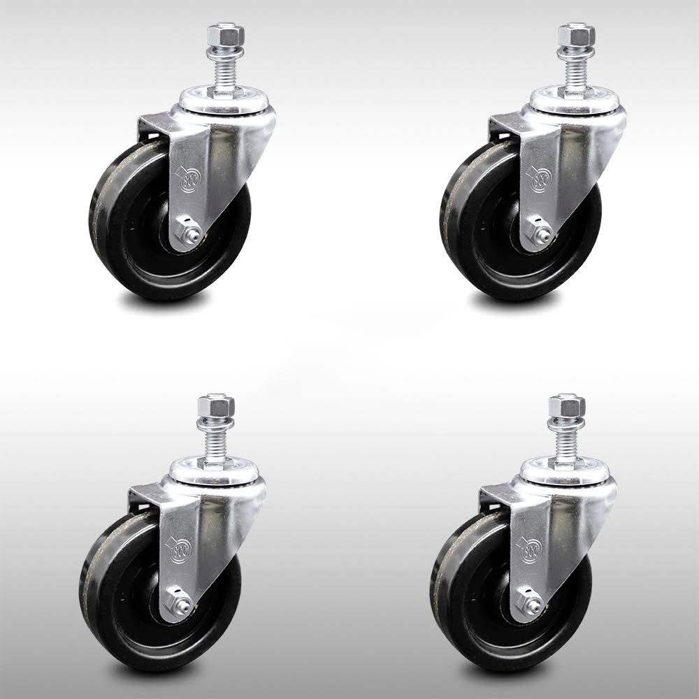 Stainless Steel Phenolic Swivel Threaded Stem Caster Set of 4 w/4 inch x 1.25 inch Black Wheels and 1/2 inch Stems - Includes 4 - Avayadevconnect