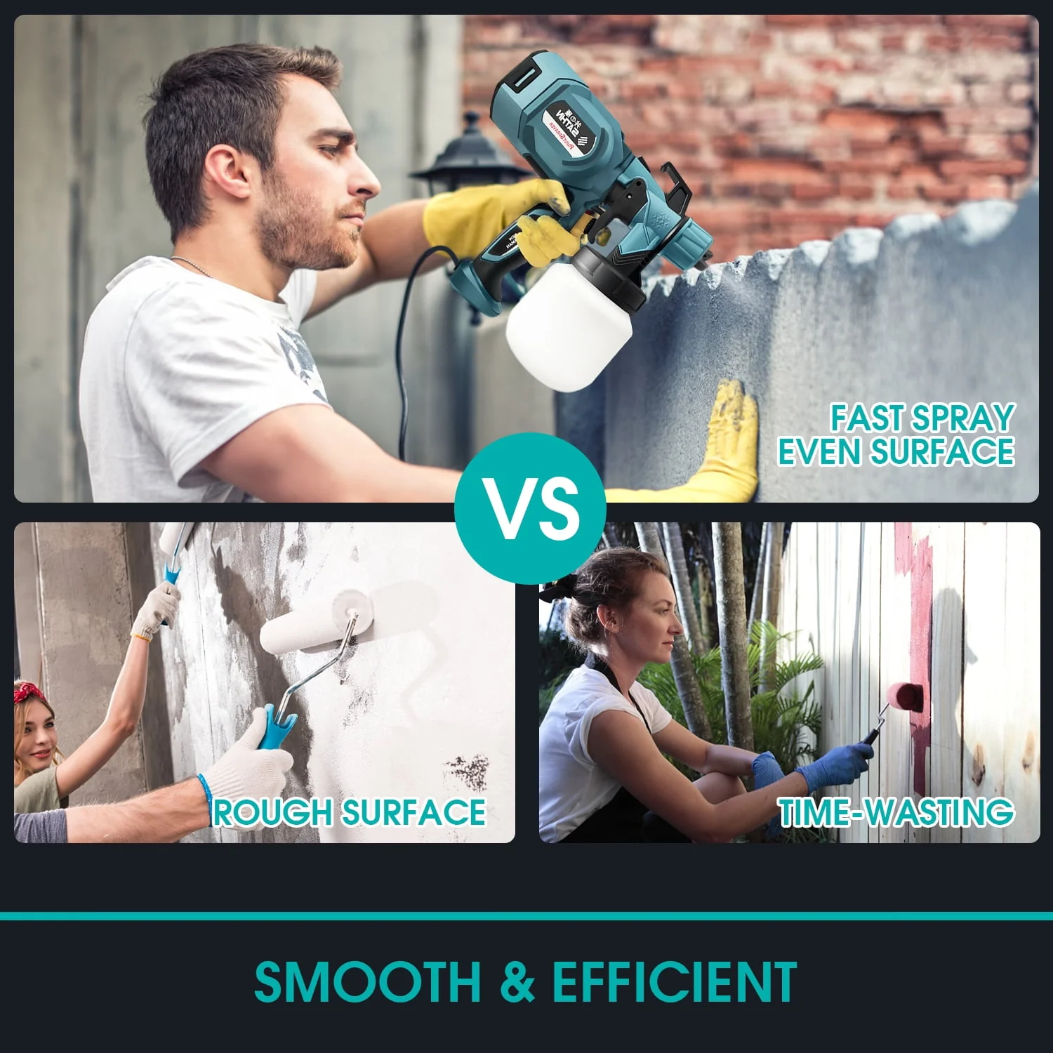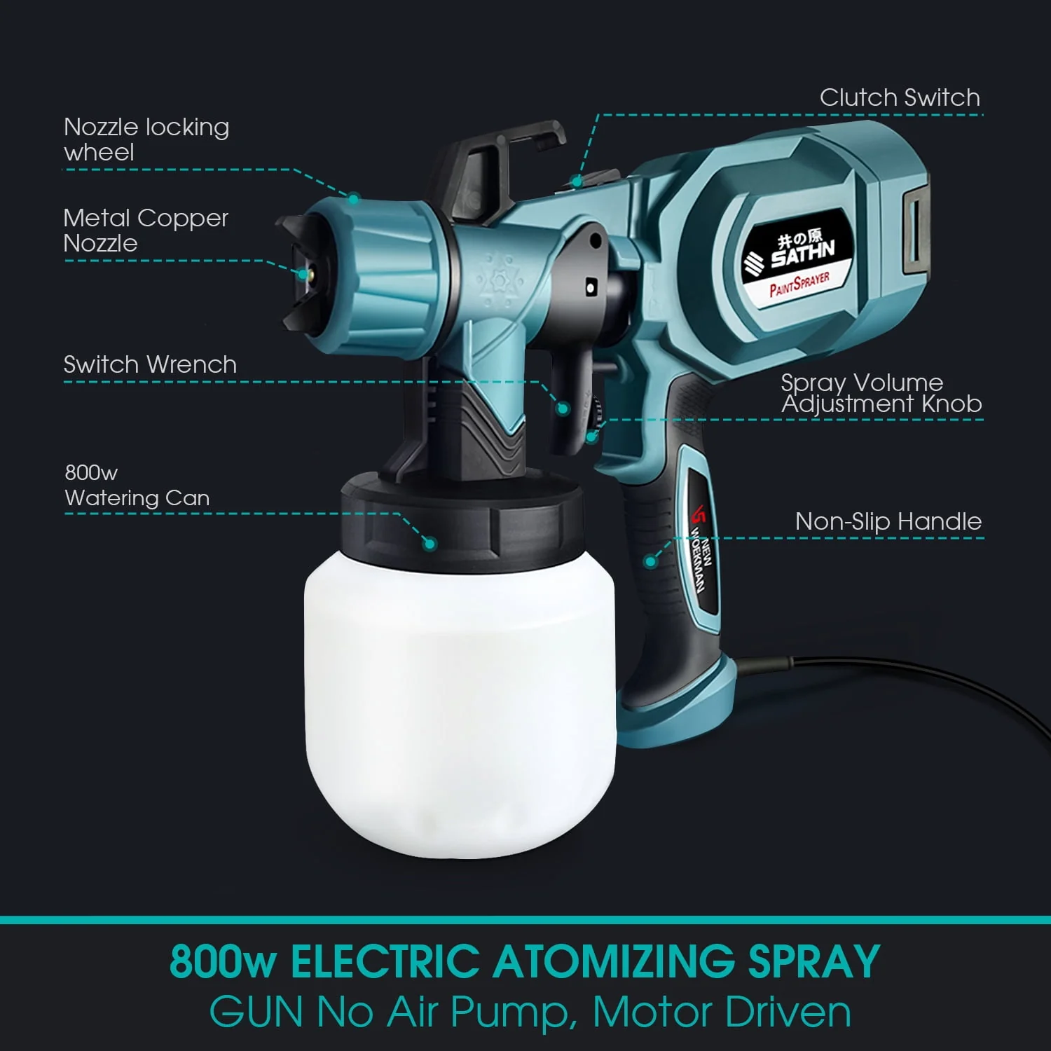 eTopeak Paint Sprayer, 800W Electric HVLP Spray Gun, Airless Paint Gun with 800ml Container for Home and Outdoors, Painting Projects