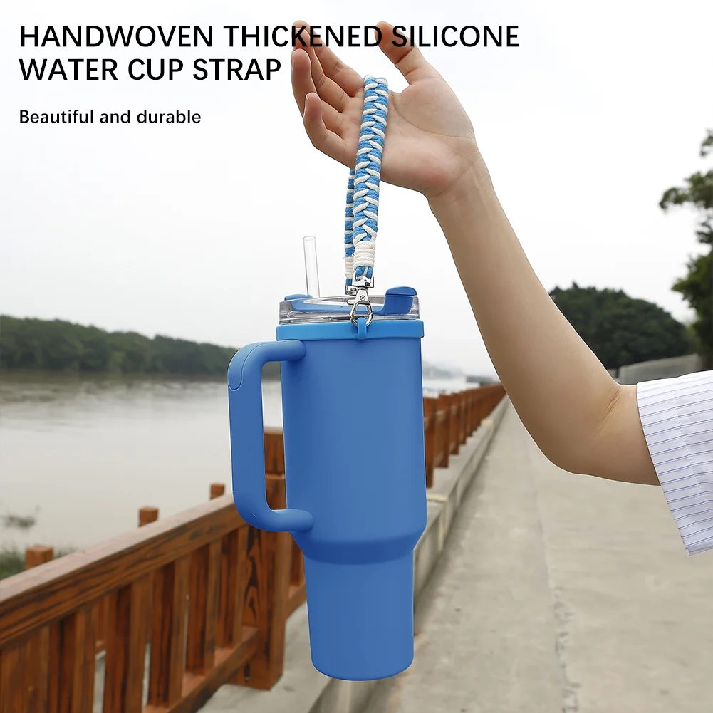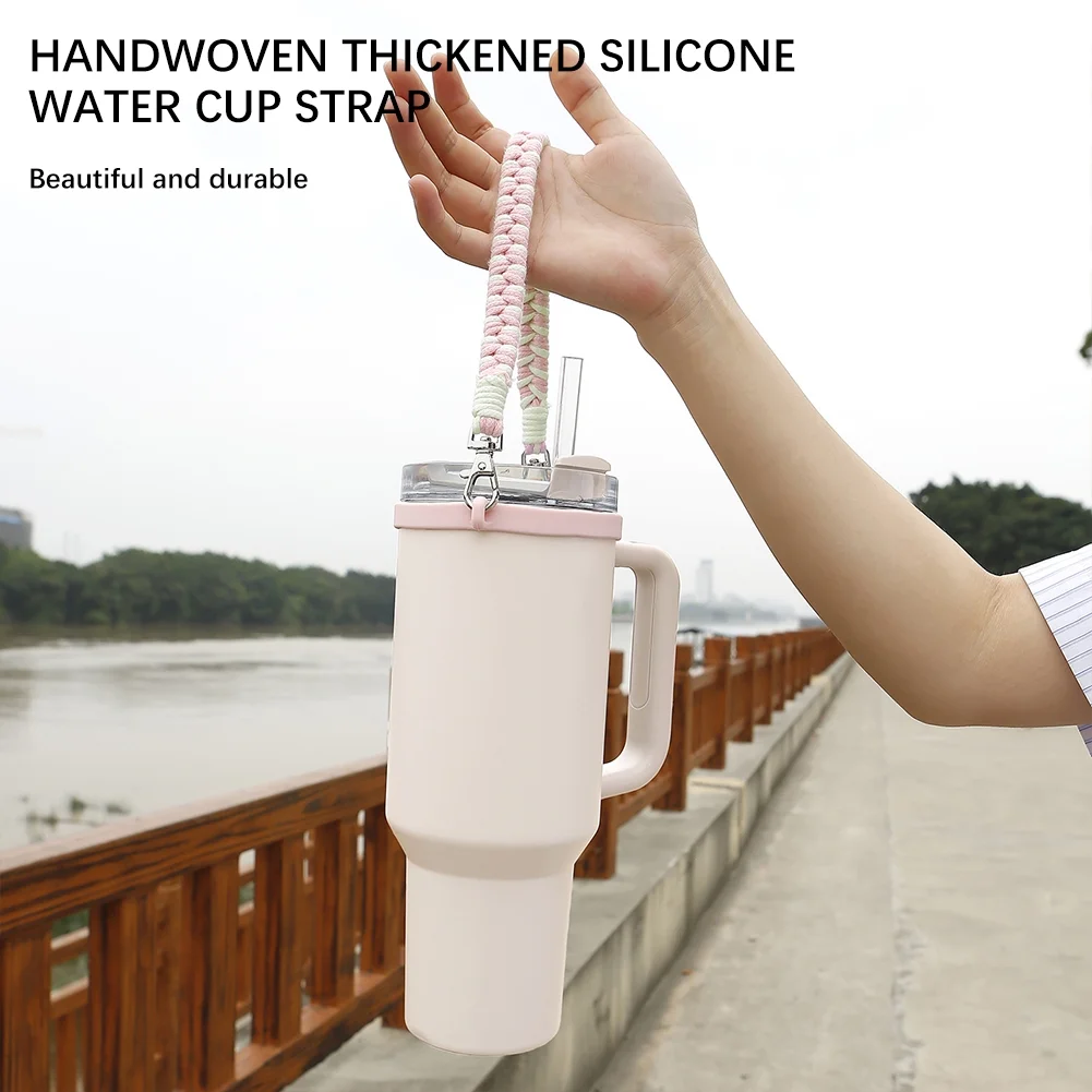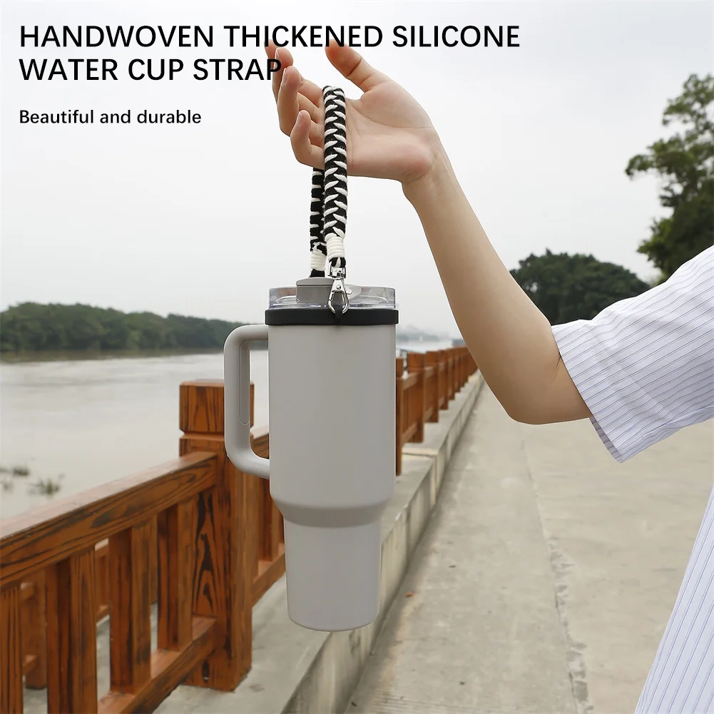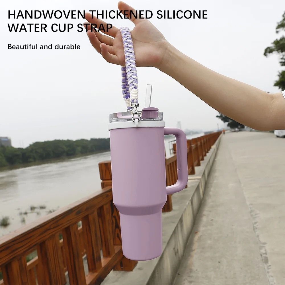 Water Bottle Handle Strap for Stanleys 16-40OZ Tumbler, Cotton Paracord Handle for Water Bottle,Thickened Silicone Ring Water Bottle Strap Compatible with Stanleys Cups - Curated Treasures Market