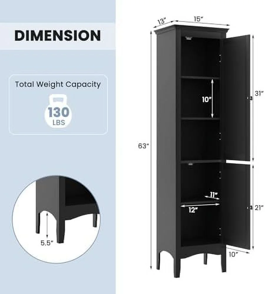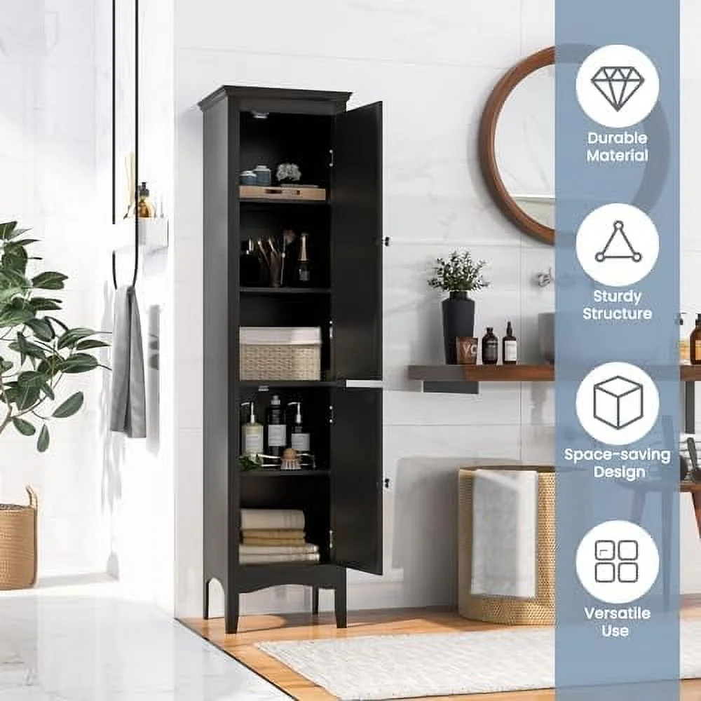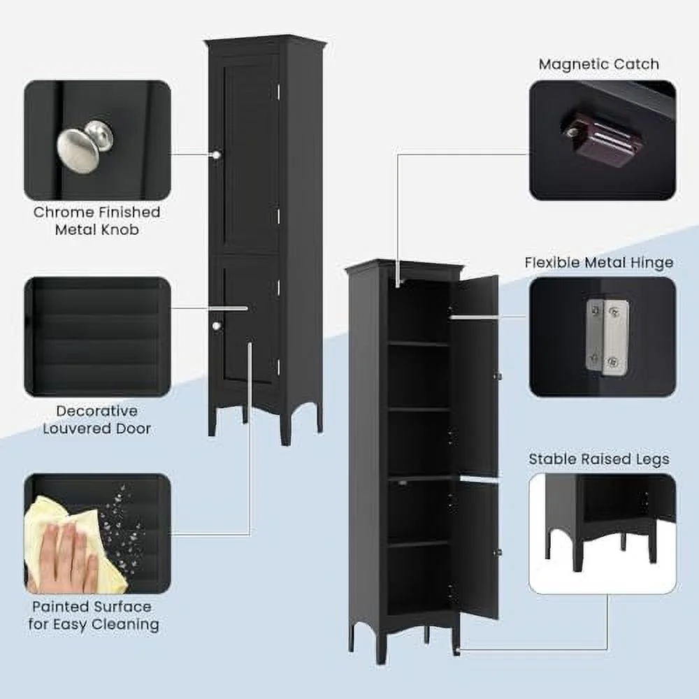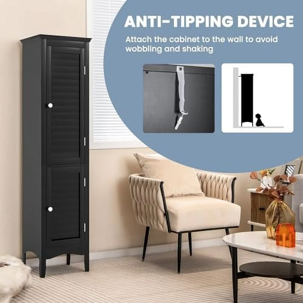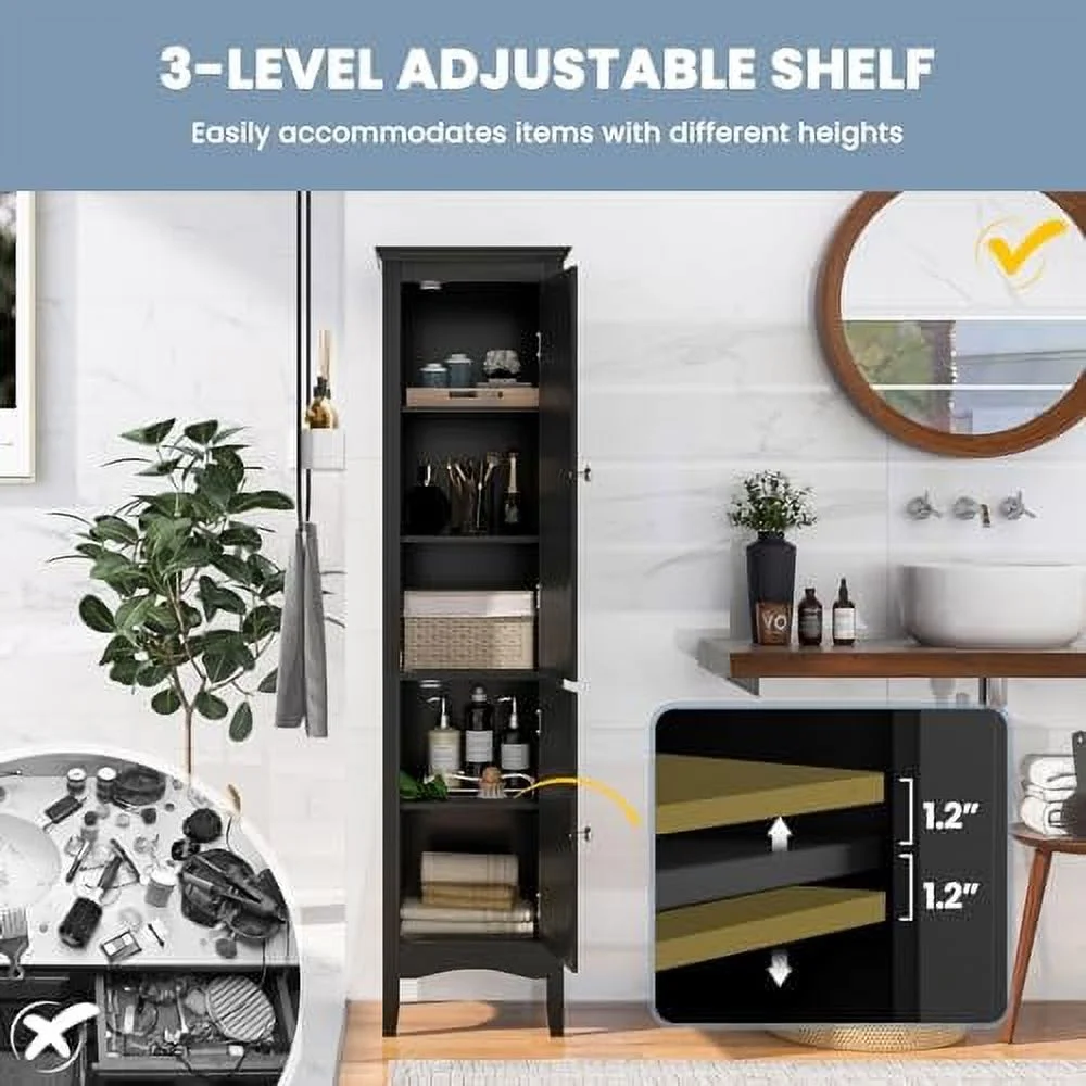 SQFHV Bathroom Cabinet Narrow Tall Bathroom Cabinet with 3-Position Adjustable 2 Doors Anti-Tipping Device Floor Freestanding Cabinet for Bathroom Living Room (Brown) - Curated Treasures Market