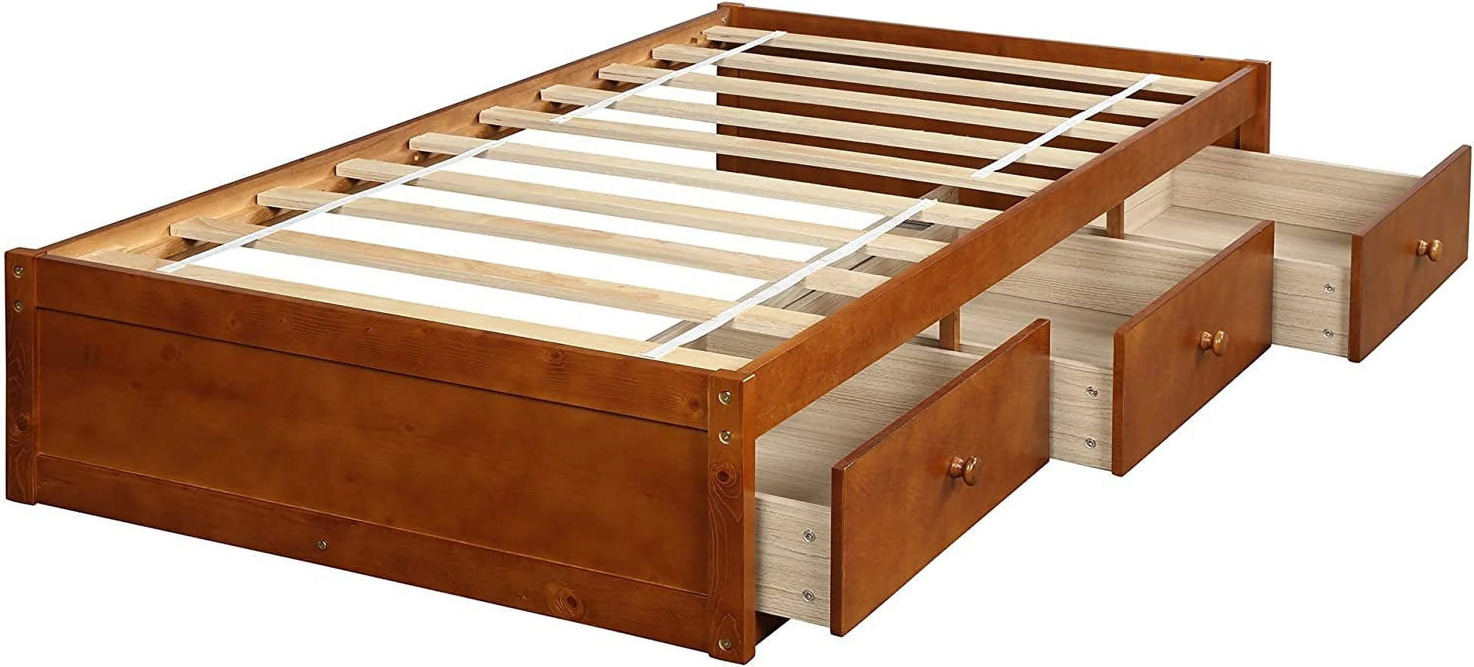 Storage Bed Wood Bed Frame With Wood Slat Support Without Headboard