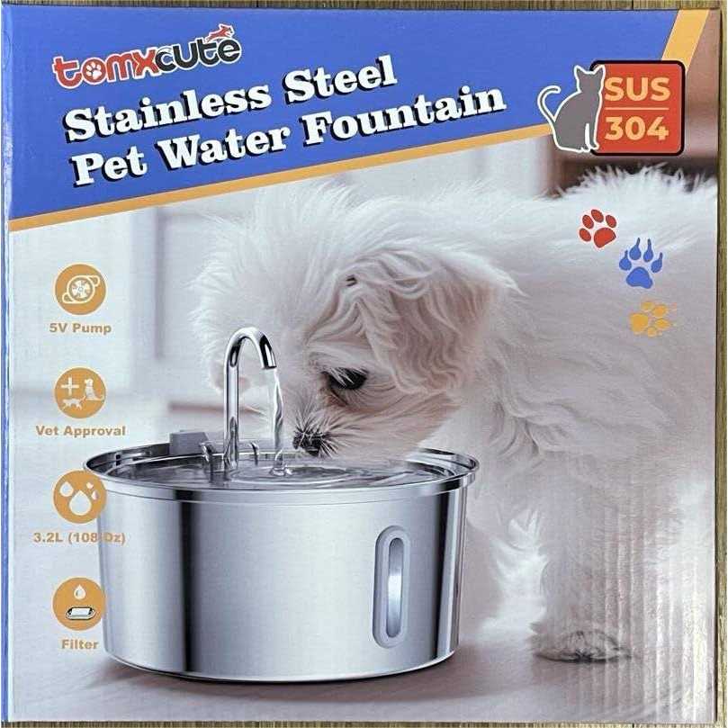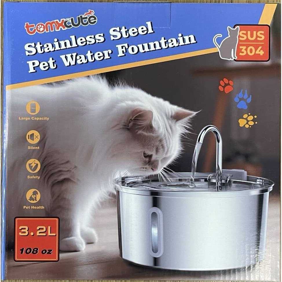 Tomxcute 3.2L Stainless Steel Cat Water Fountain for Drinking Tap Cat Fountain for Cats Terriers small-sized dogs