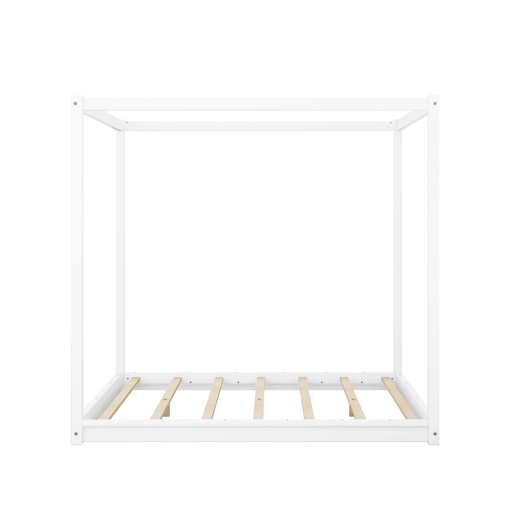 Queen Size Canopy Bed Frame,4-Post Canopy Platform Bed Frame with Headboard and Support Legs,Wood Full Bed Frame for Kids Teens Adults, No Box Spring Needed,Easy to Assemble,White