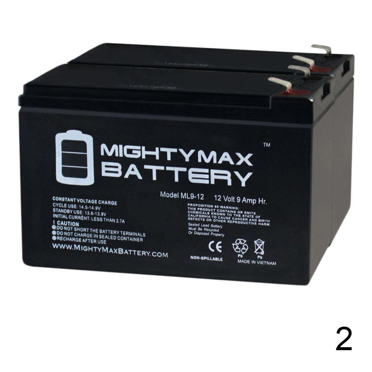 Mighty Max 2 Pack - 12V 9Ah Battery for HR1234W Home Alarm - Avayadevconnect