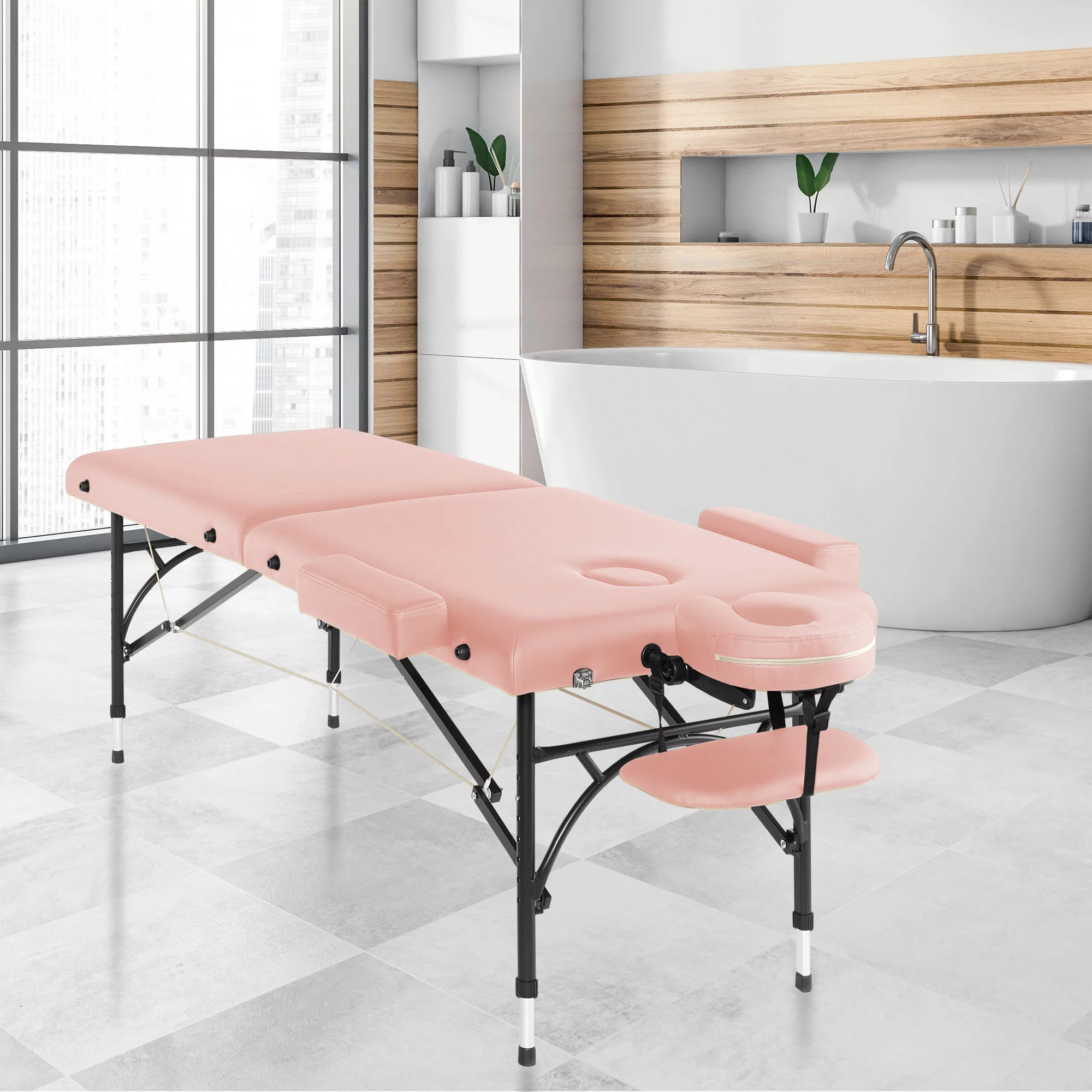 Saloniture Professional Portable Lightweight Bi-Fold Massage Table with Aluminum Legs - Includes Headrest, Face Cradle, Armrests and Carrying Case - Pink - Curated Treasures Market