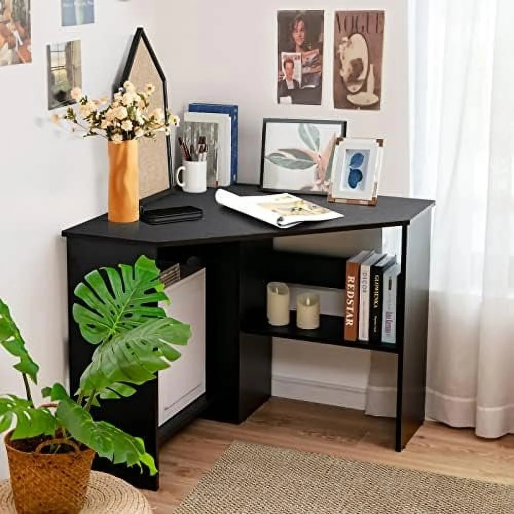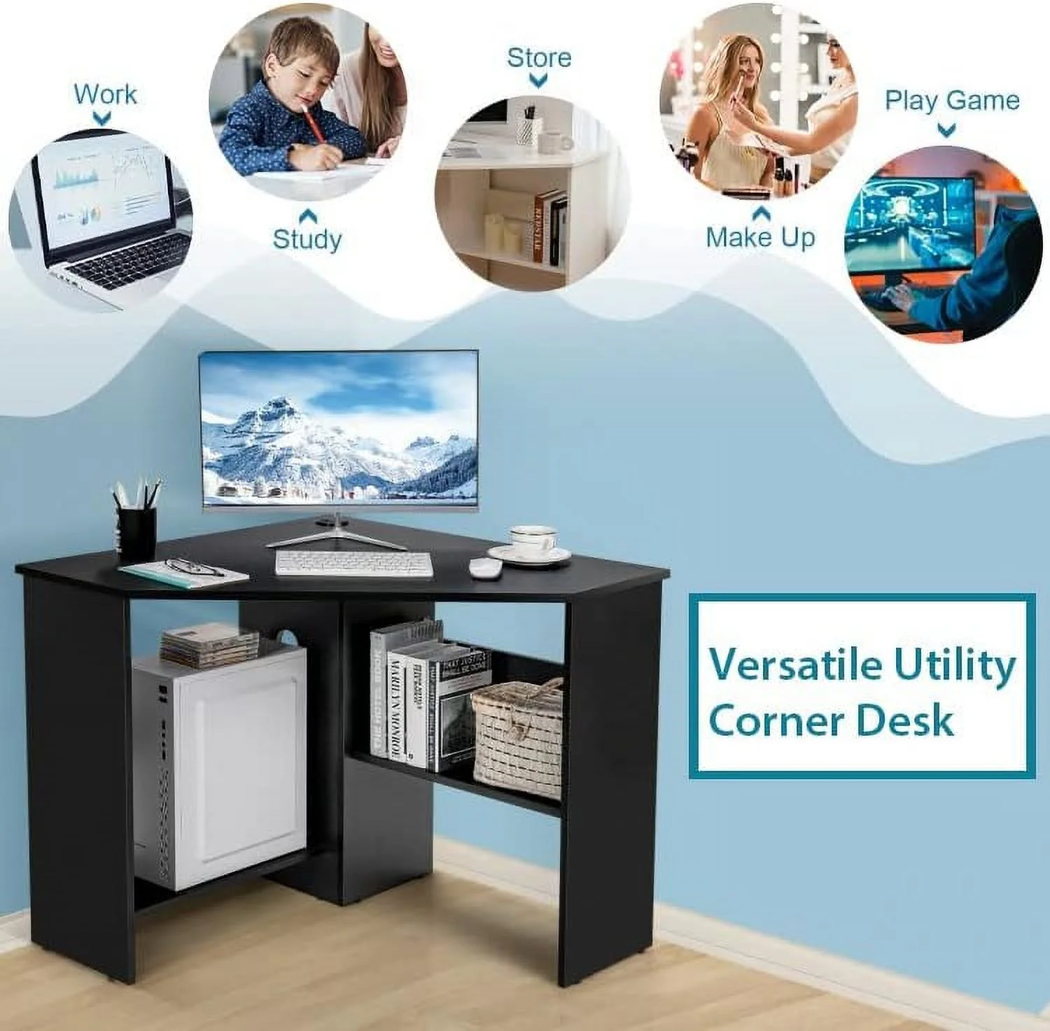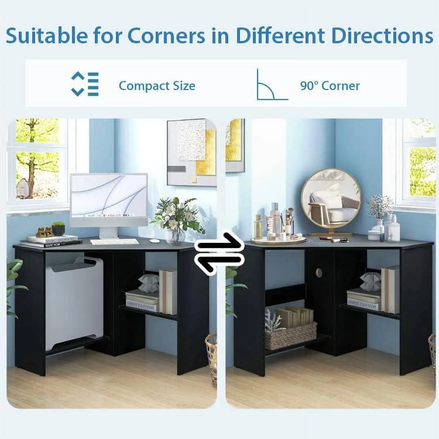 JDZHAPPYLIFE Corner Desk Corner Computer Desk for Small Space Bedroom Corner Desk with Shelves & CPU Stand Small Desks for Small Spaces Small Corner Writing Desk (Rustic Brown) - Curated Treasures Market