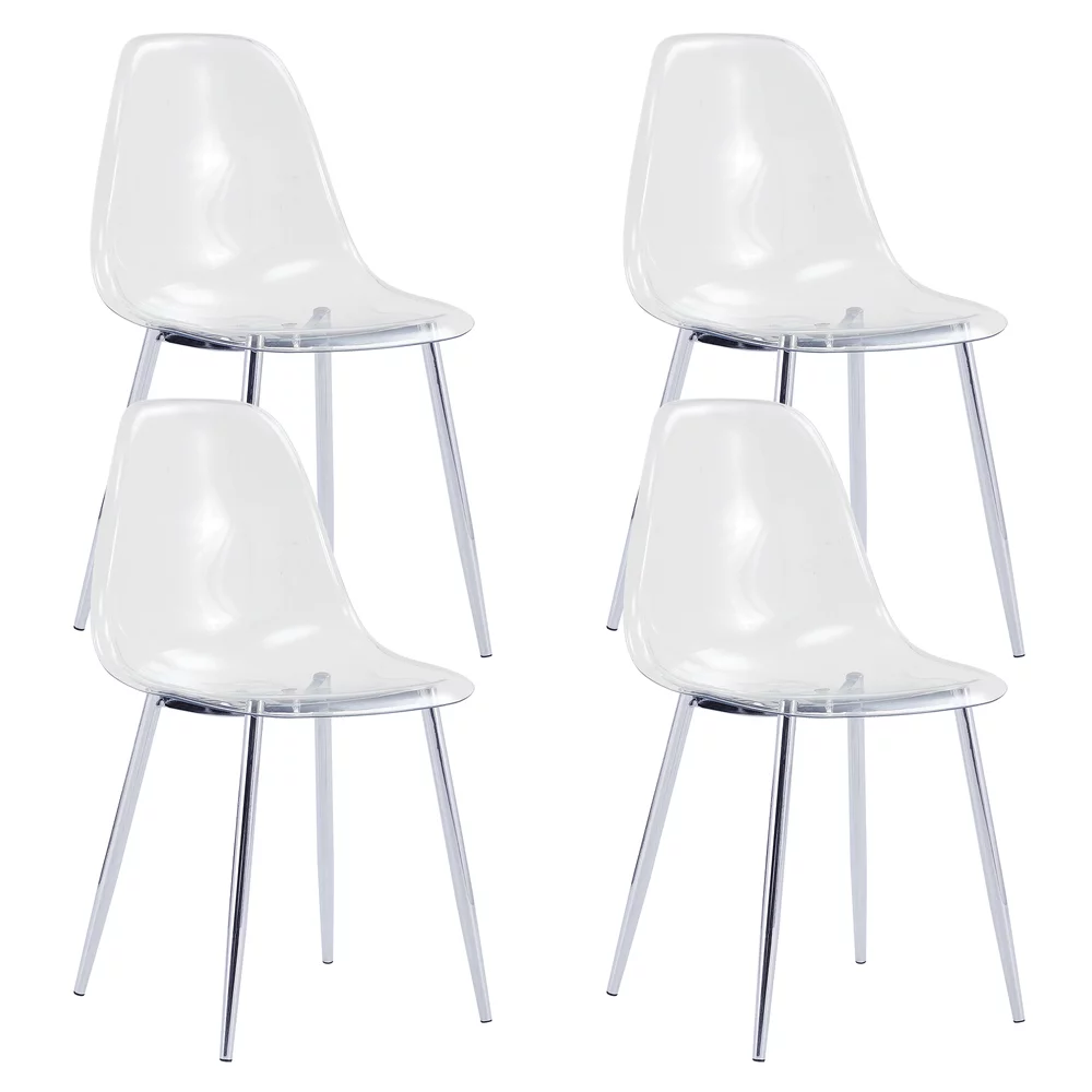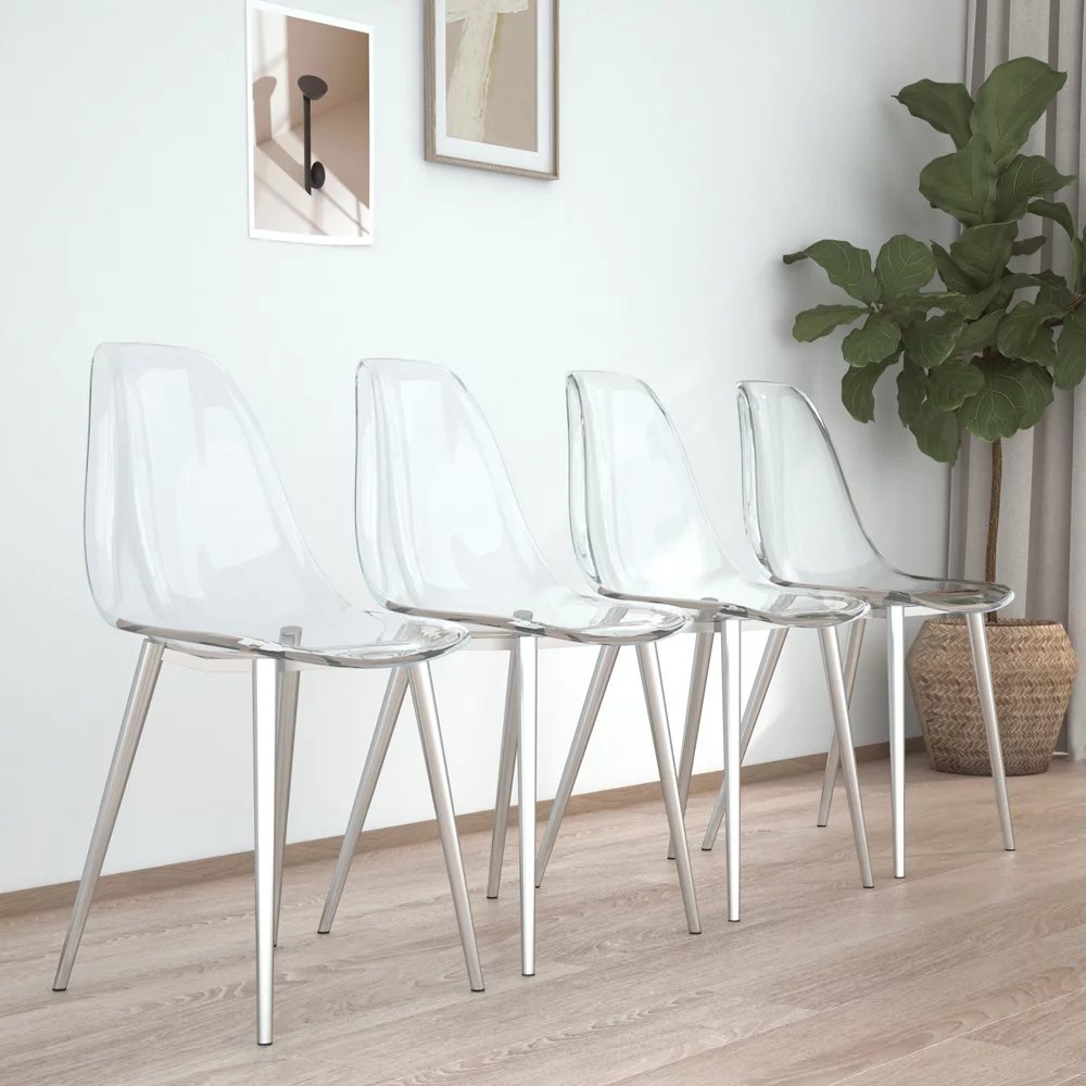 Clear Dining Chairs with Crystal Transparent Seat,Modern Mid Century Dining Chairs Set of 4, Plastic Shell Accent Side Chairs for Kitchen - Curated Treasures Market